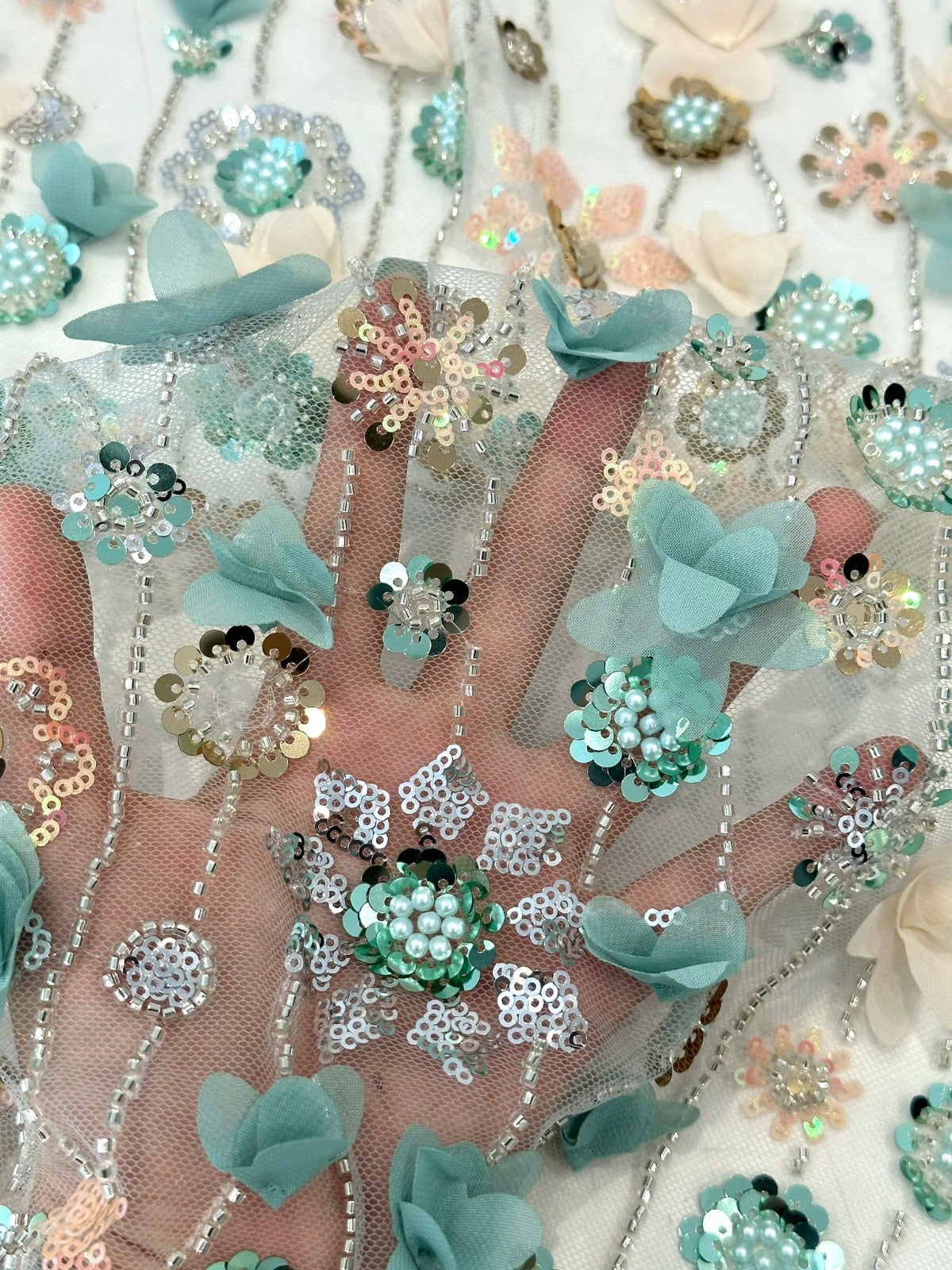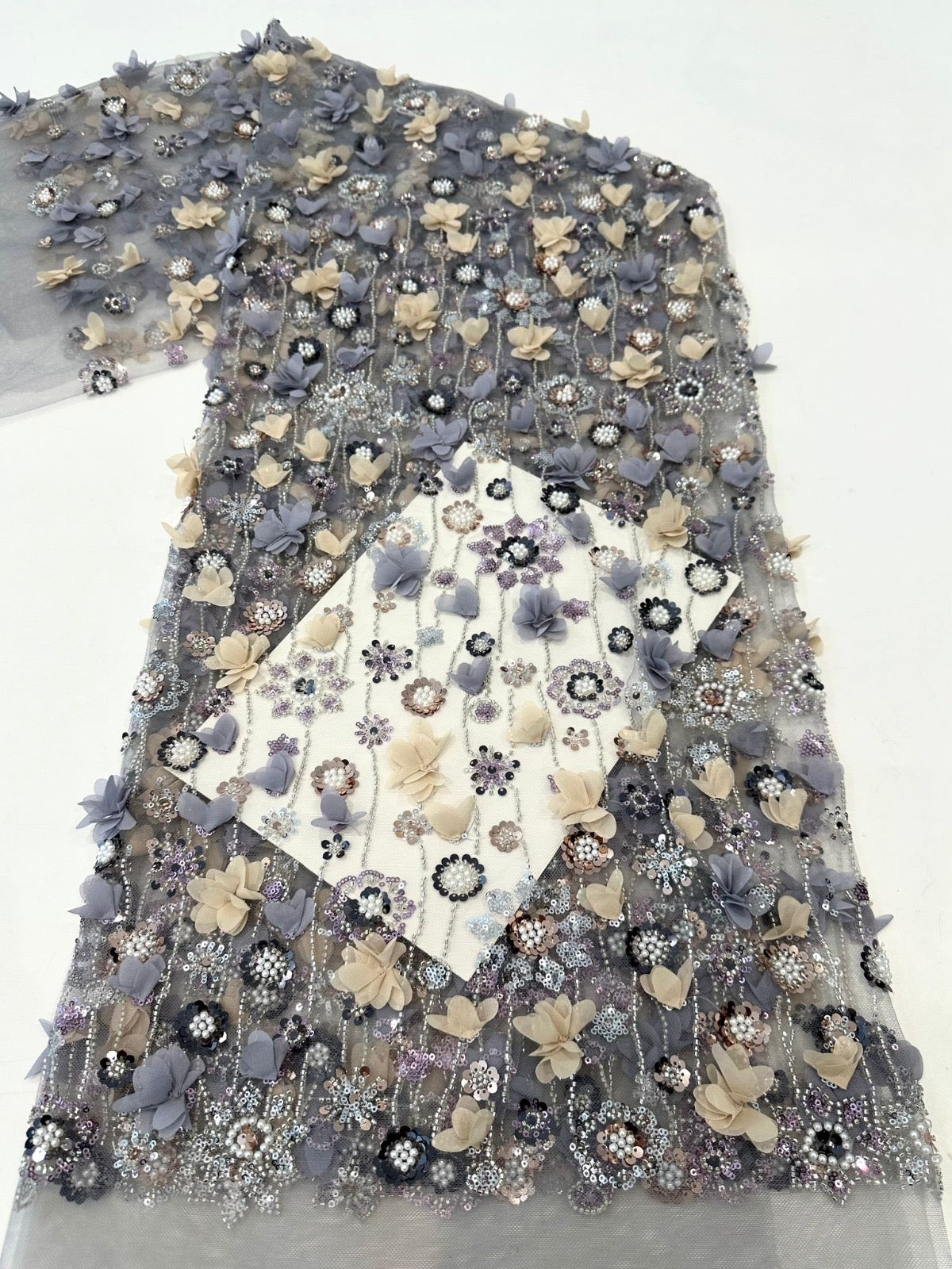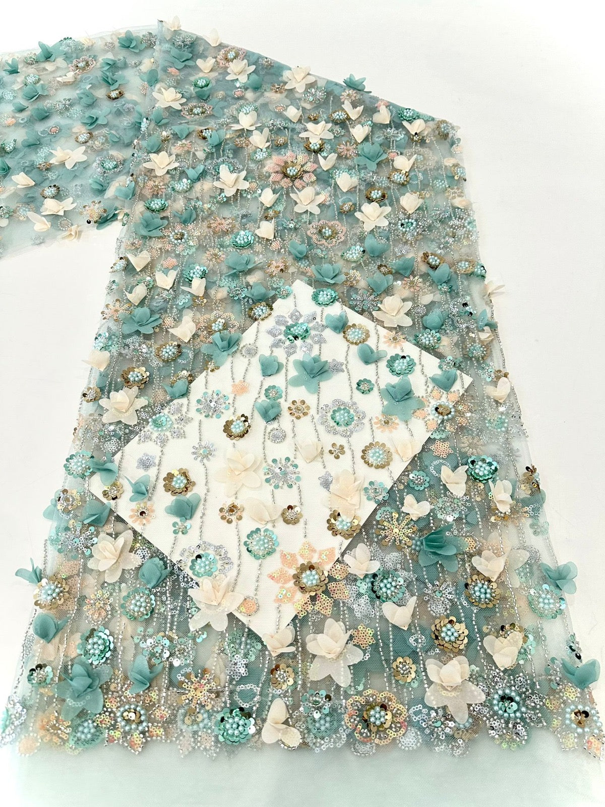 This high quality Fabric is measured in 5 Yards With Embroidered Beading and Sequin. It is soft, very delicate and beautiful.