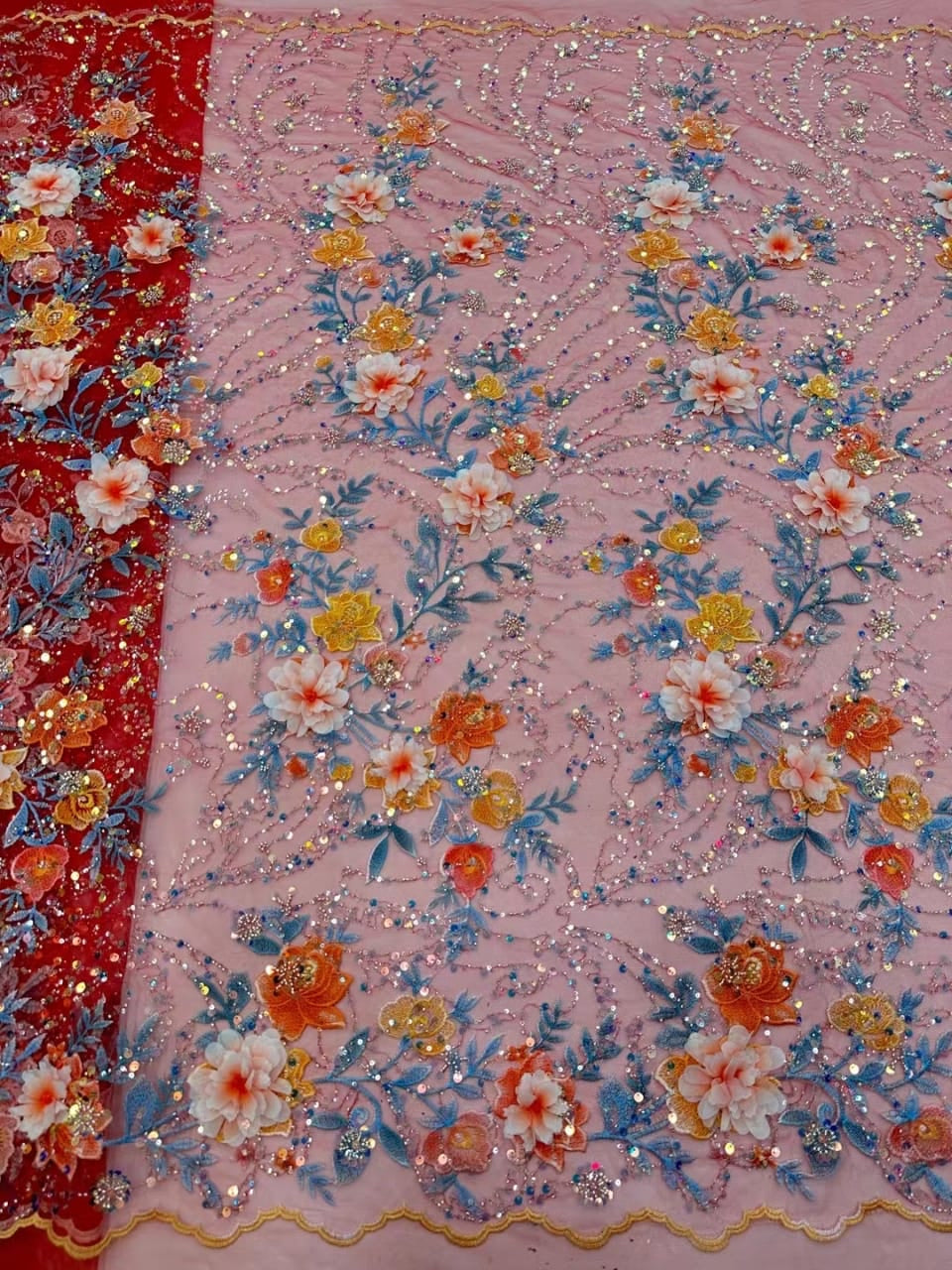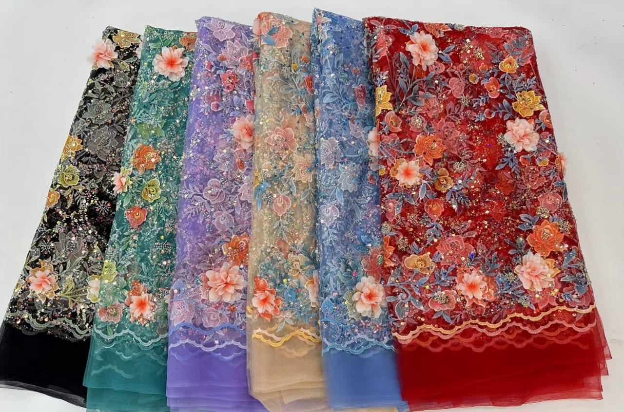 Esta tela de alta calidad se mide en 5 yardas con cuentas bordadas y lentejuelas. Es suave, muy delicado y bonito.
