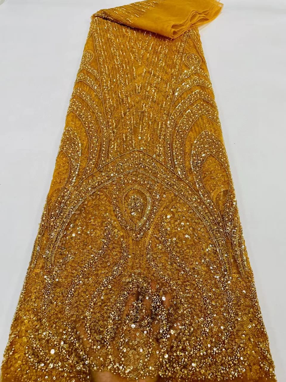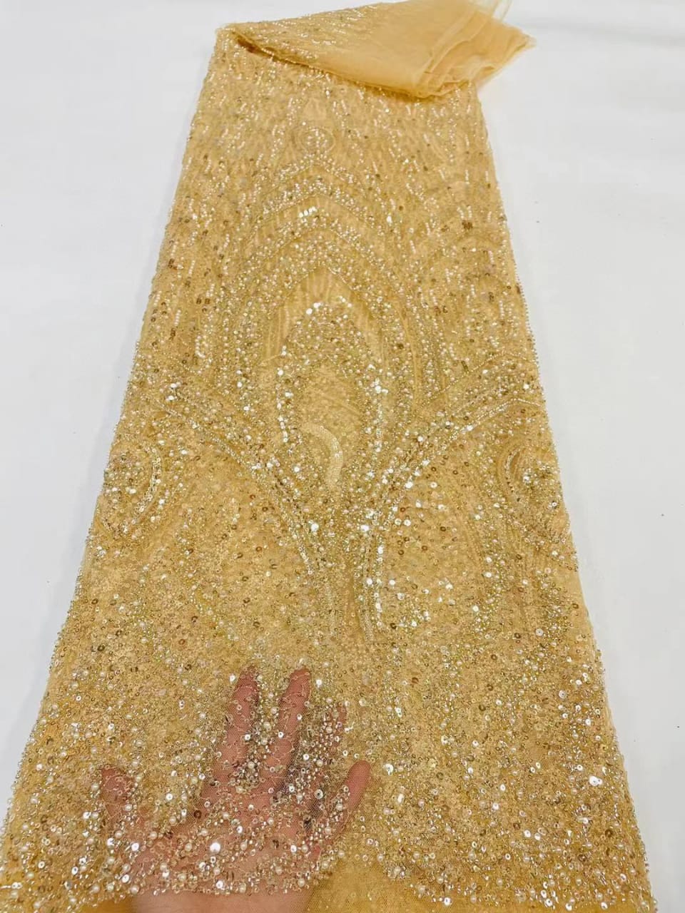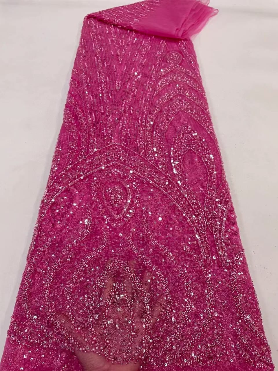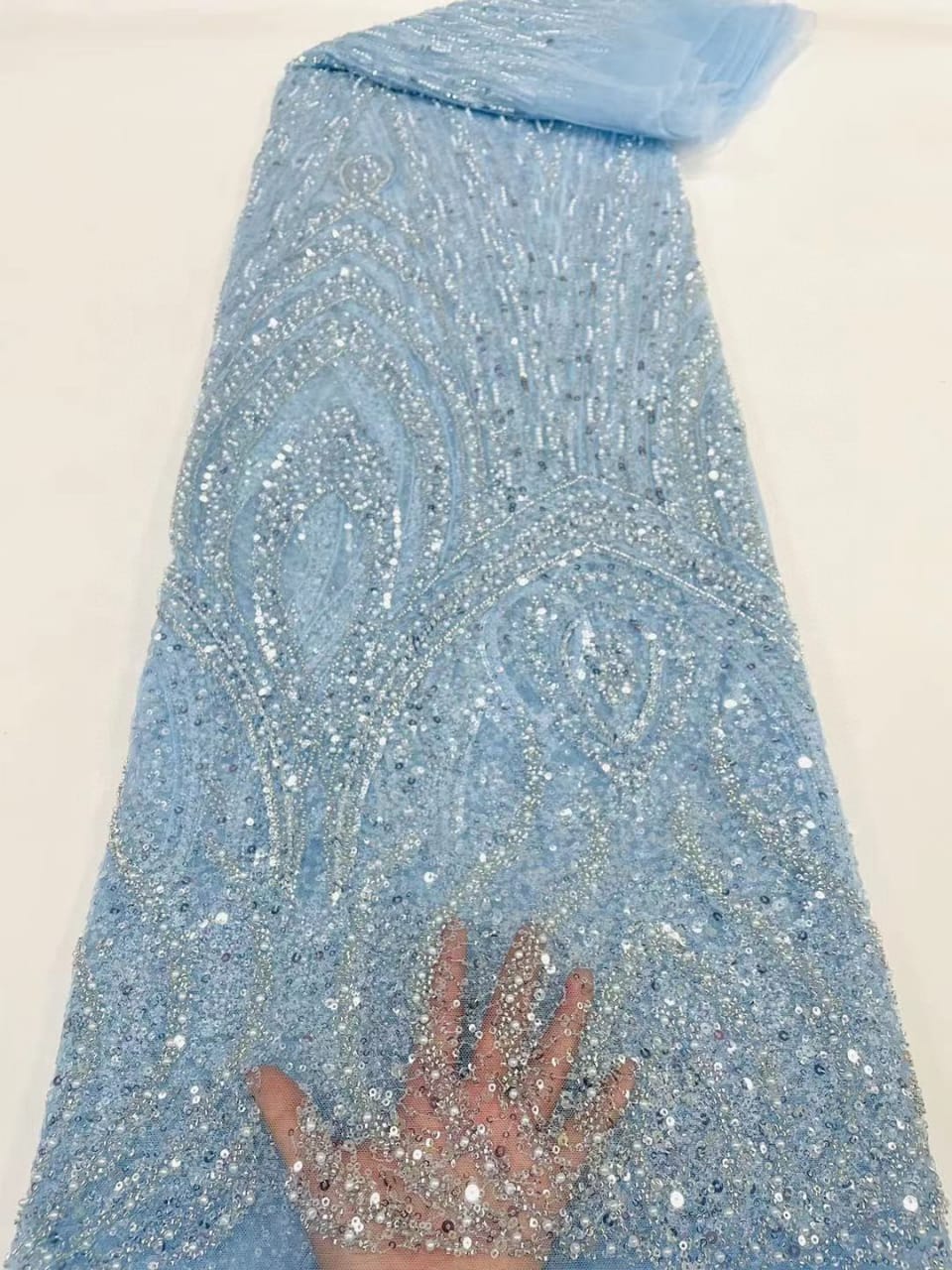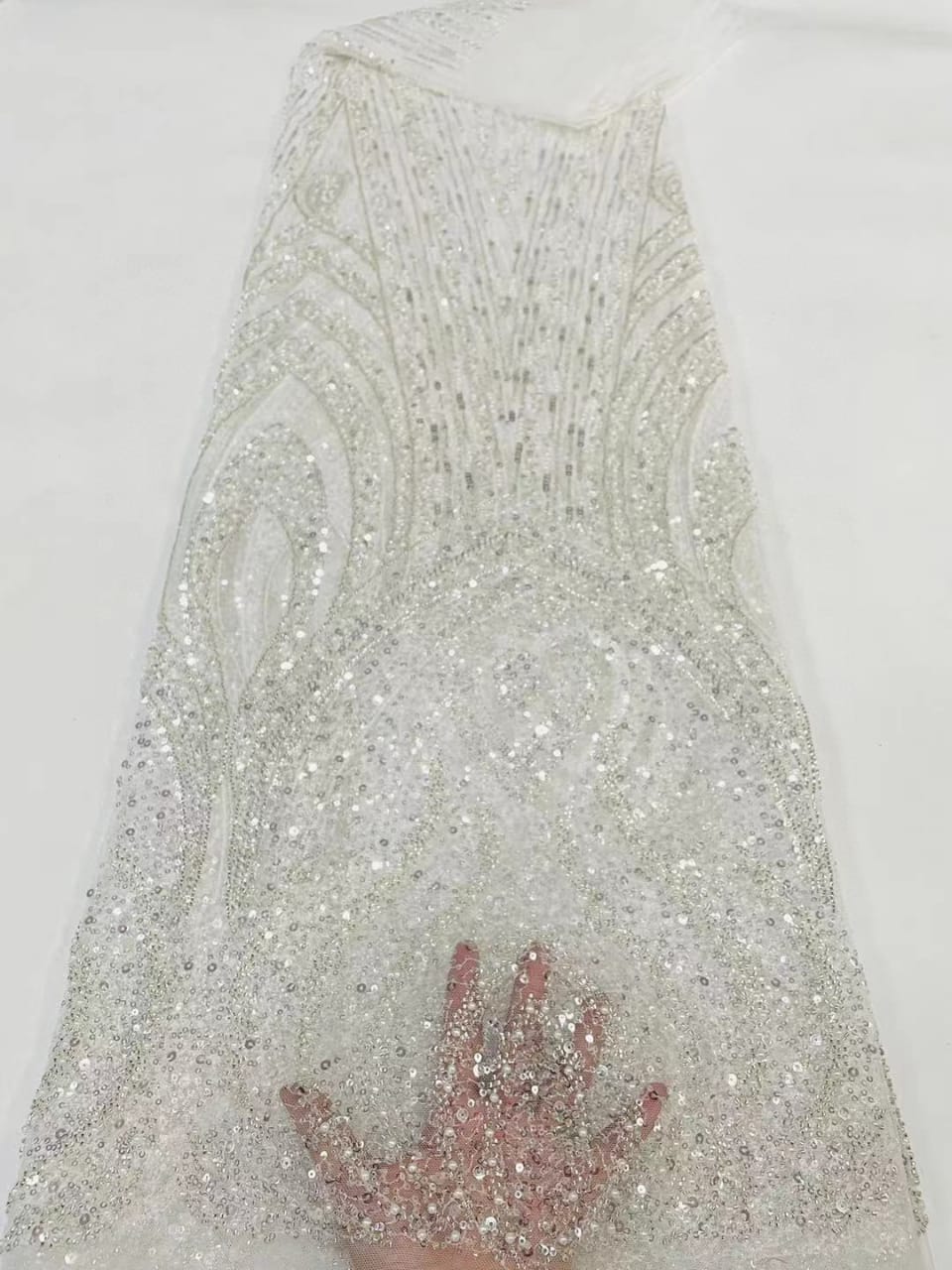 Esta tela de alta calidad se mide en 5 yardas con cuentas bordadas y lentejuelas. Es suave, muy delicado y bonito.