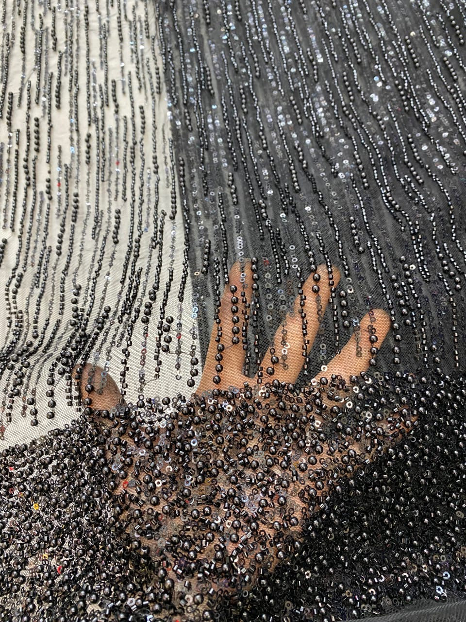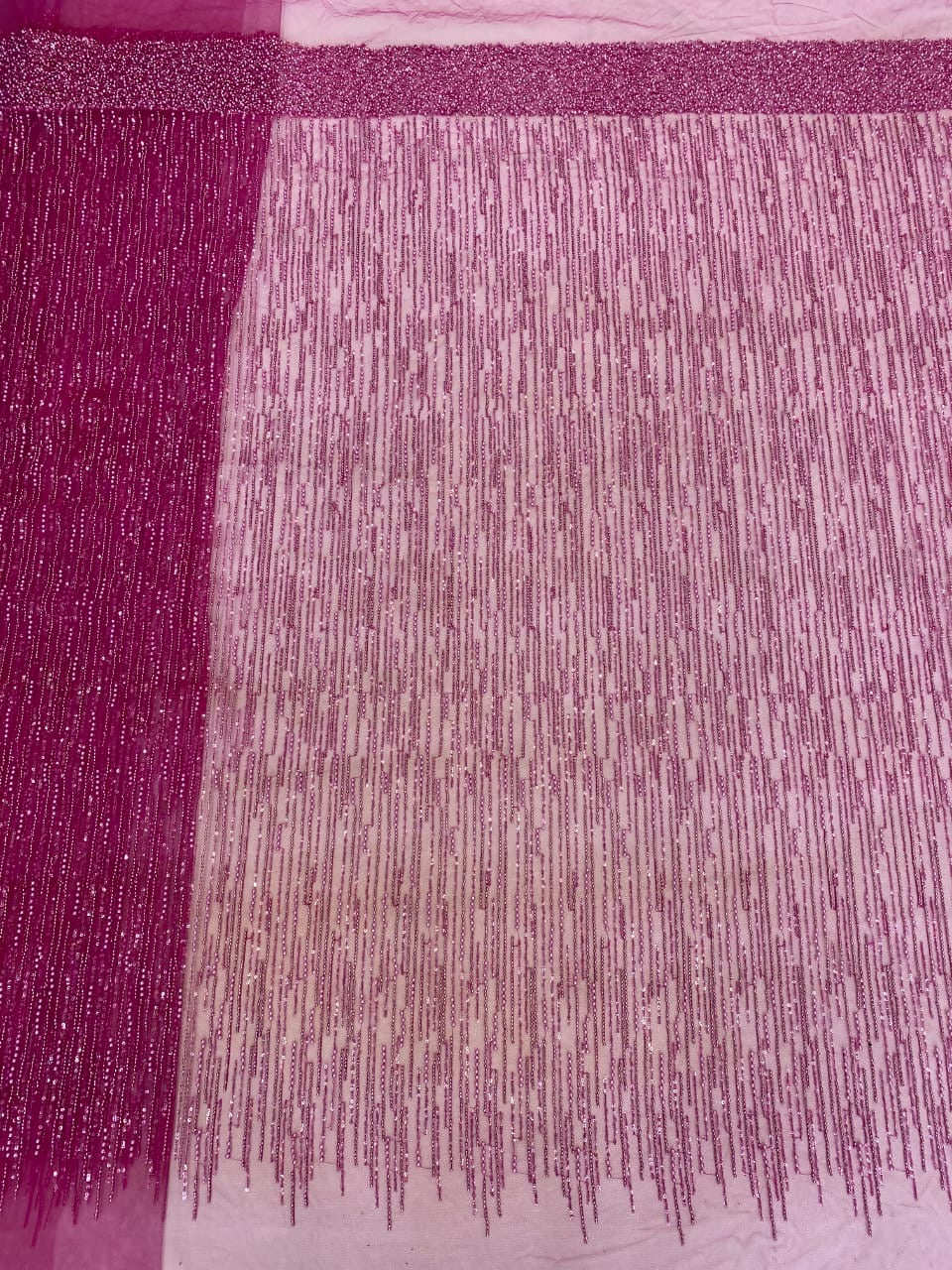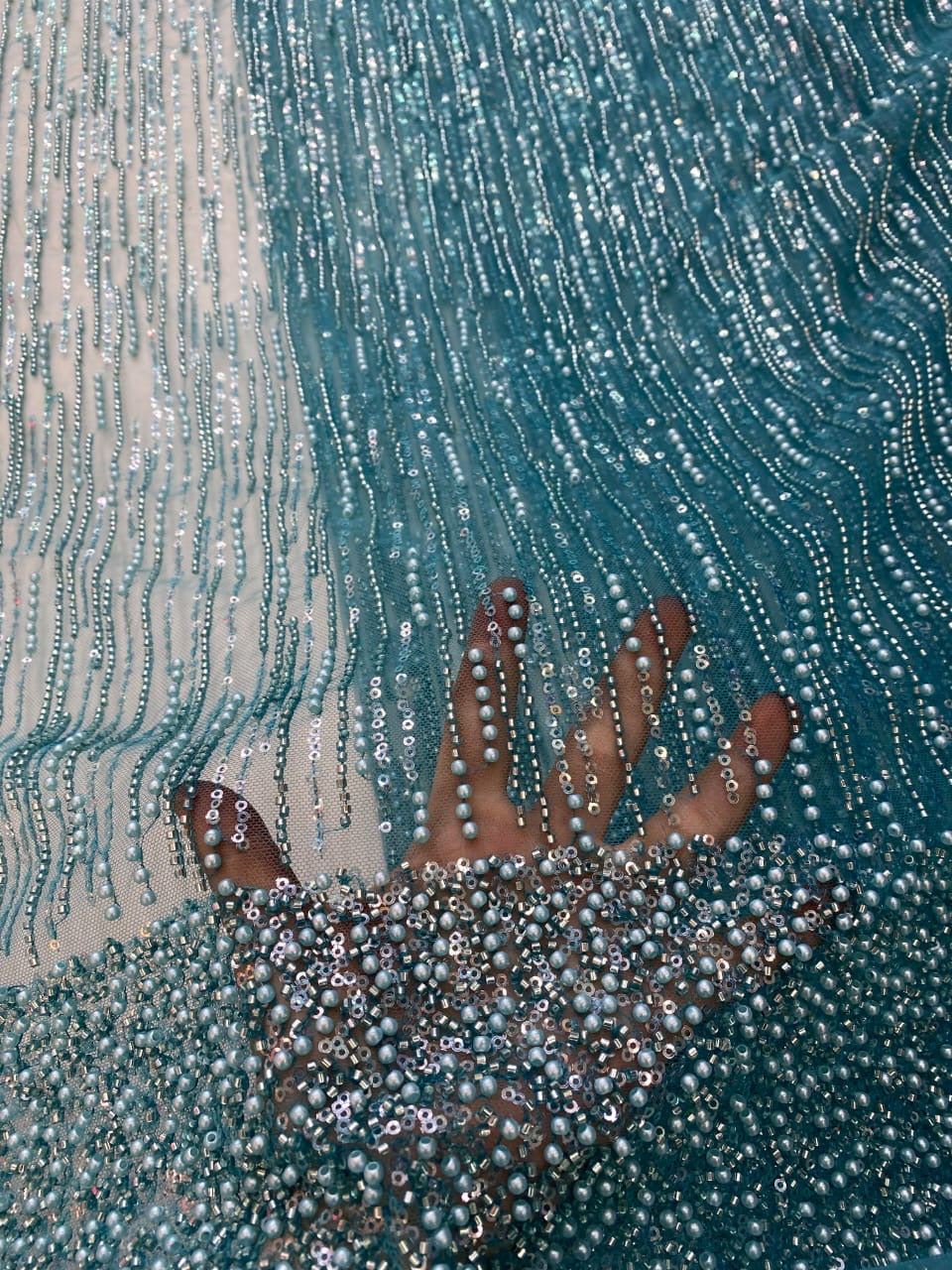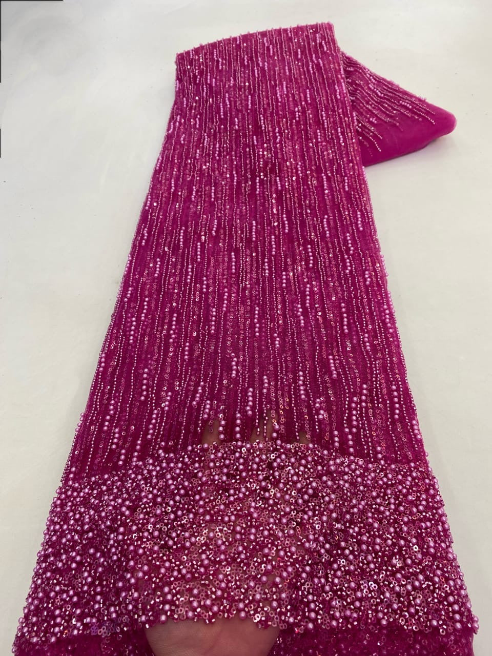Esta tela de alta calidad se mide en 5 yardas con cuentas bordadas y lentejuelas. Es suave, muy delicado y bonito.