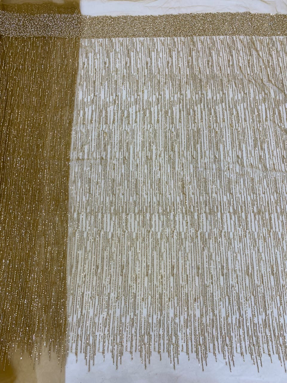 Esta tela de alta calidad está hecha con pedrería bordada a la moda y se puede usar para hacer vestidos de novia, faldas, chales, bufandas y otras prendas de moda que desee.