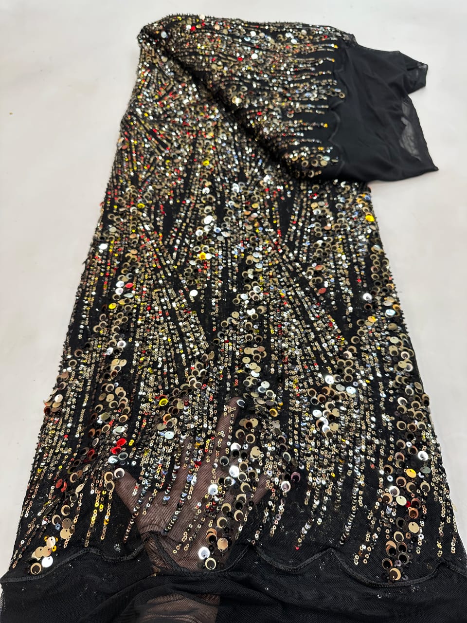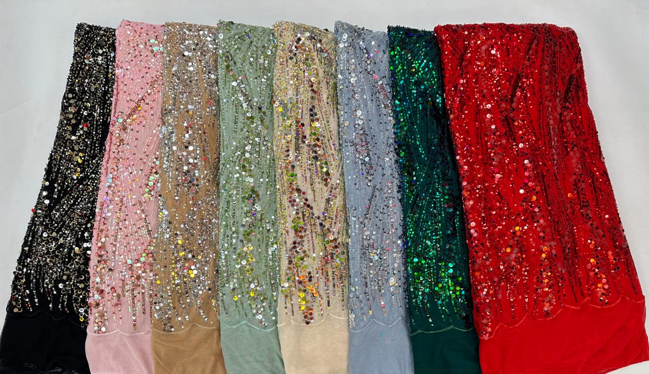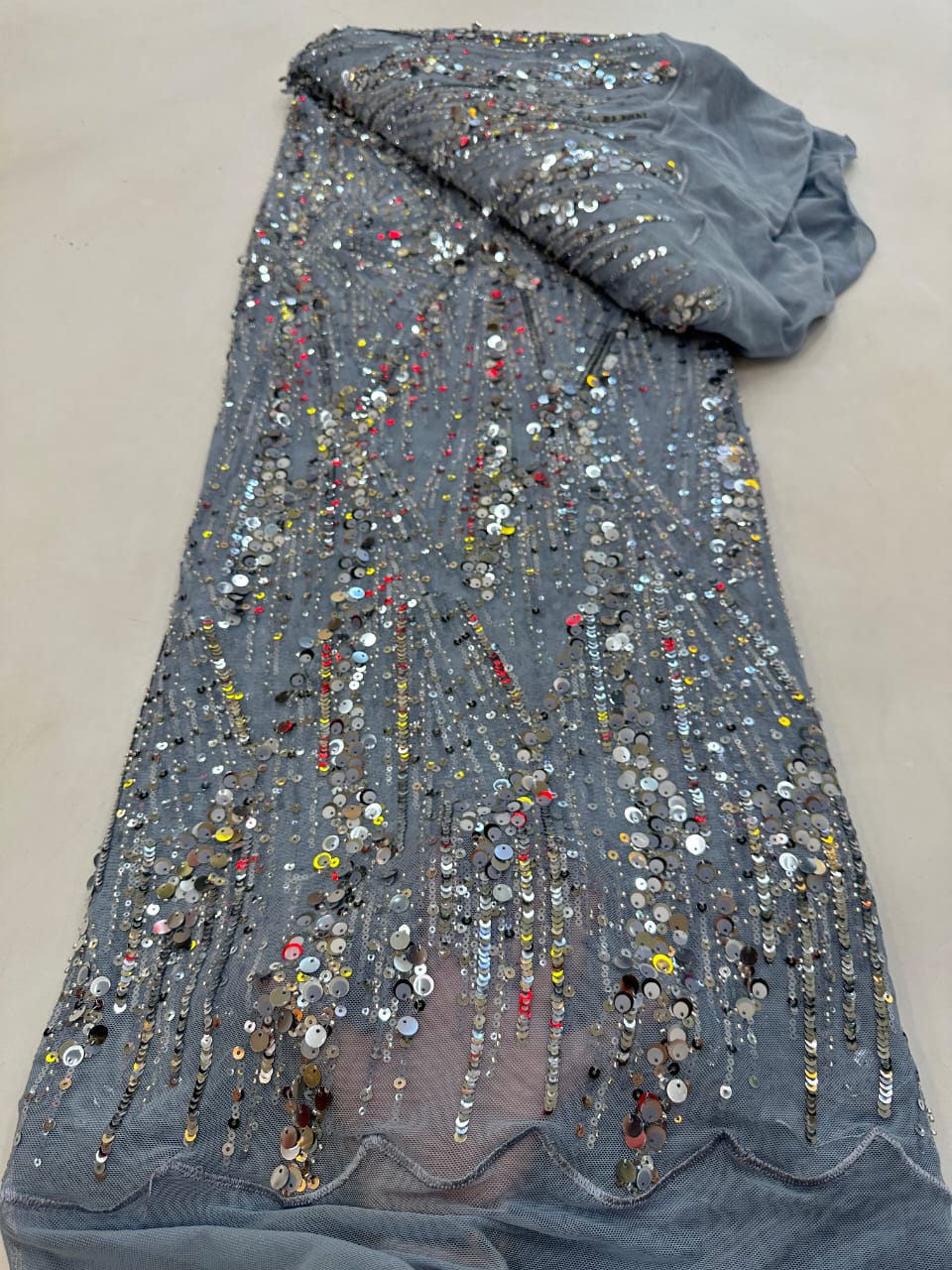 Esta tela de alta calidad se mide en 5 yardas con cuentas bordadas y lentejuelas. Es suave, muy delicado y bonito.