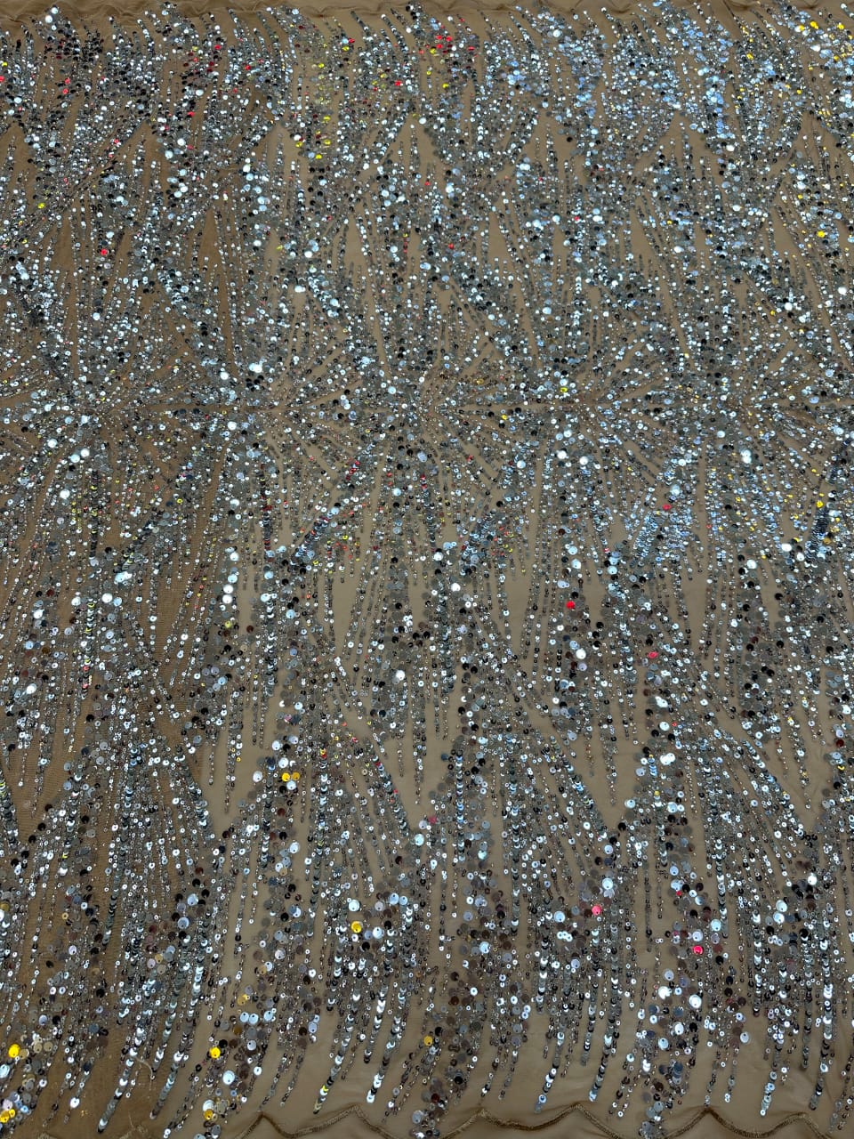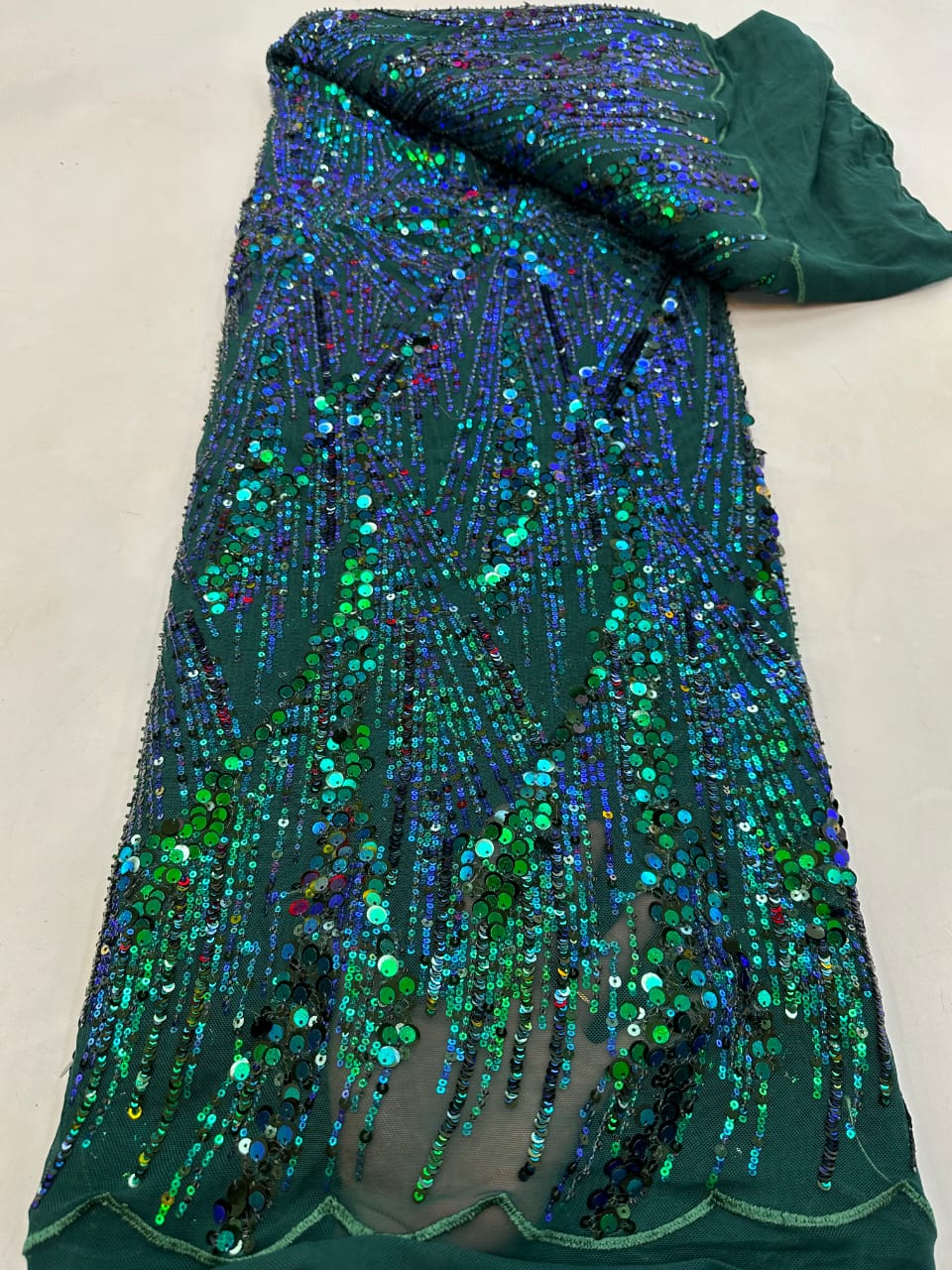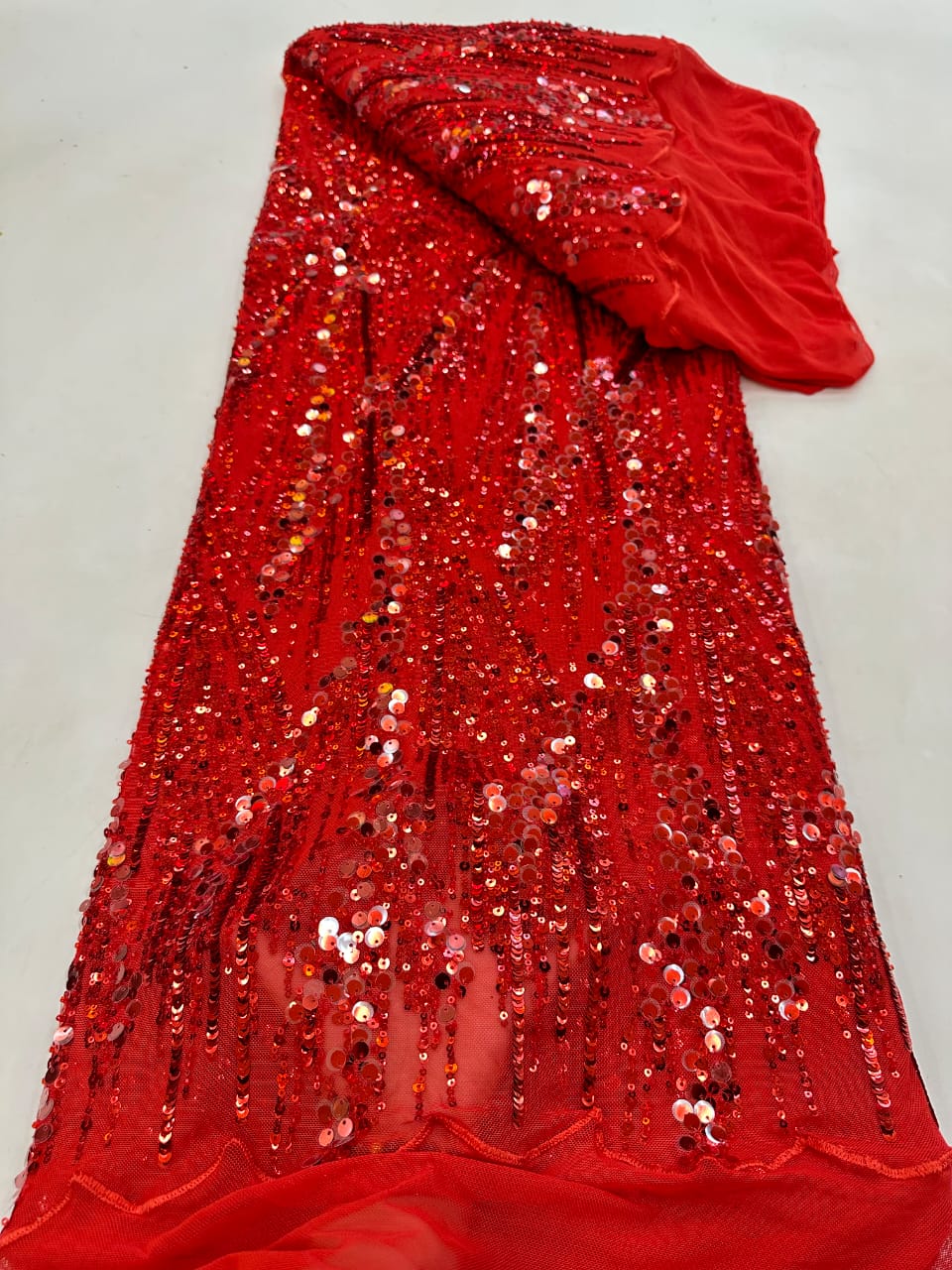 Esta tela de alta calidad se mide en 5 yardas con cuentas bordadas y lentejuelas. Es suave, muy delicado y bonito.