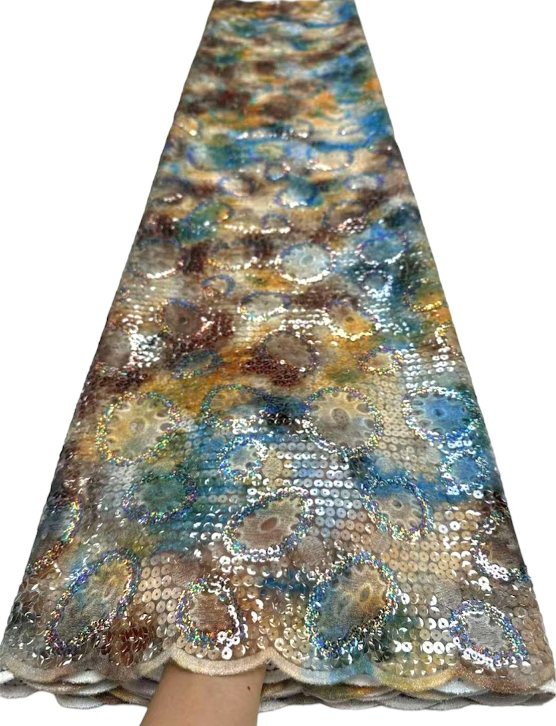 Esta tela de alta calidad se mide en 5 yardas con cuentas bordadas y lentejuelas. Es suave, muy delicado y bonito.