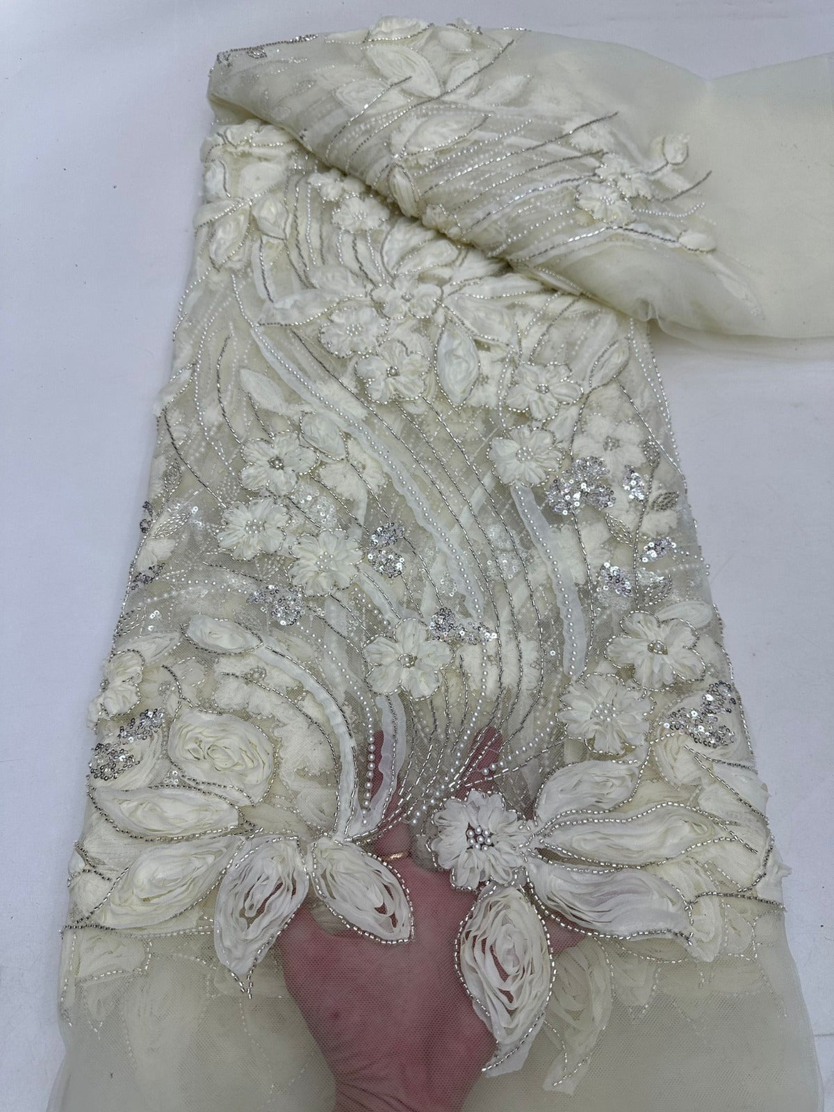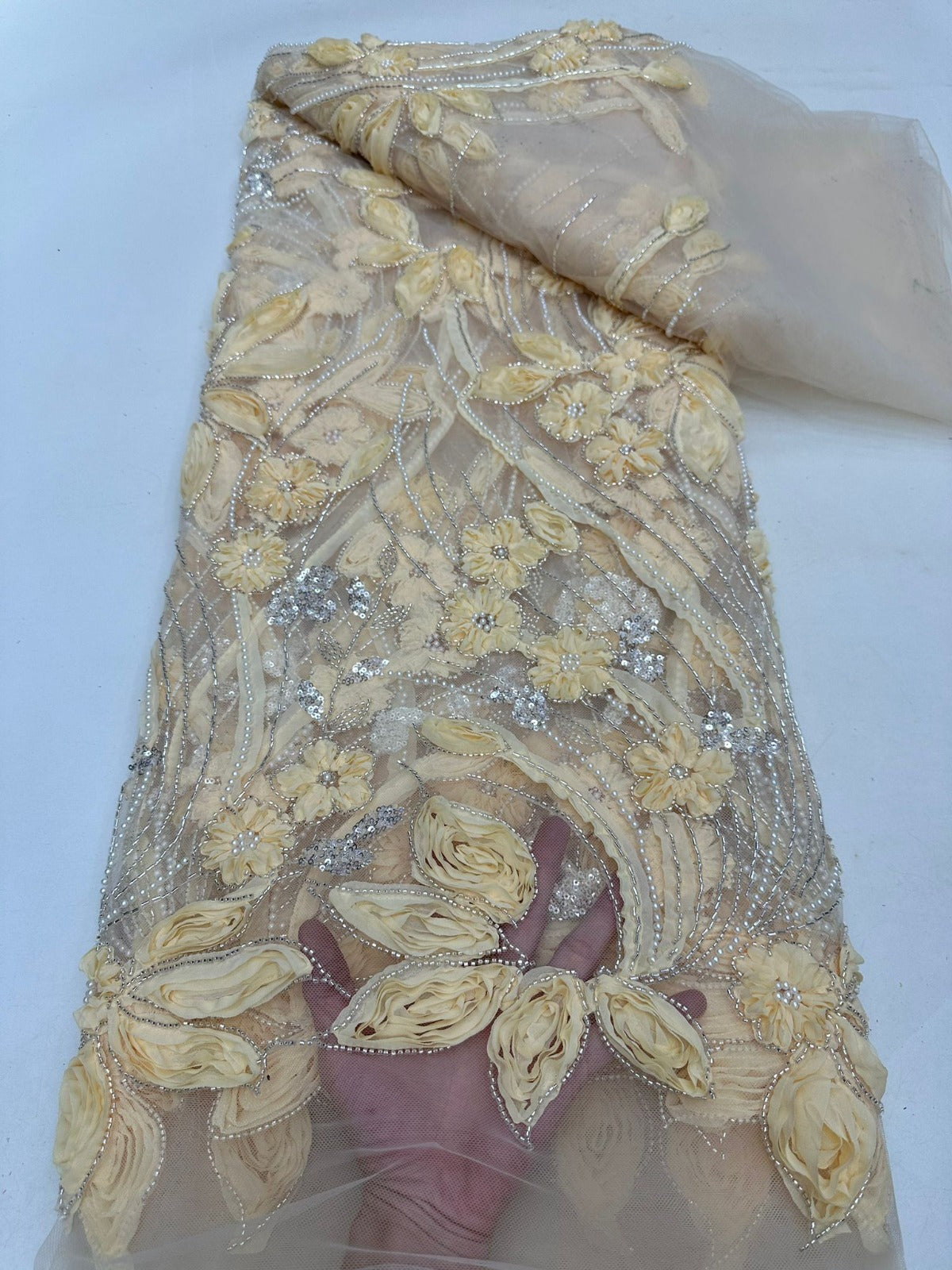 This high quality Fabric is measured in 5 Yards With Embroidered Beading and Sequin. It is soft, very delicate and beautiful.