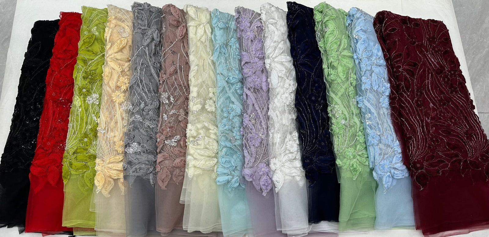 Material: 100% Polyester, Tulle Lace Fabric, Eco-Friendly embroidery.