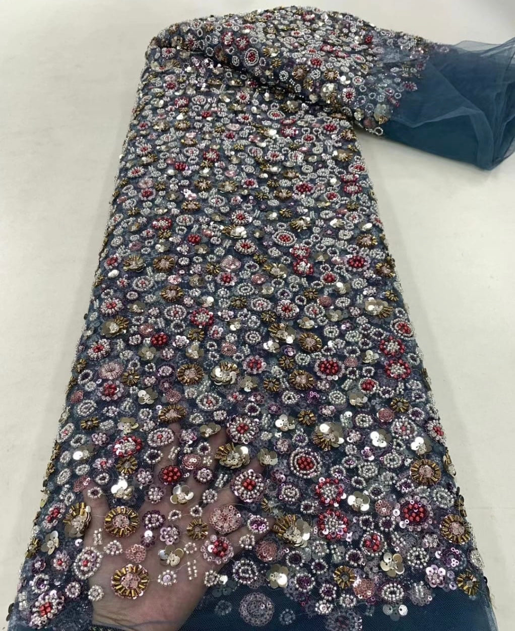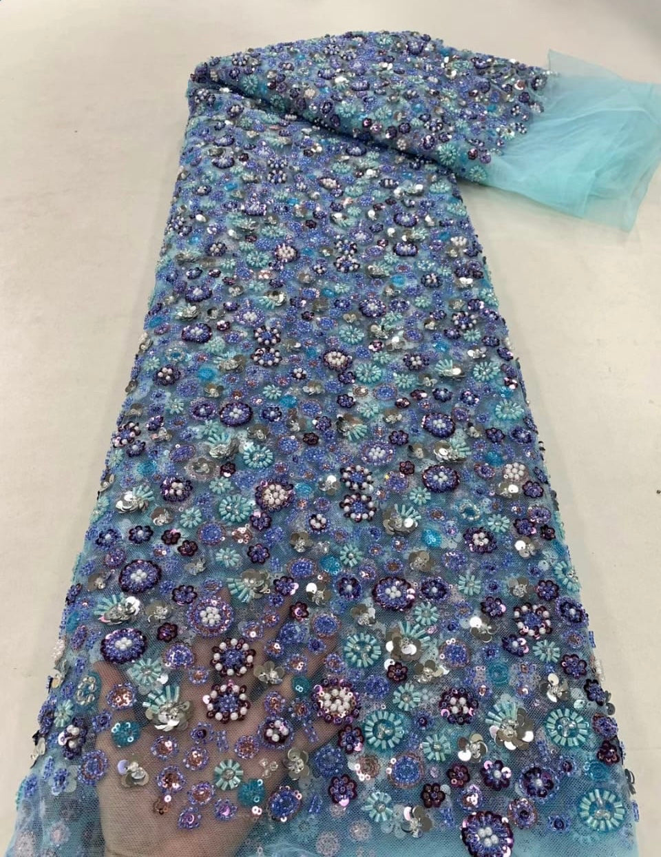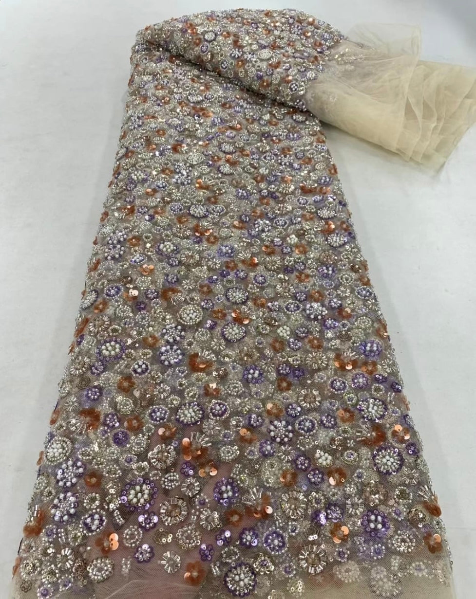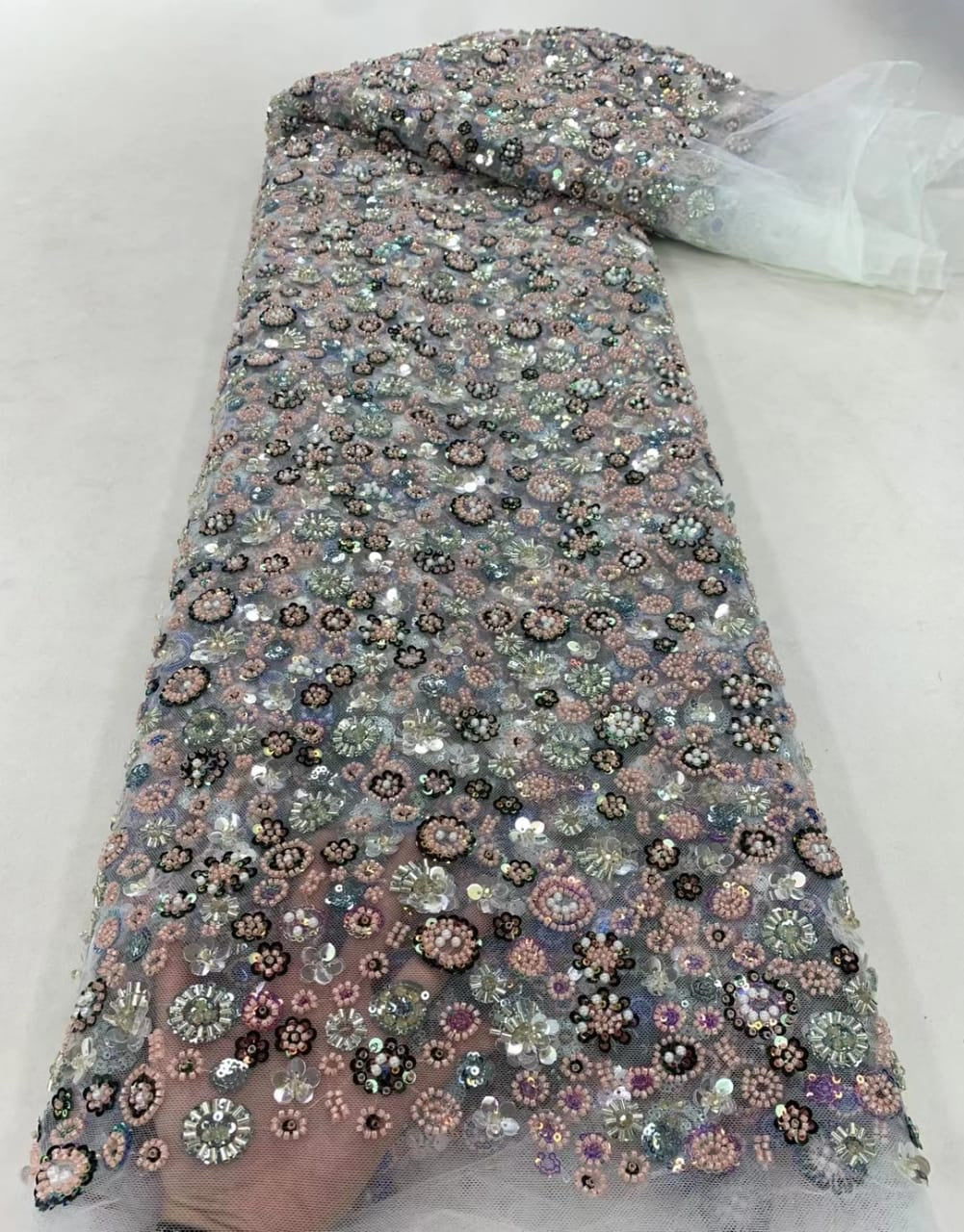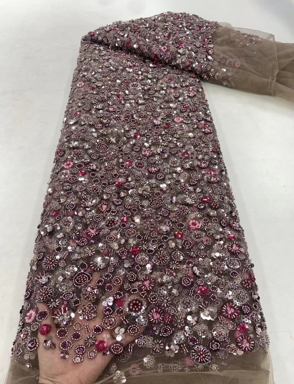 Esta tela de alta calidad se mide en 5 yardas con cuentas bordadas y lentejuelas. Es suave, muy delicado y bonito.
