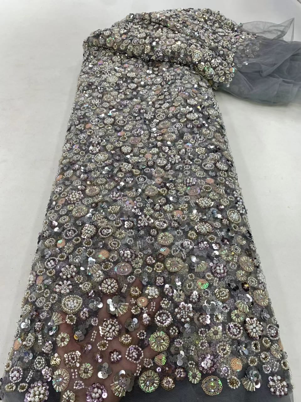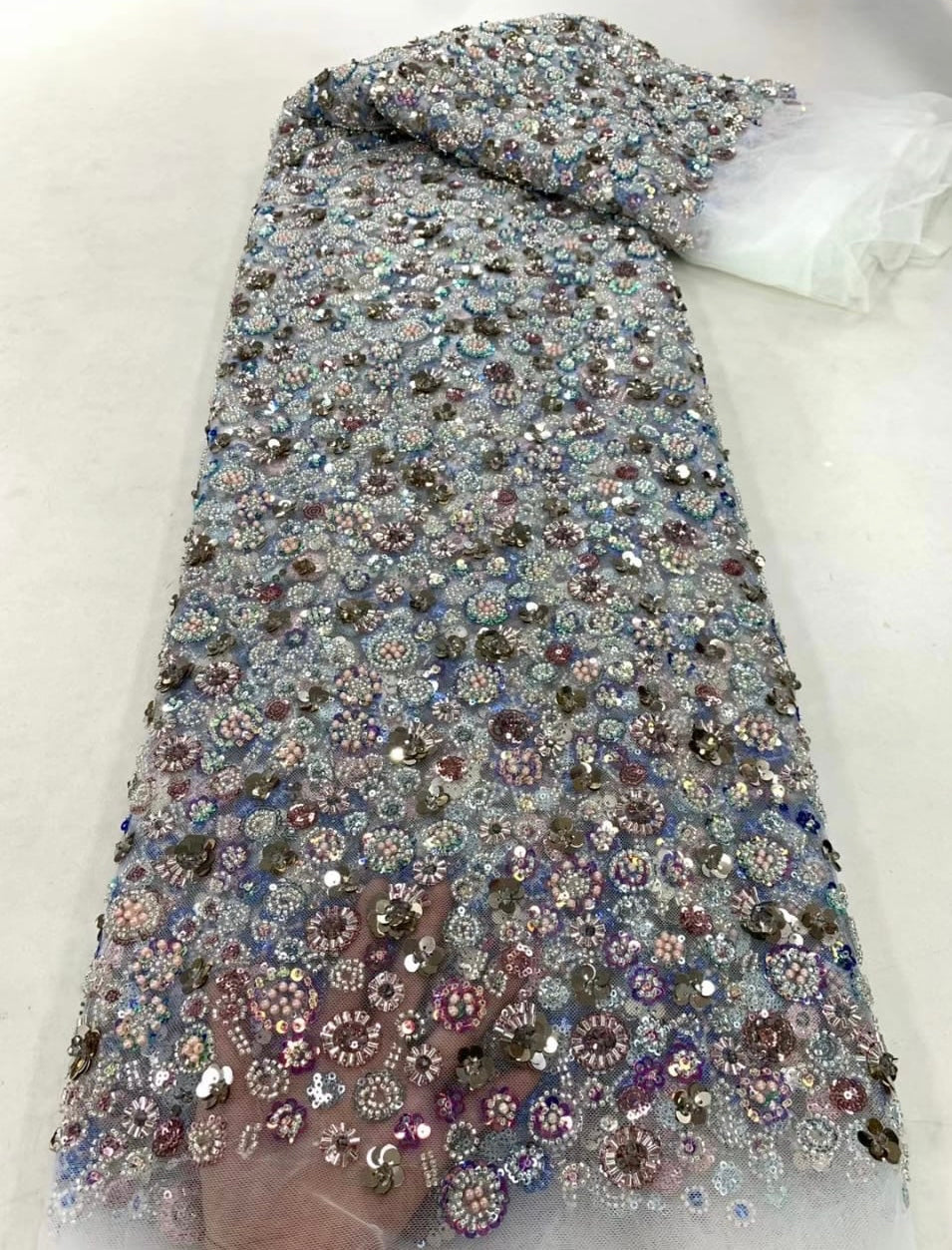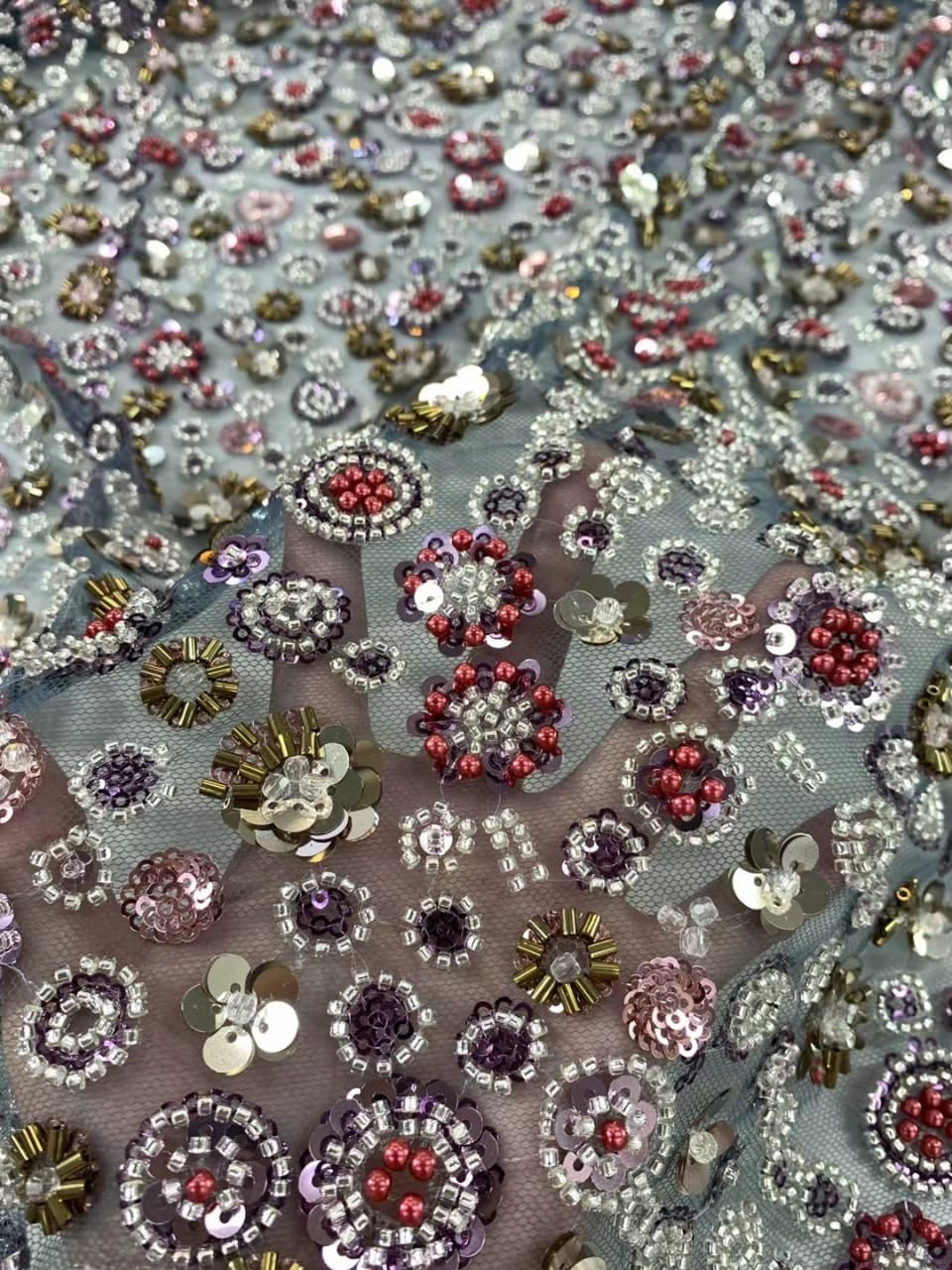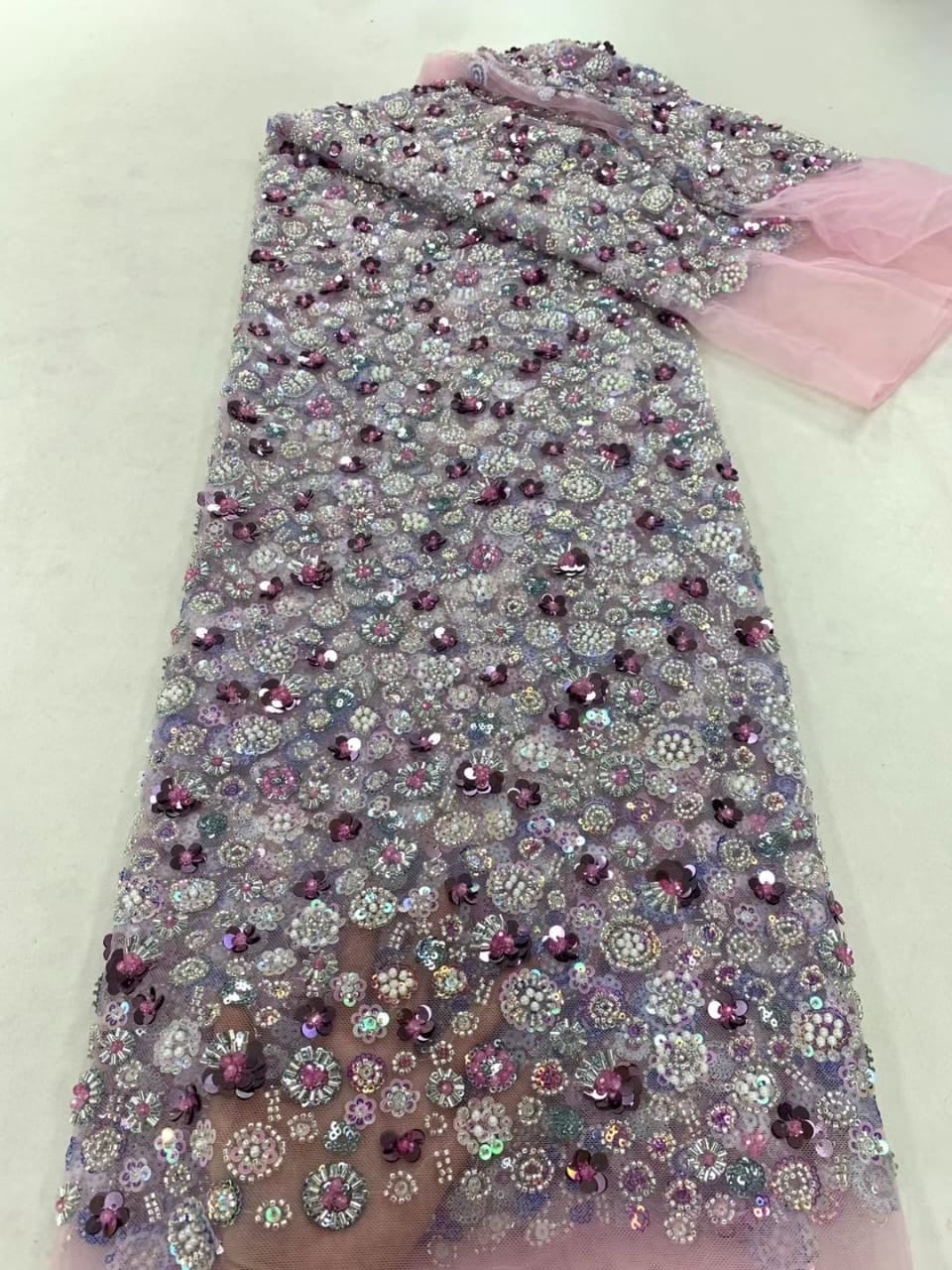 Esta tela de alta calidad se mide en 5 yardas con cuentas bordadas y lentejuelas. Es suave, muy delicado y bonito.