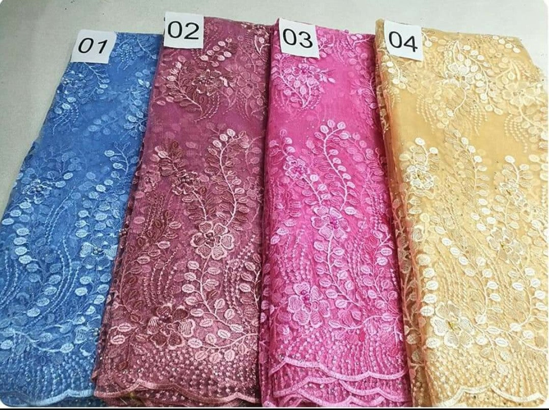 Esta tela de alta calidad está hecha con pedrería bordada a la moda y se puede usar para hacer vestidos de novia, faldas, chales, bufandas y otras prendas de moda que desee.
