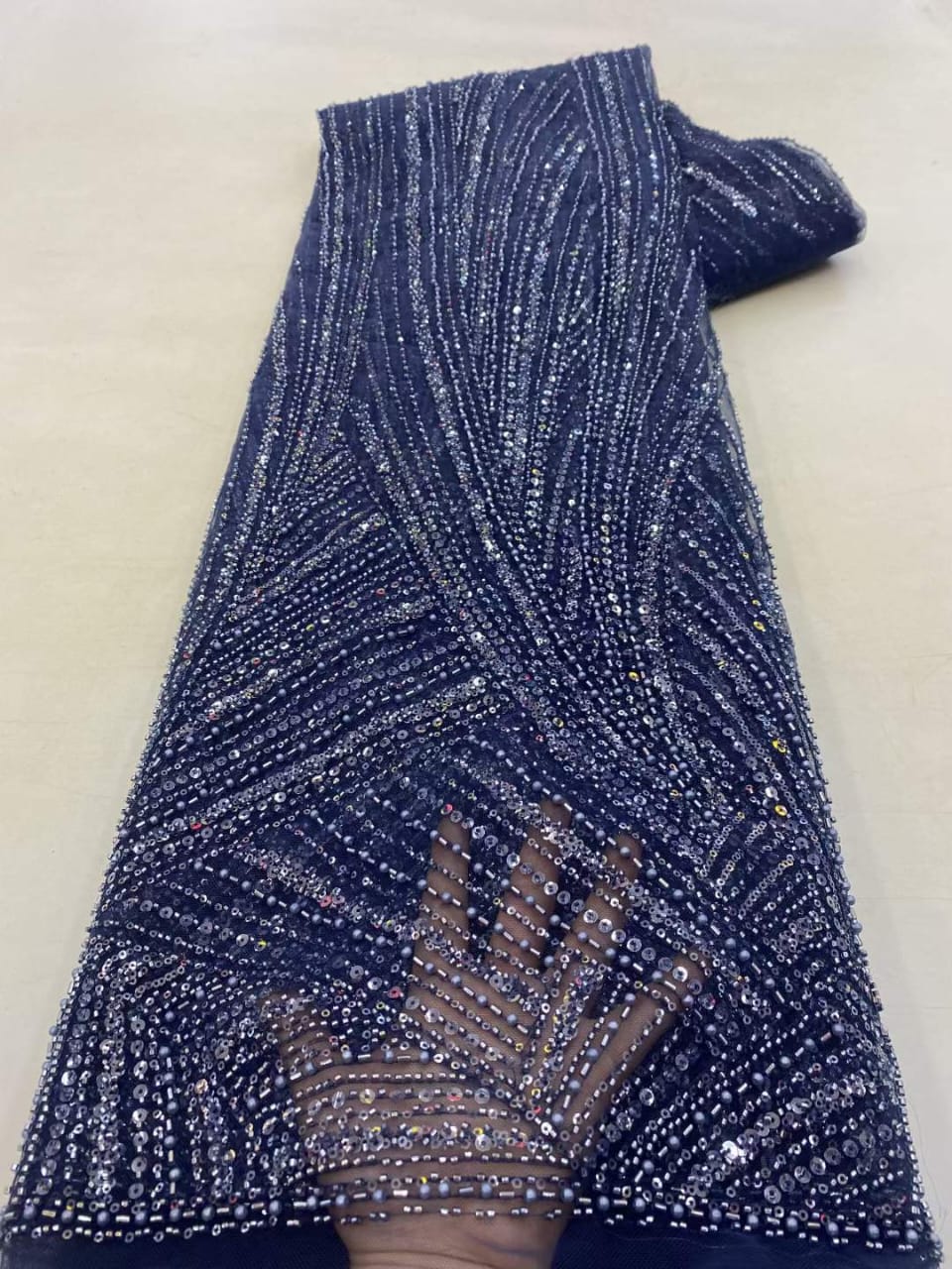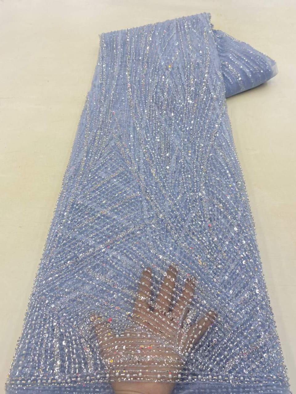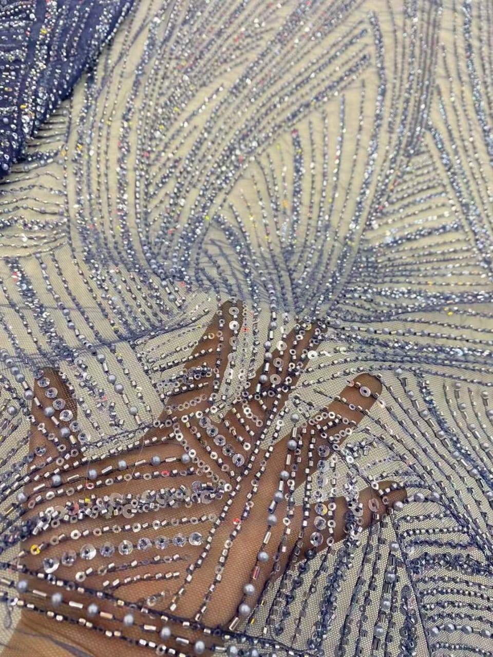 Esta tela de alta calidad se mide en 5 yardas con cuentas bordadas y lentejuelas. Es suave, muy delicado y bonito.