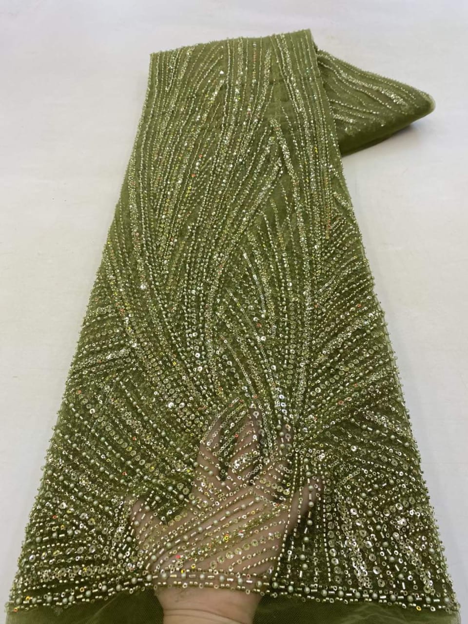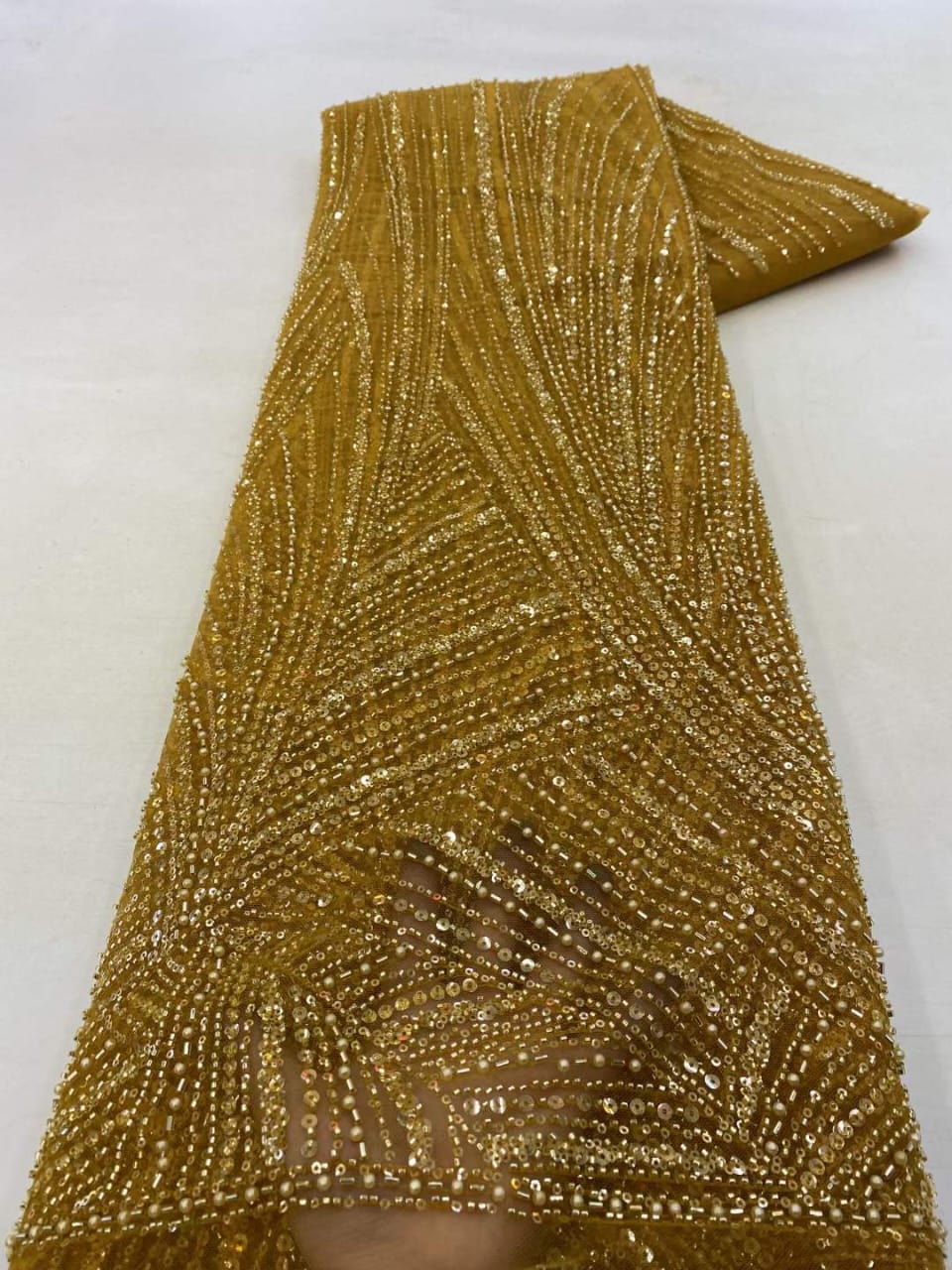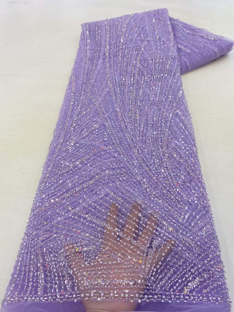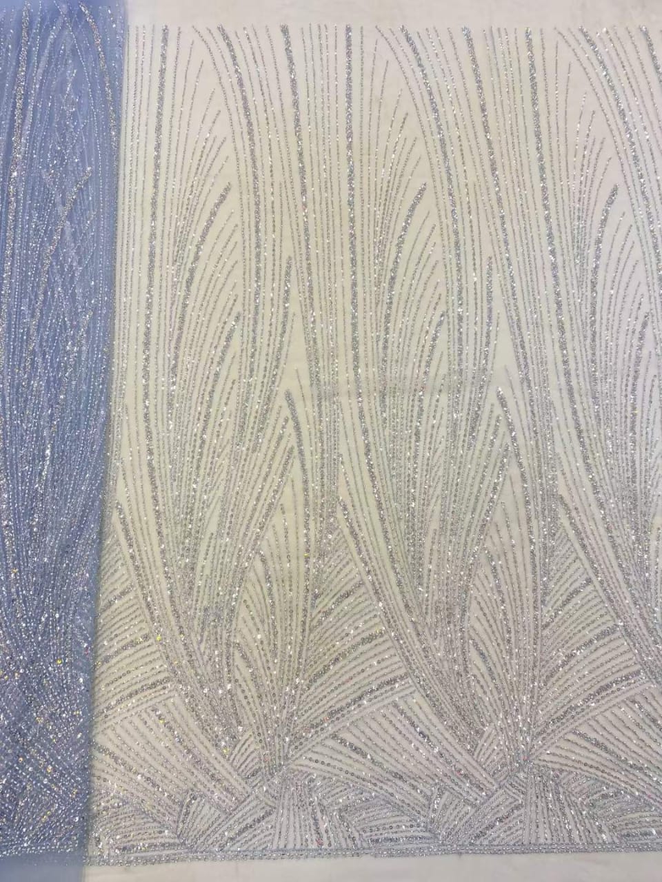 Esta tela de alta calidad se mide en 5 yardas con cuentas bordadas y lentejuelas. Es suave, muy delicado y bonito.