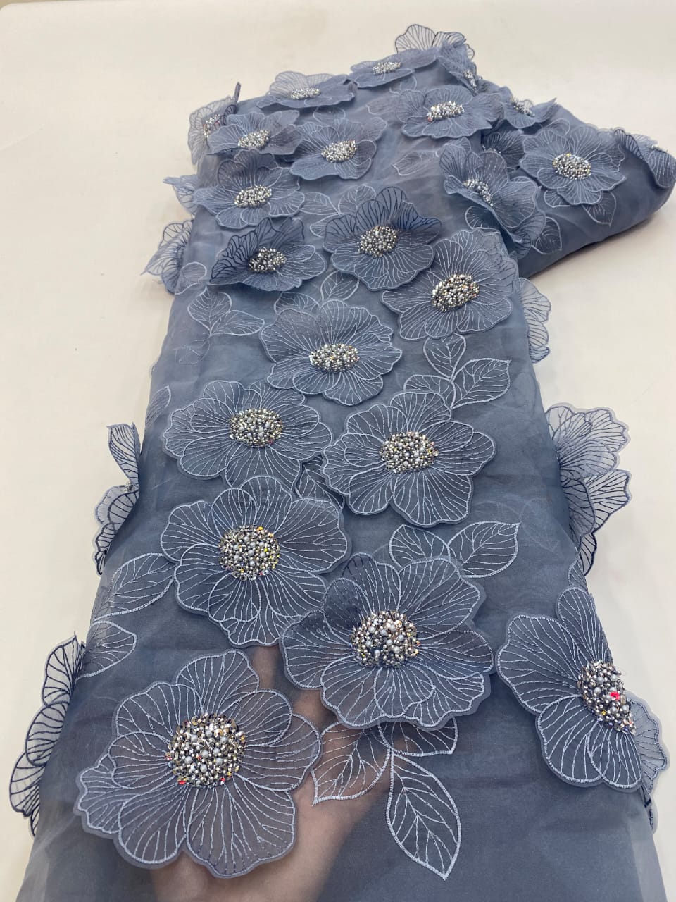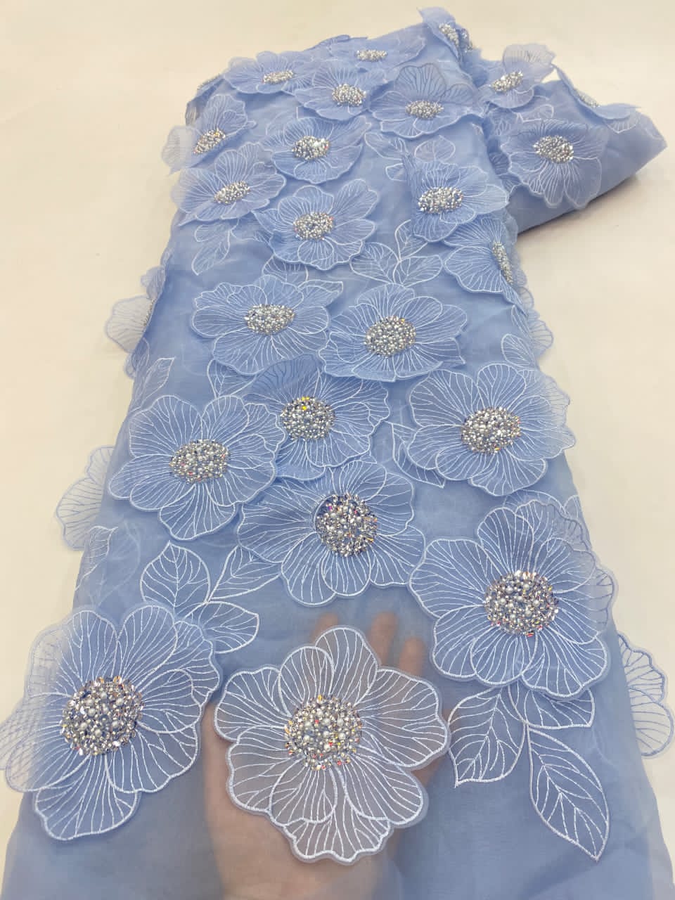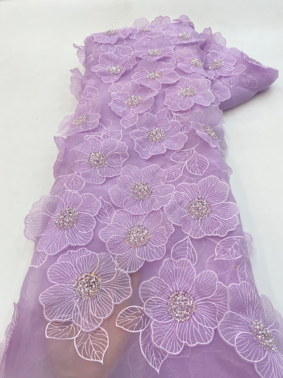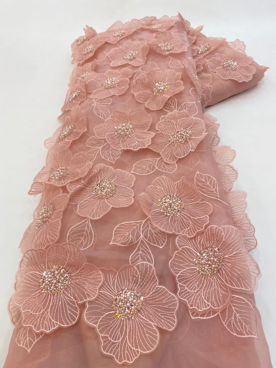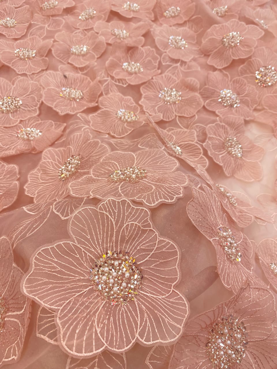 Esta tela de alta calidad se mide en 5 yardas con cuentas bordadas y lentejuelas. Es suave, muy delicado y bonito.