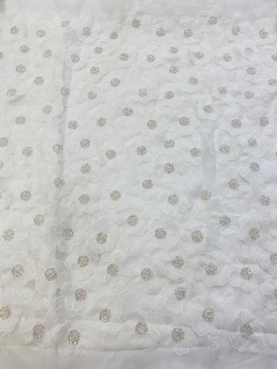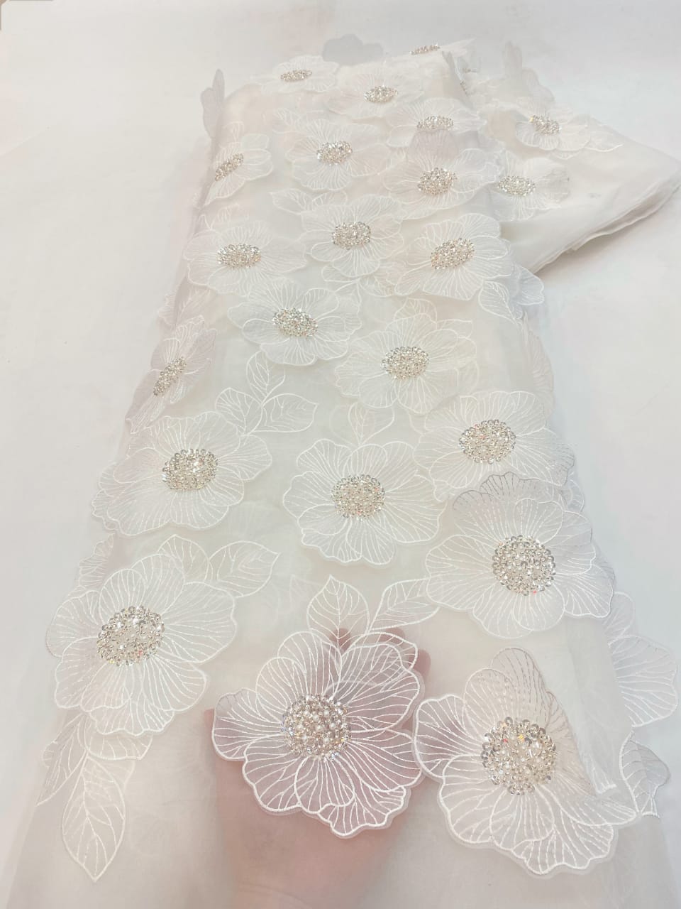 Esta tela de alta calidad está hecha con pedrería bordada a la moda y se puede usar para hacer vestidos de novia, faldas, chales, bufandas y otras prendas de moda que desee.