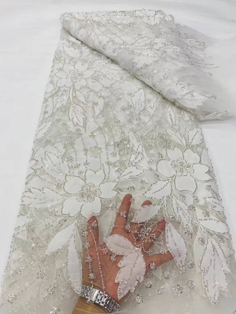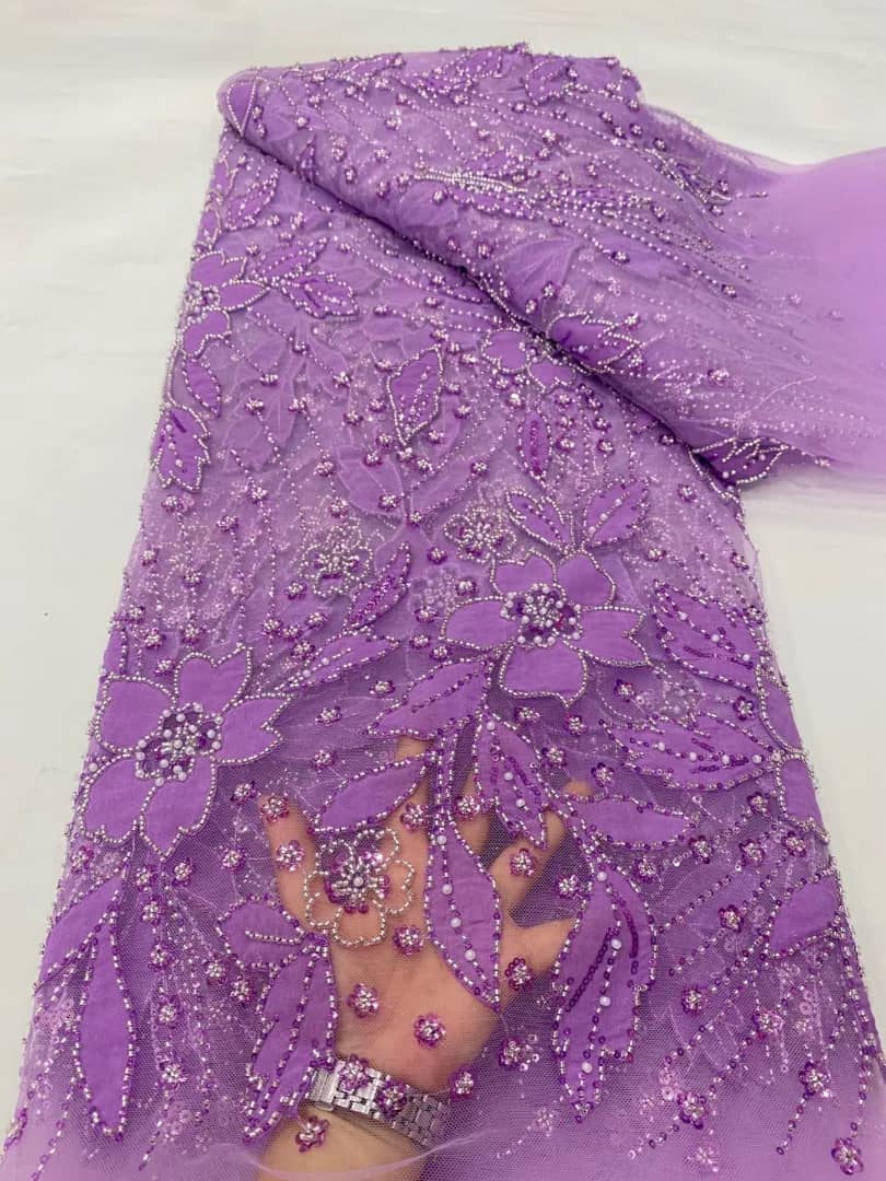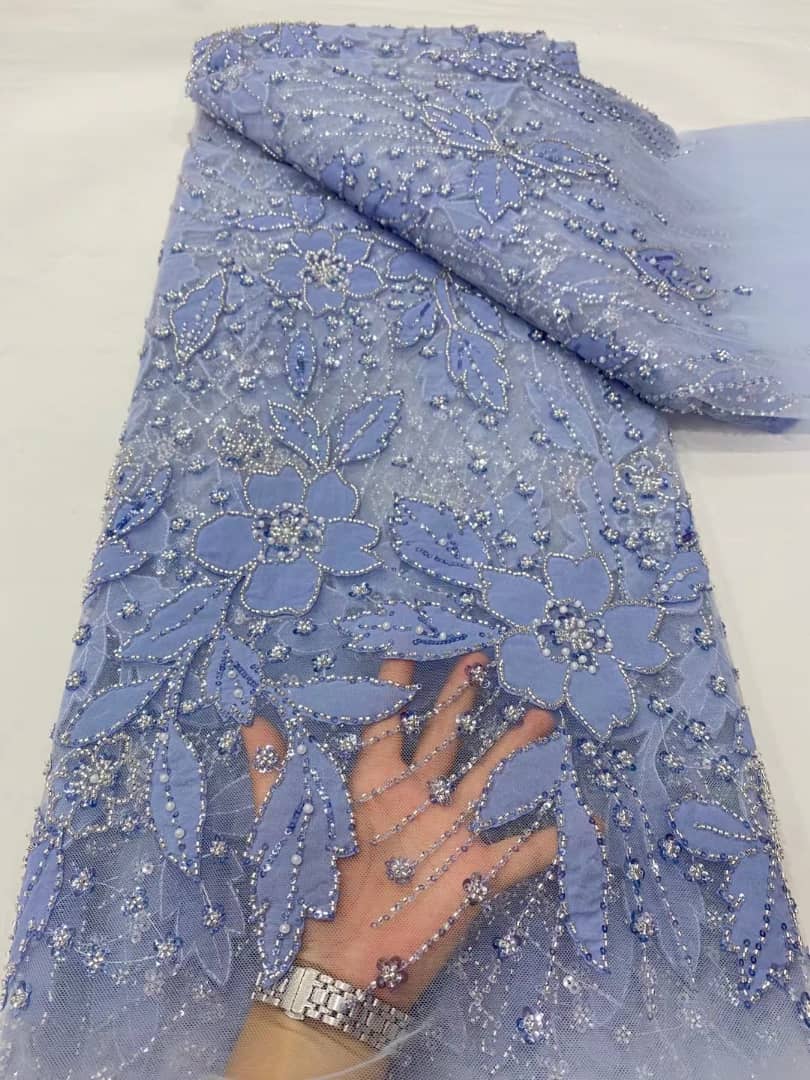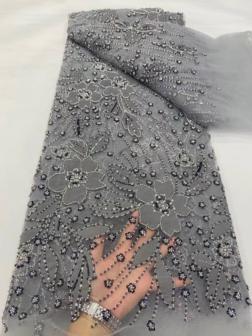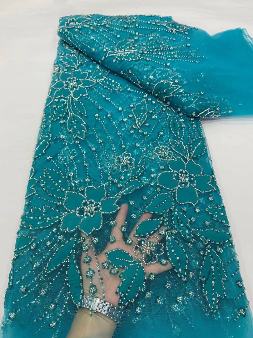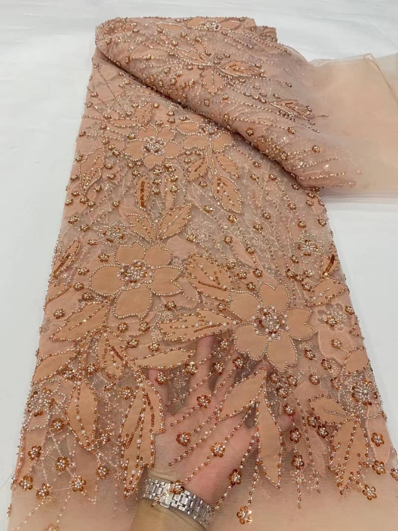 Esta tela de alta calidad se mide en 5 yardas con cuentas bordadas y lentejuelas. Es suave, muy delicado y bonito.