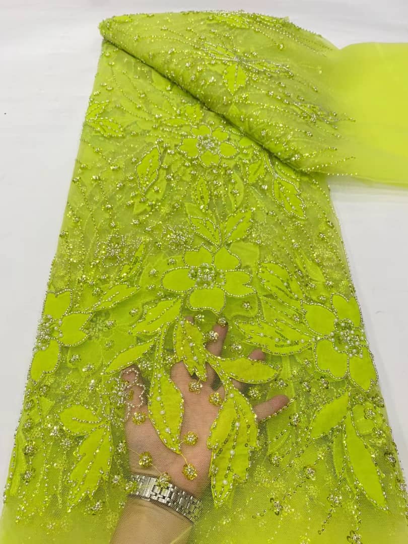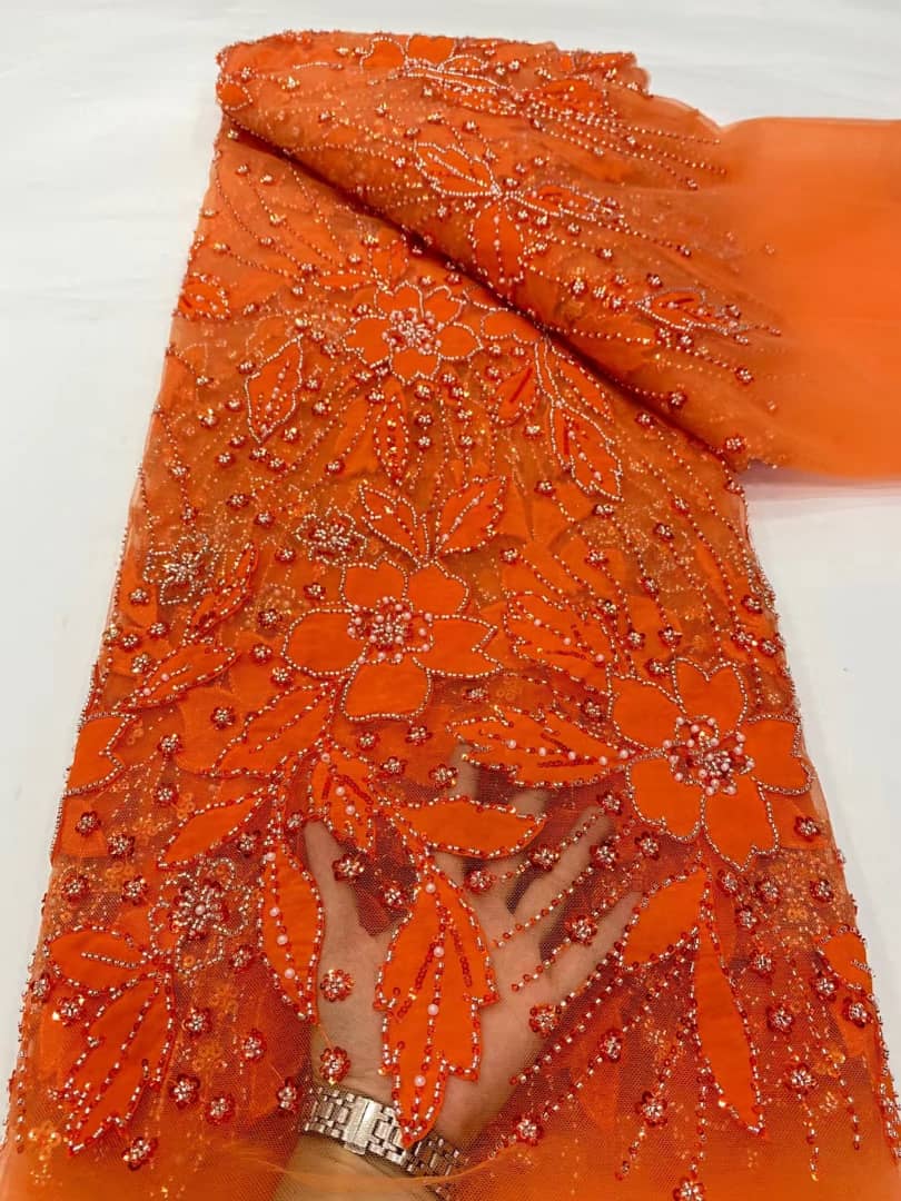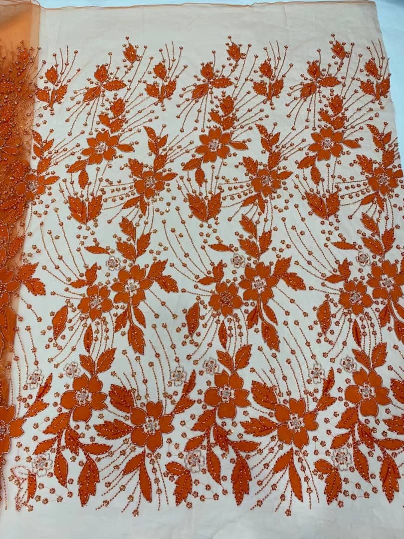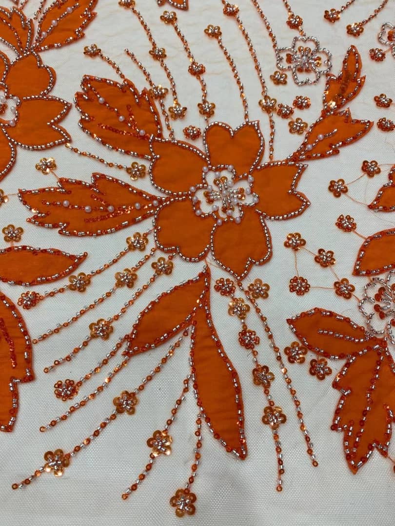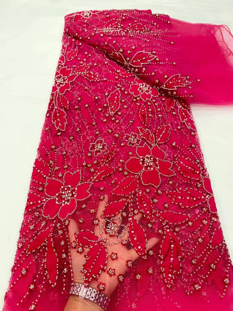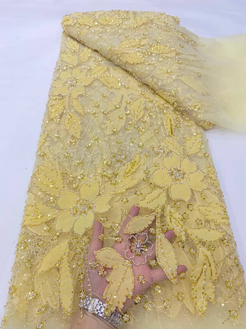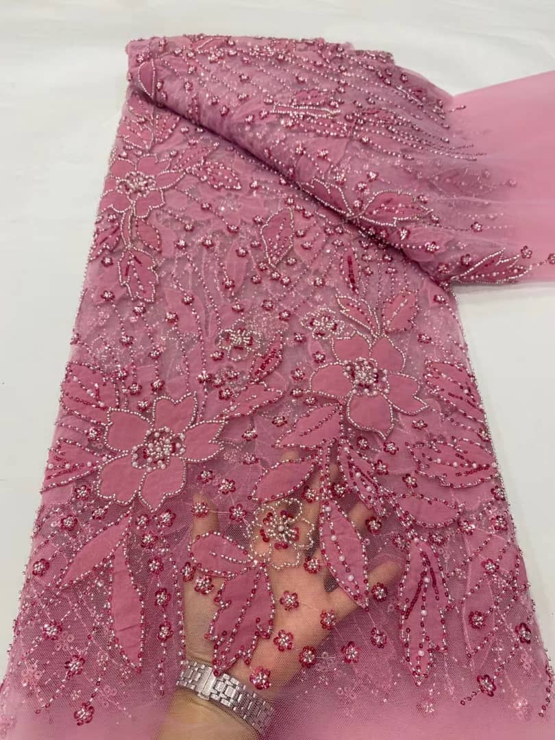 Esta tela de alta calidad se mide en 5 yardas con cuentas bordadas y lentejuelas. Es suave, muy delicado y bonito.