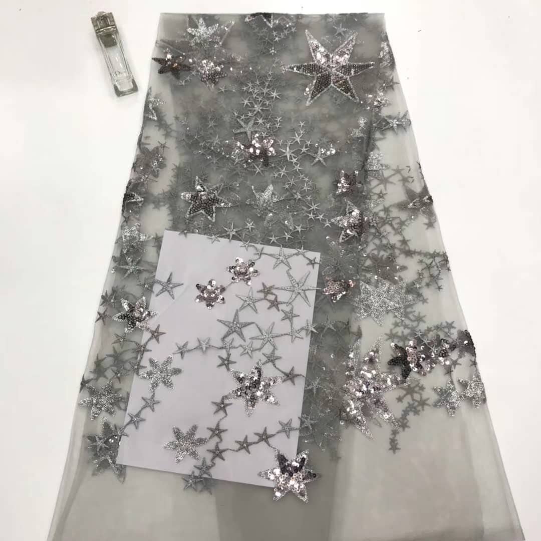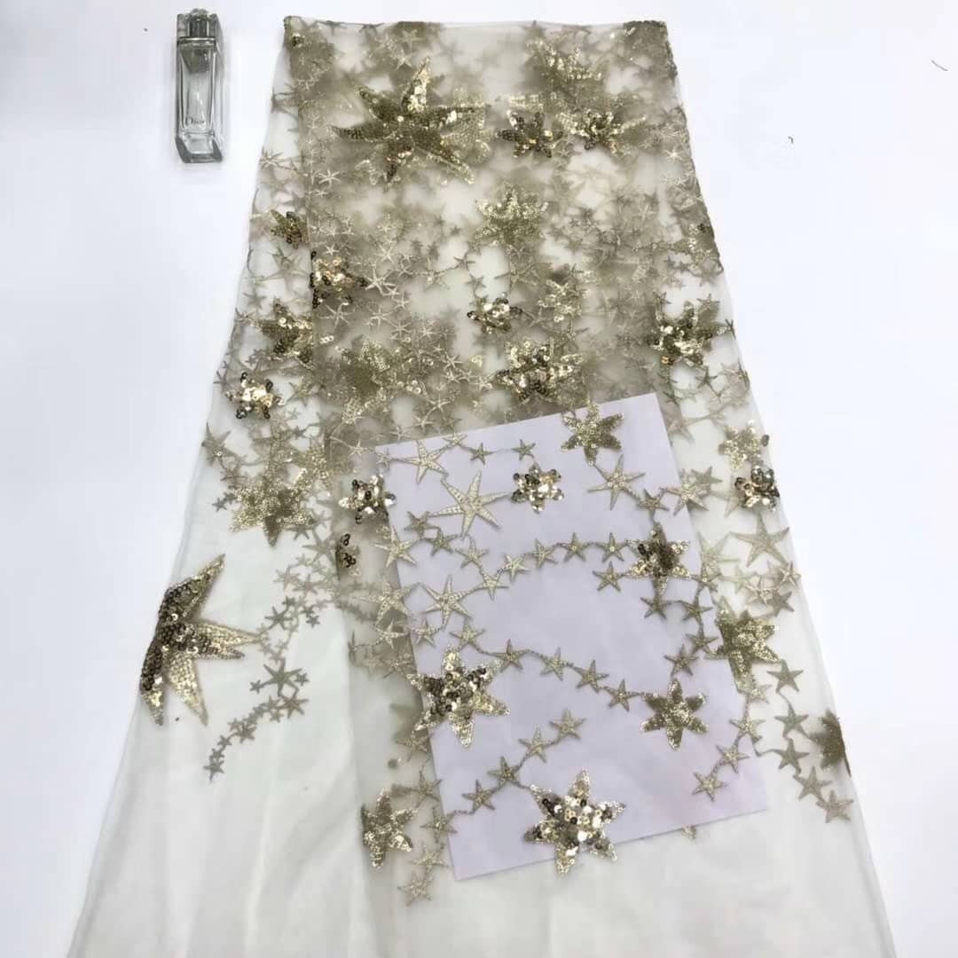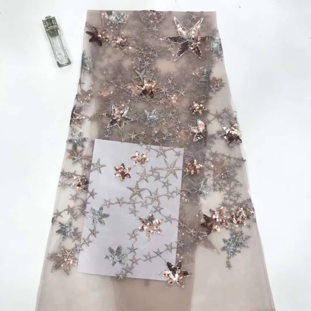 Esta tela de alta calidad se mide en 5 yardas con cuentas bordadas y lentejuelas. Es suave, muy delicado y bonito.