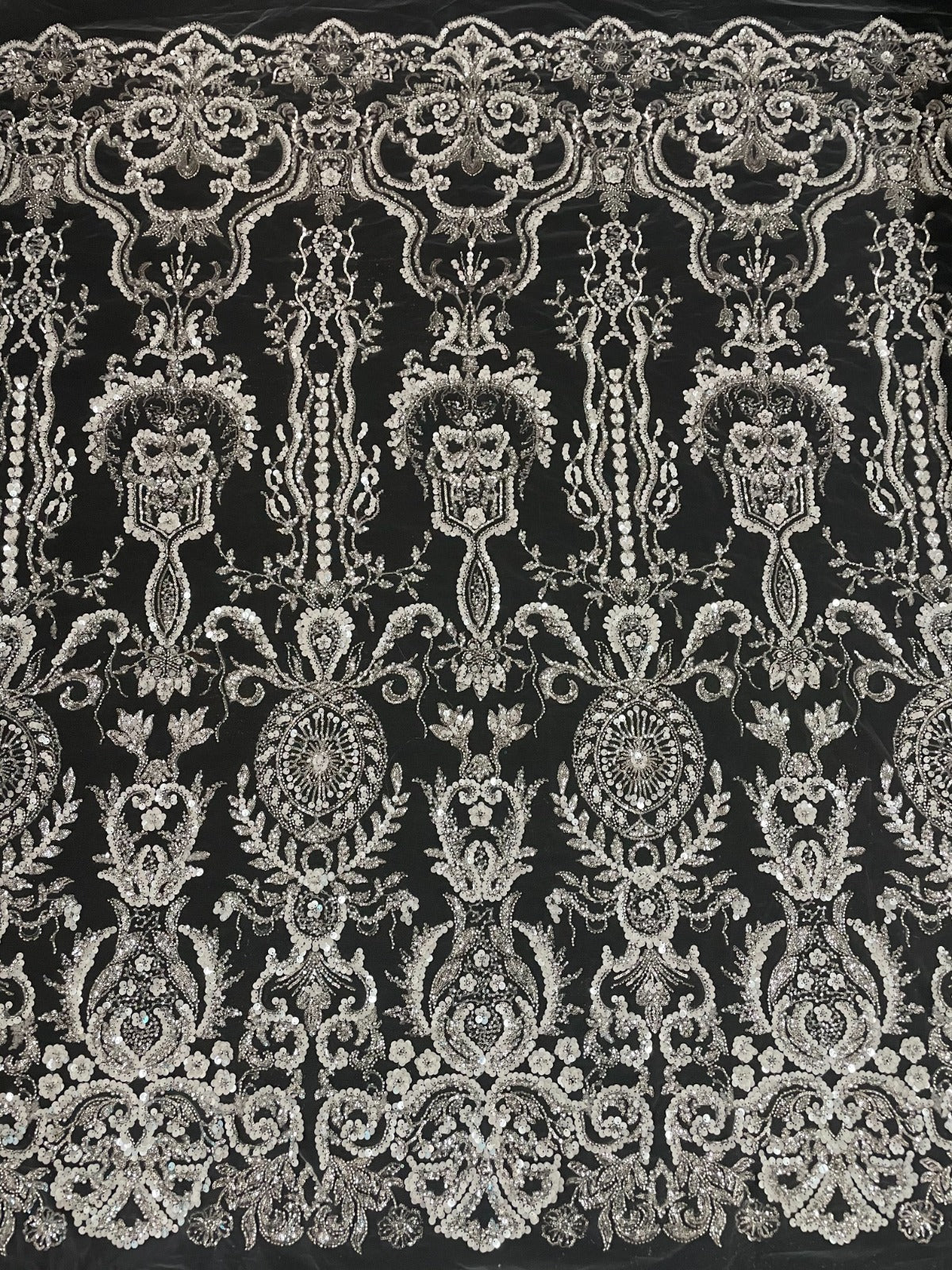 Esta tela de alta calidad se mide en 5 yardas con cuentas bordadas y lentejuelas. Es suave, muy delicado y bonito.