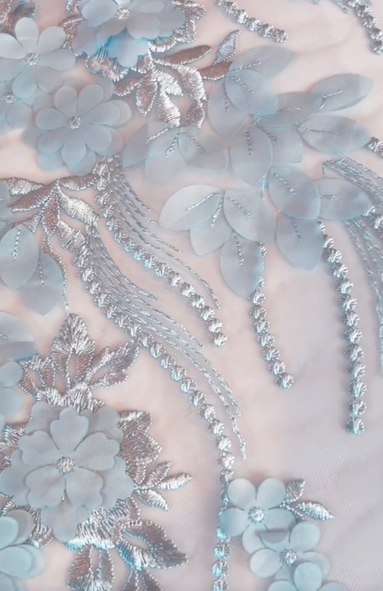 Esta tela de alta calidad se mide en 5 yardas con cuentas bordadas y lentejuelas. Es suave, muy delicado y bonito.