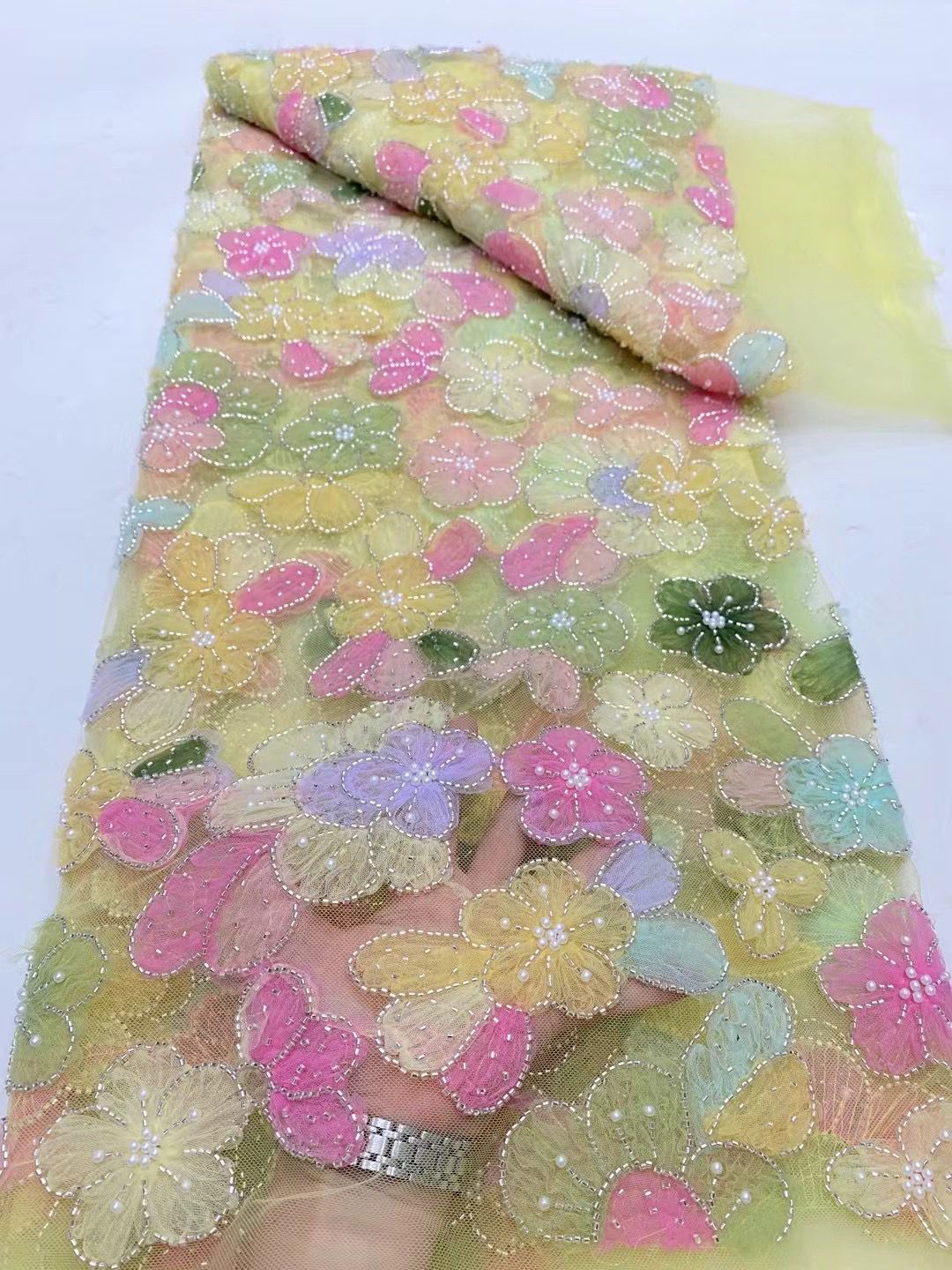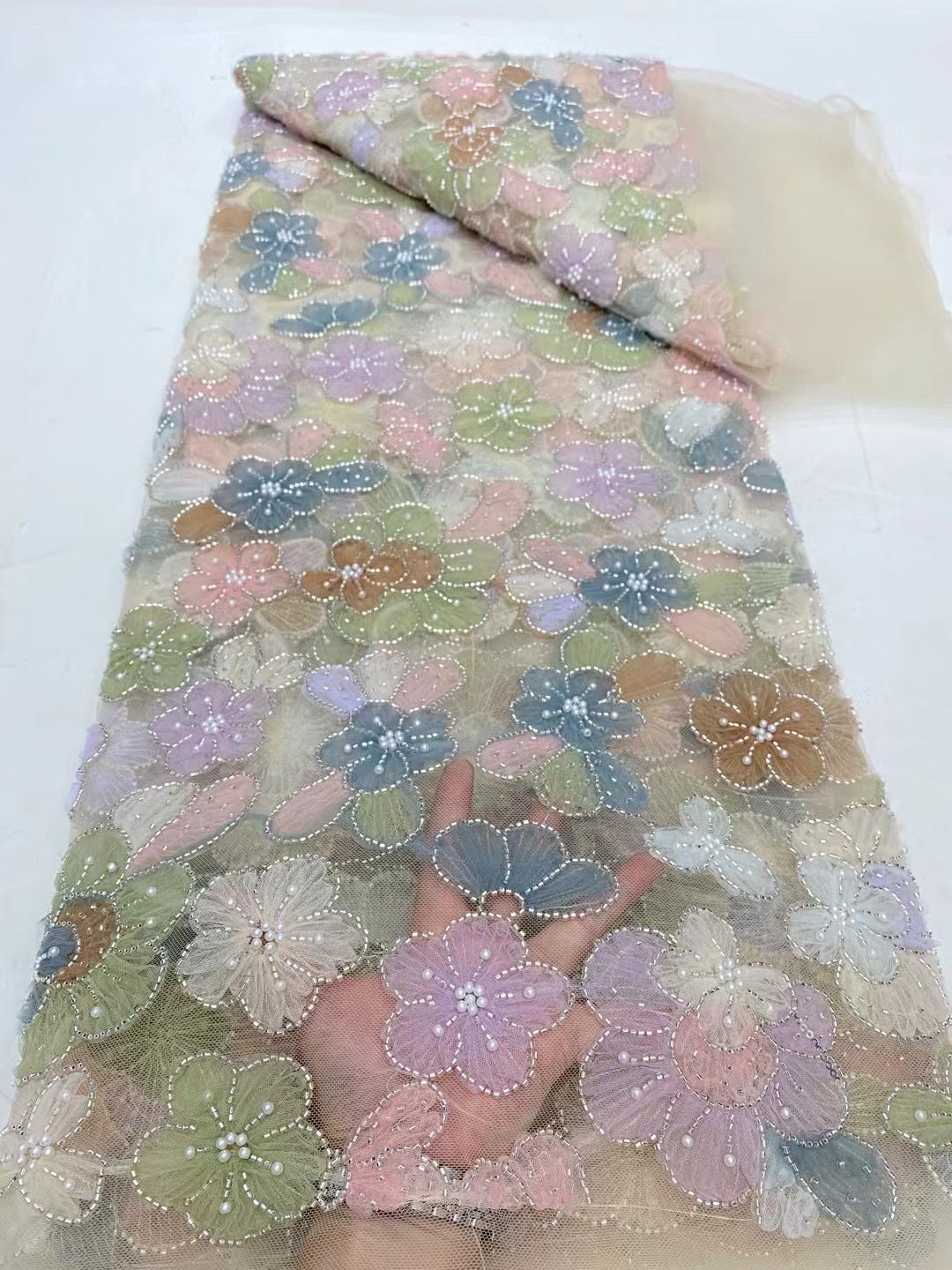 This high quality Fabric is measured in 5 Yards With Embroidered Beading and Sequin. It is soft, very delicate and beautiful.