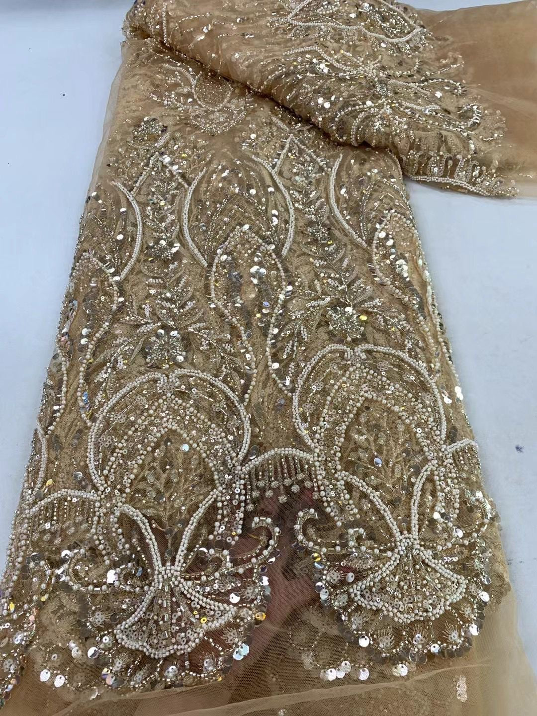 This high quality Fabric is measured in 5 Yards With Embroidered Beading and Sequin. It is soft, very delicate and beautiful.