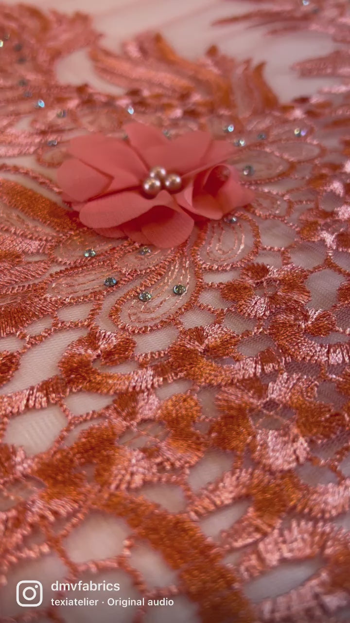Esta tela de alta calidad se mide de 1 a 5 yardas con cuentas bordadas y lentejuelas. Es suave, muy delicado y bonito.