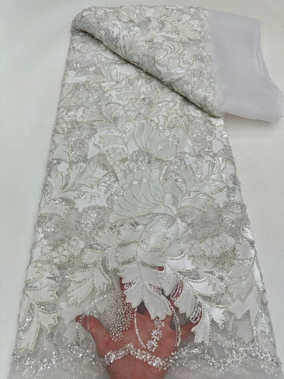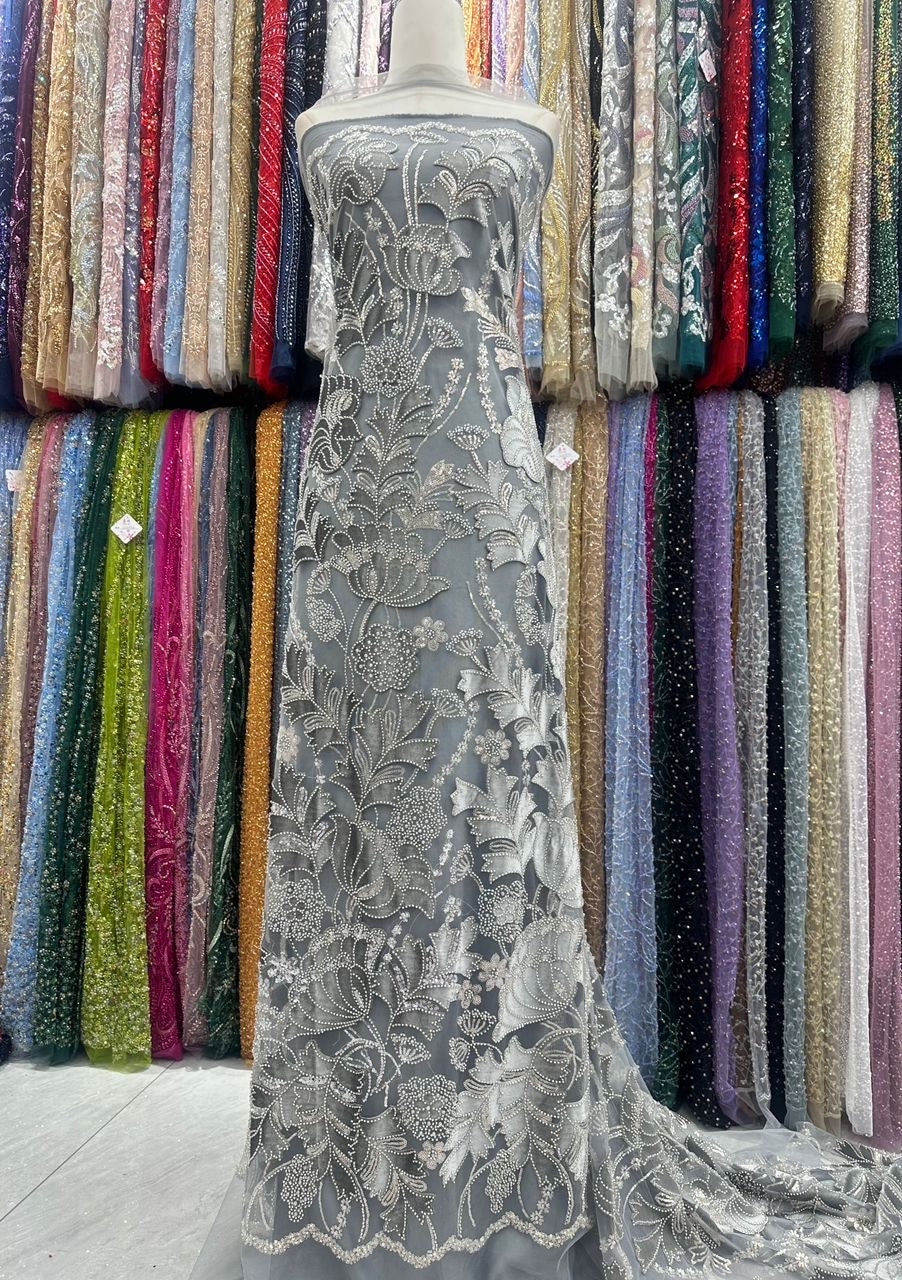 This high quality Fabric is measured in 5 Yards With Embroidered Beading and Sequin. It is soft, very delicate and beautiful.