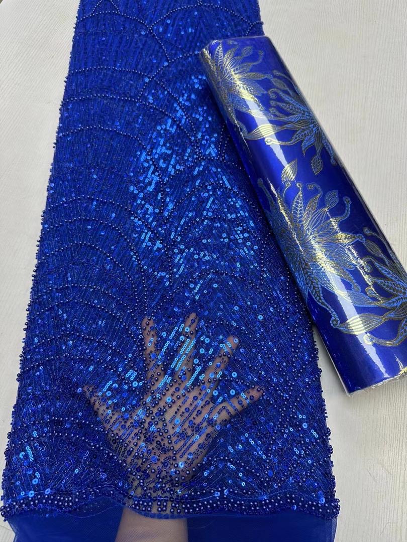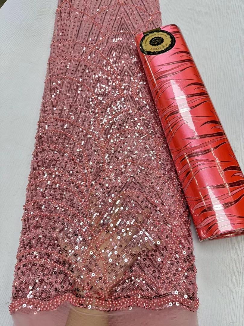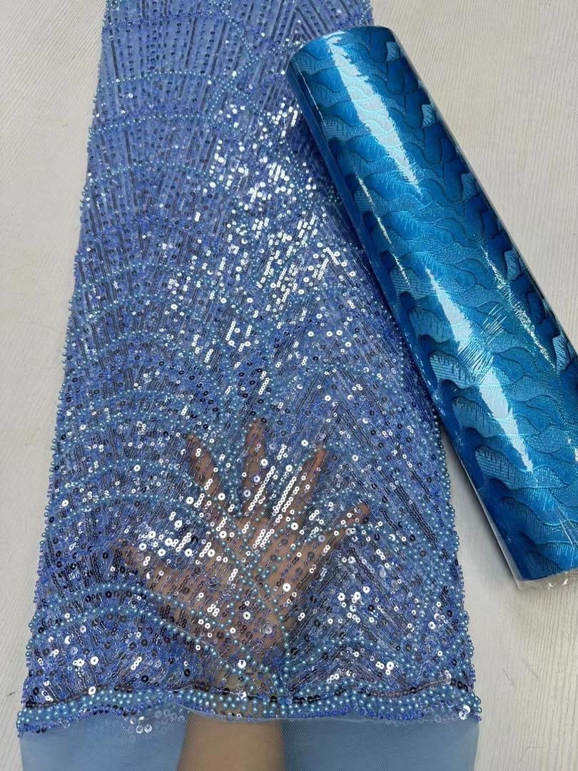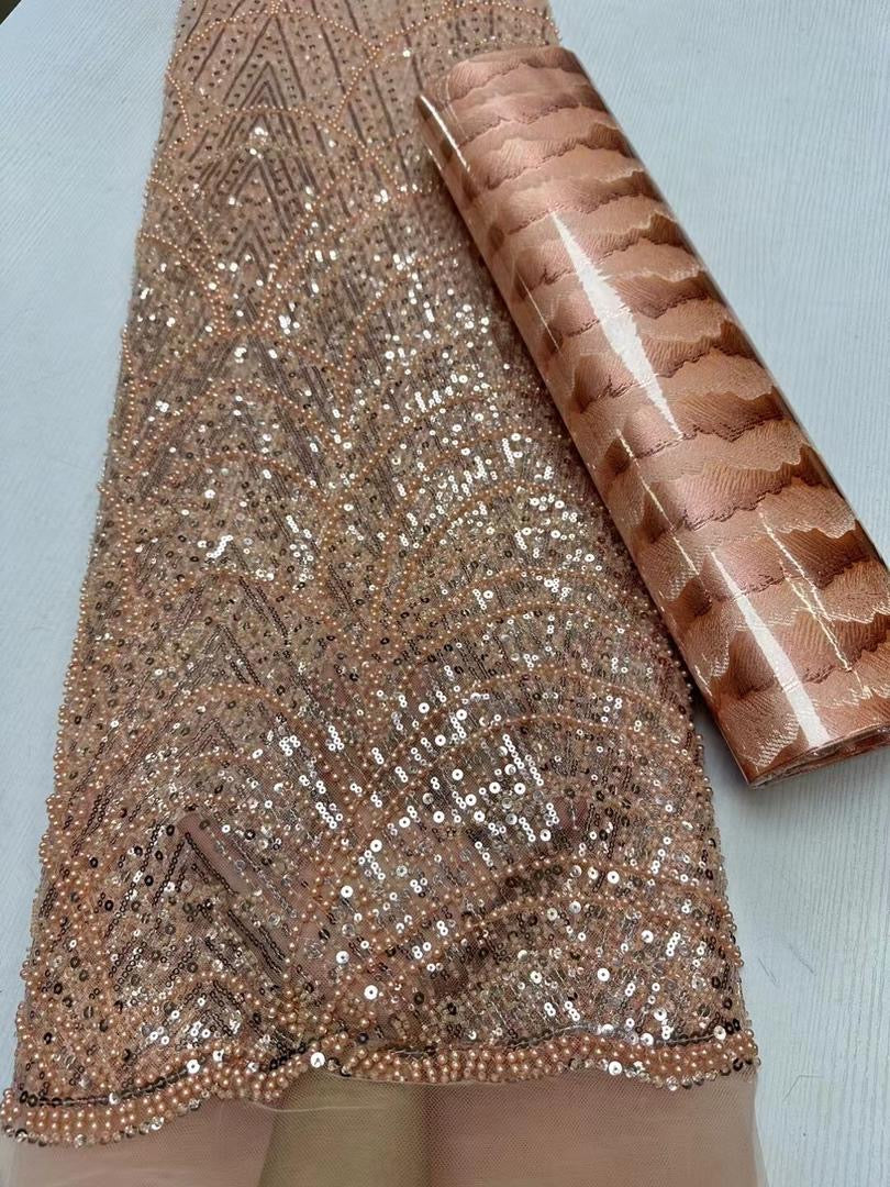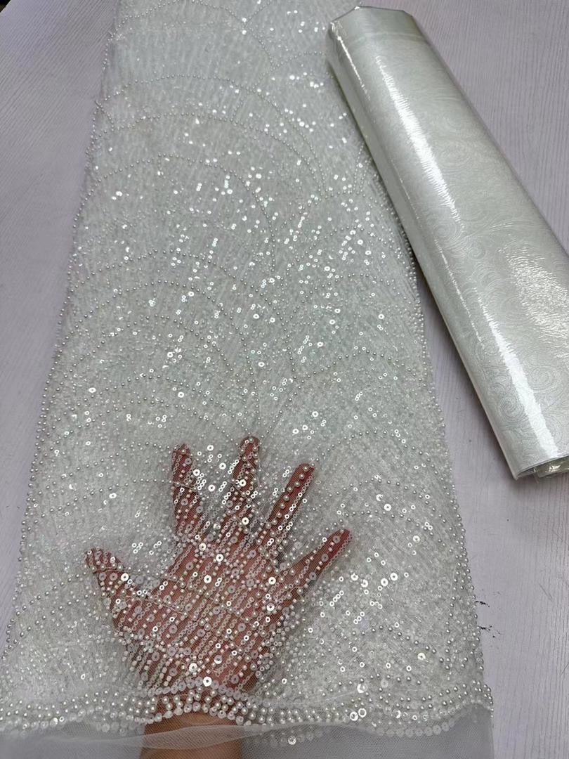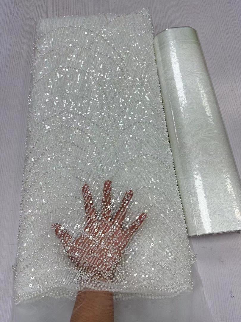 Esta tela de alta calidad se mide en 5 yardas con cuentas bordadas y lentejuelas. Es suave, muy delicado y bonito.