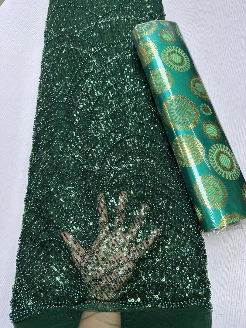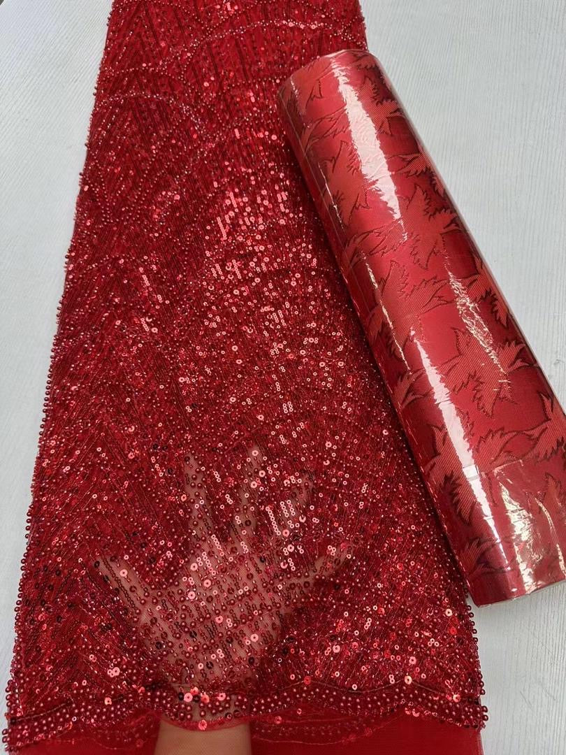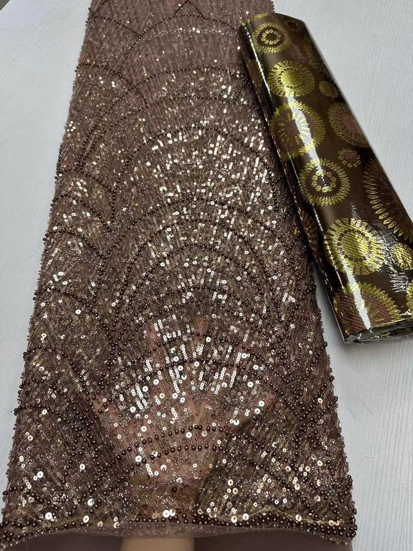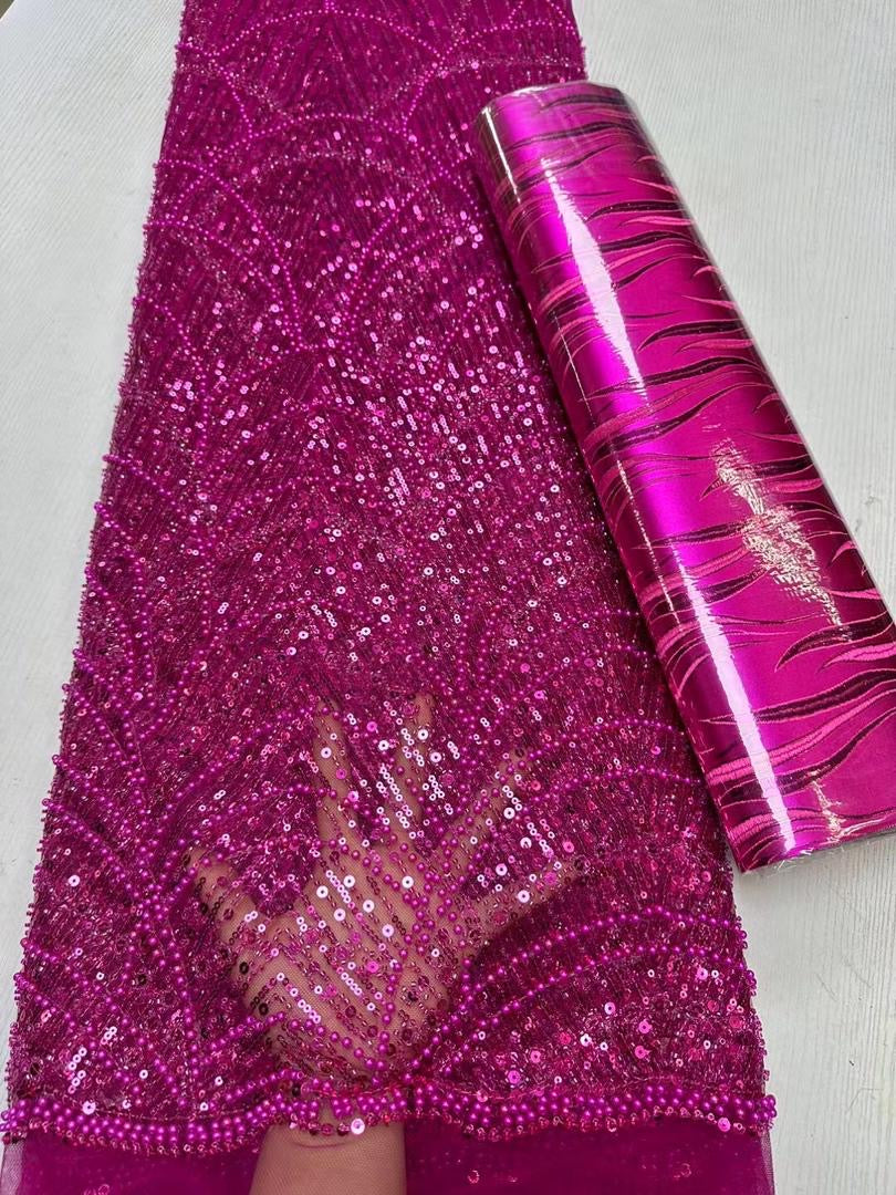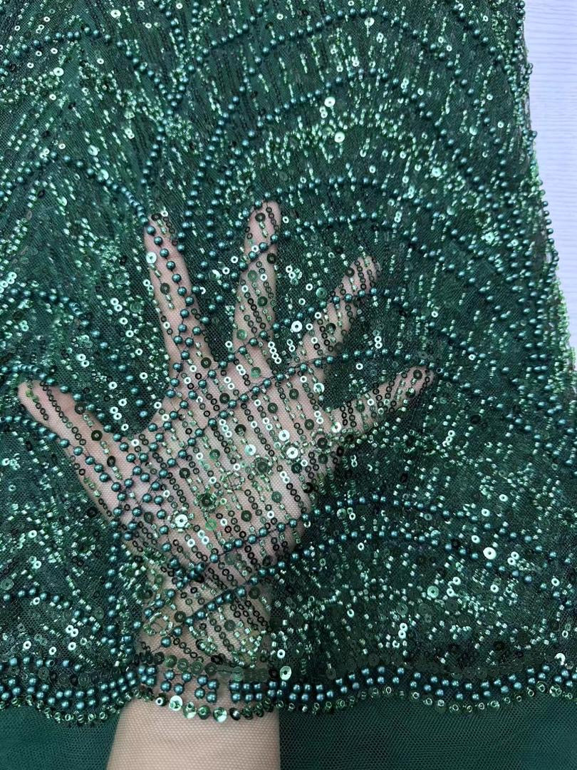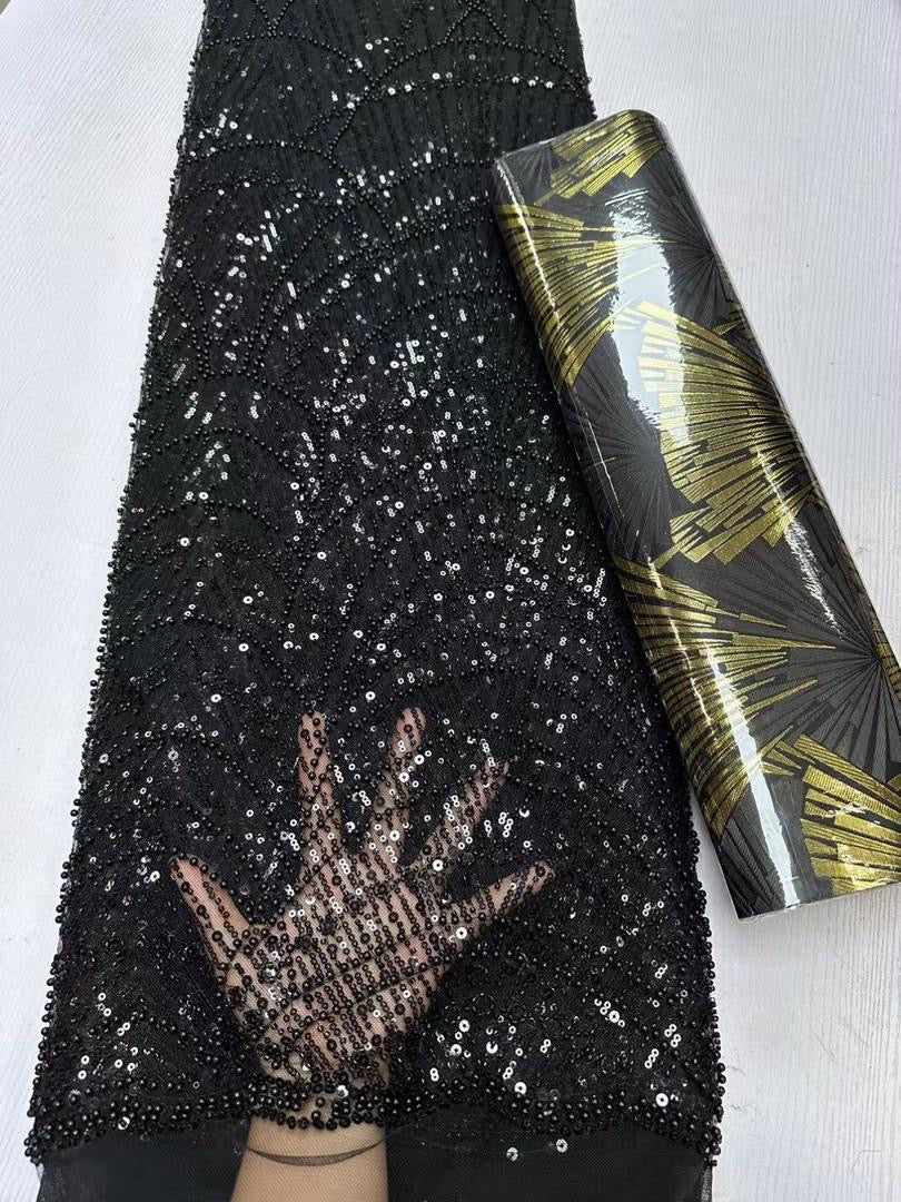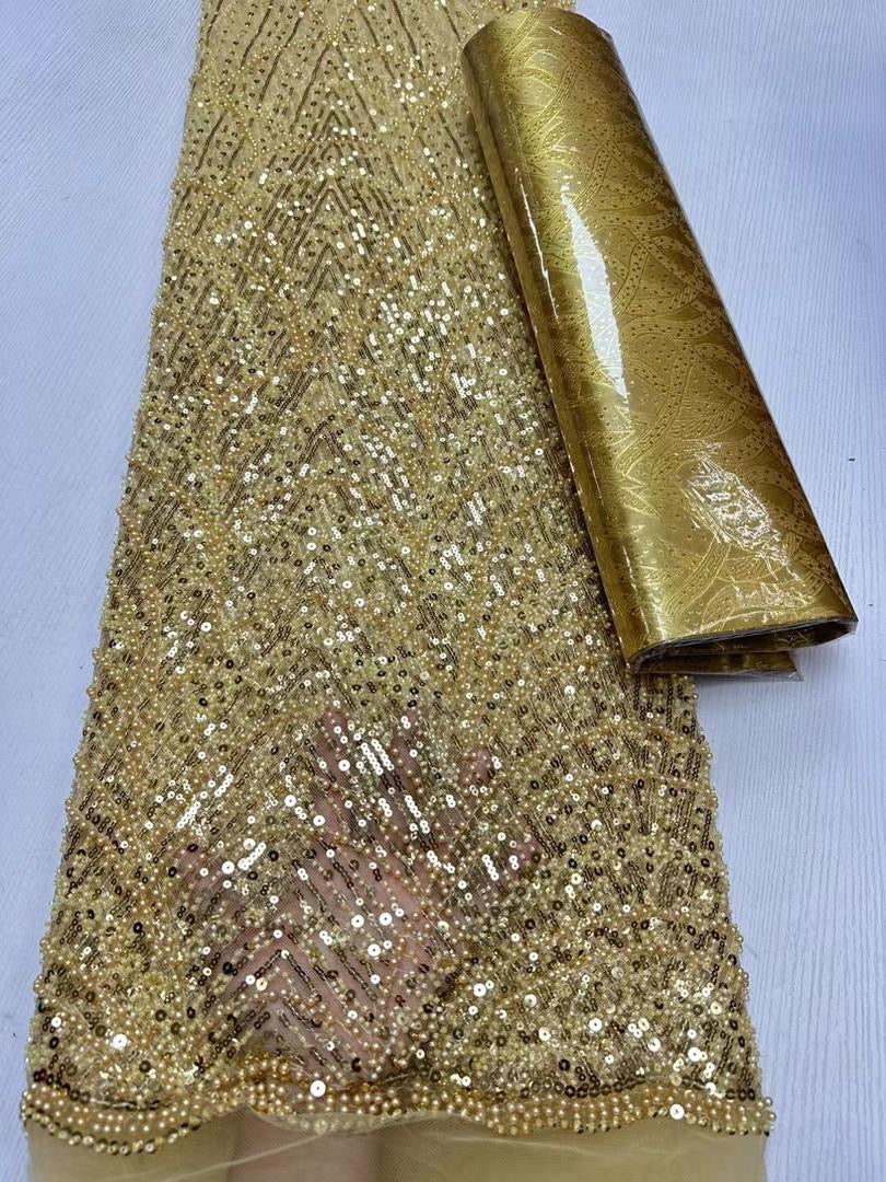 Esta tela de alta calidad se mide en 5 yardas con cuentas bordadas y lentejuelas. Es suave, muy delicado y bonito.