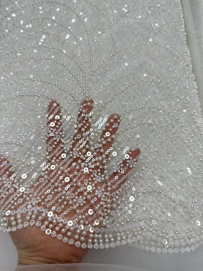Esta tela de alta calidad está hecha con pedrería bordada a la moda y se puede usar para hacer vestidos de novia, faldas, chales, bufandas y otras prendas de moda que desee.