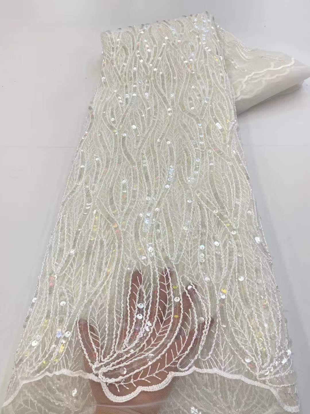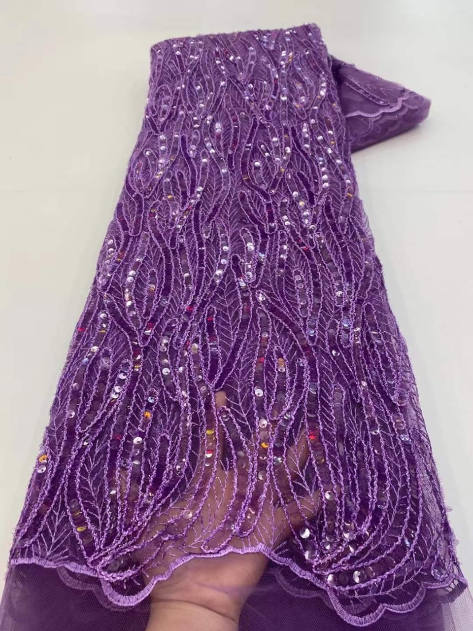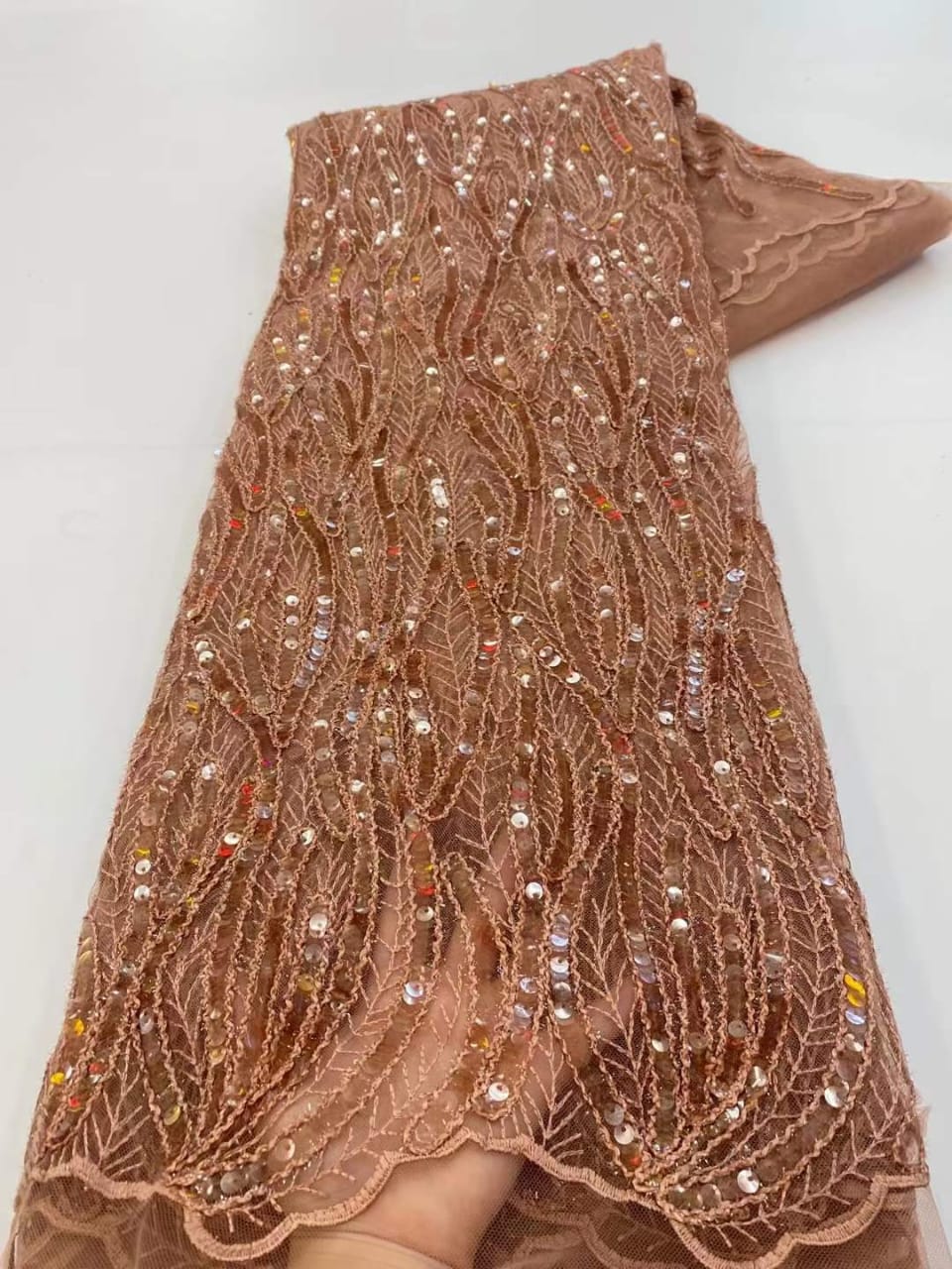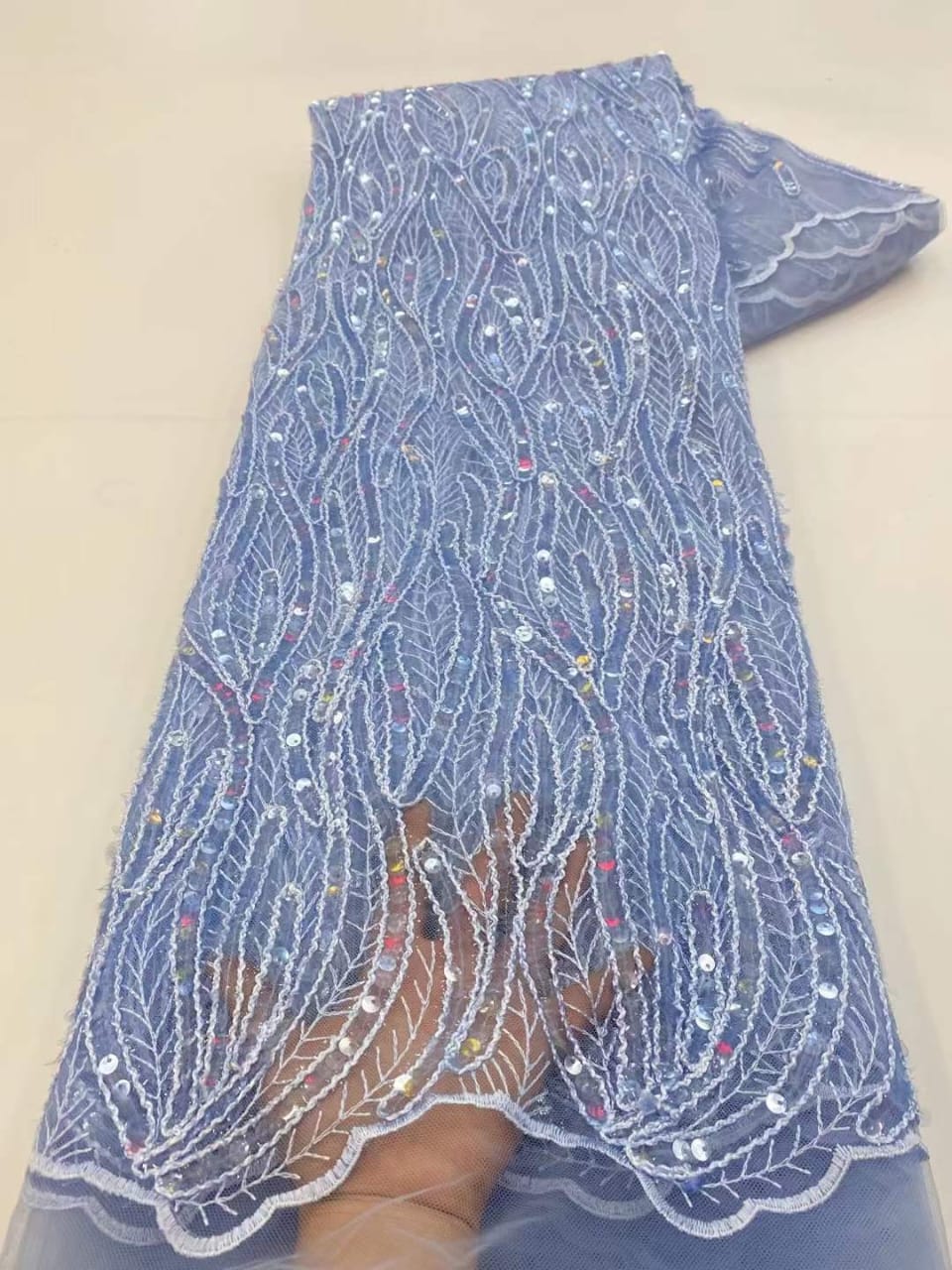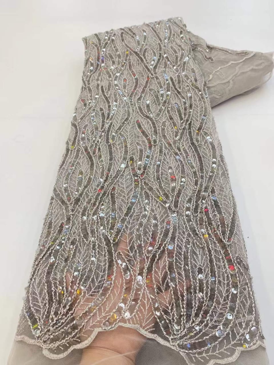 Esta tela de alta calidad se mide en 5 yardas con cuentas bordadas y lentejuelas. Es suave, muy delicado y bonito.