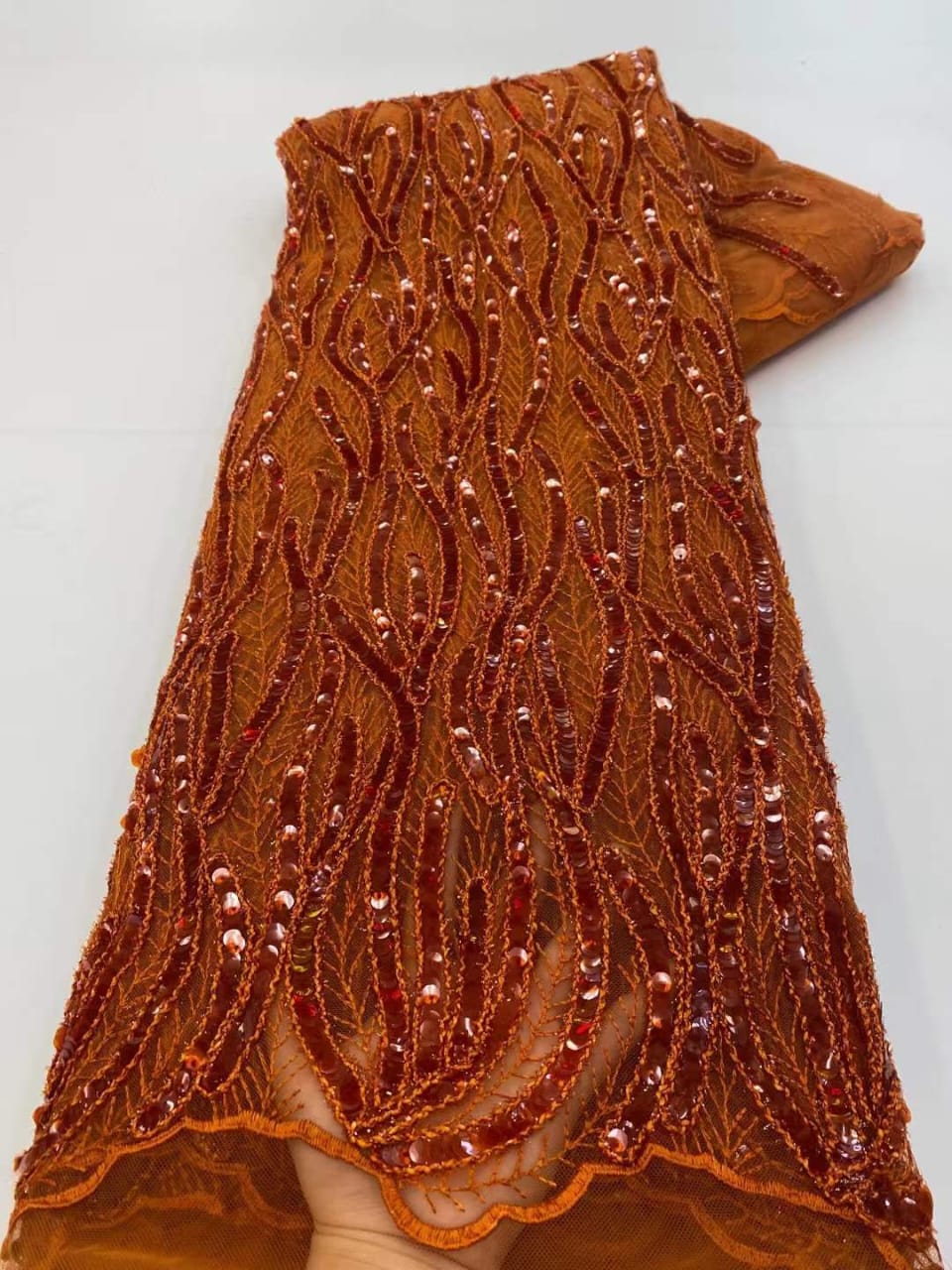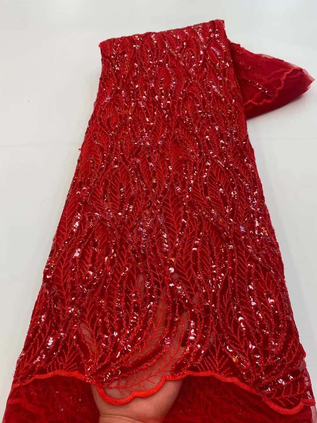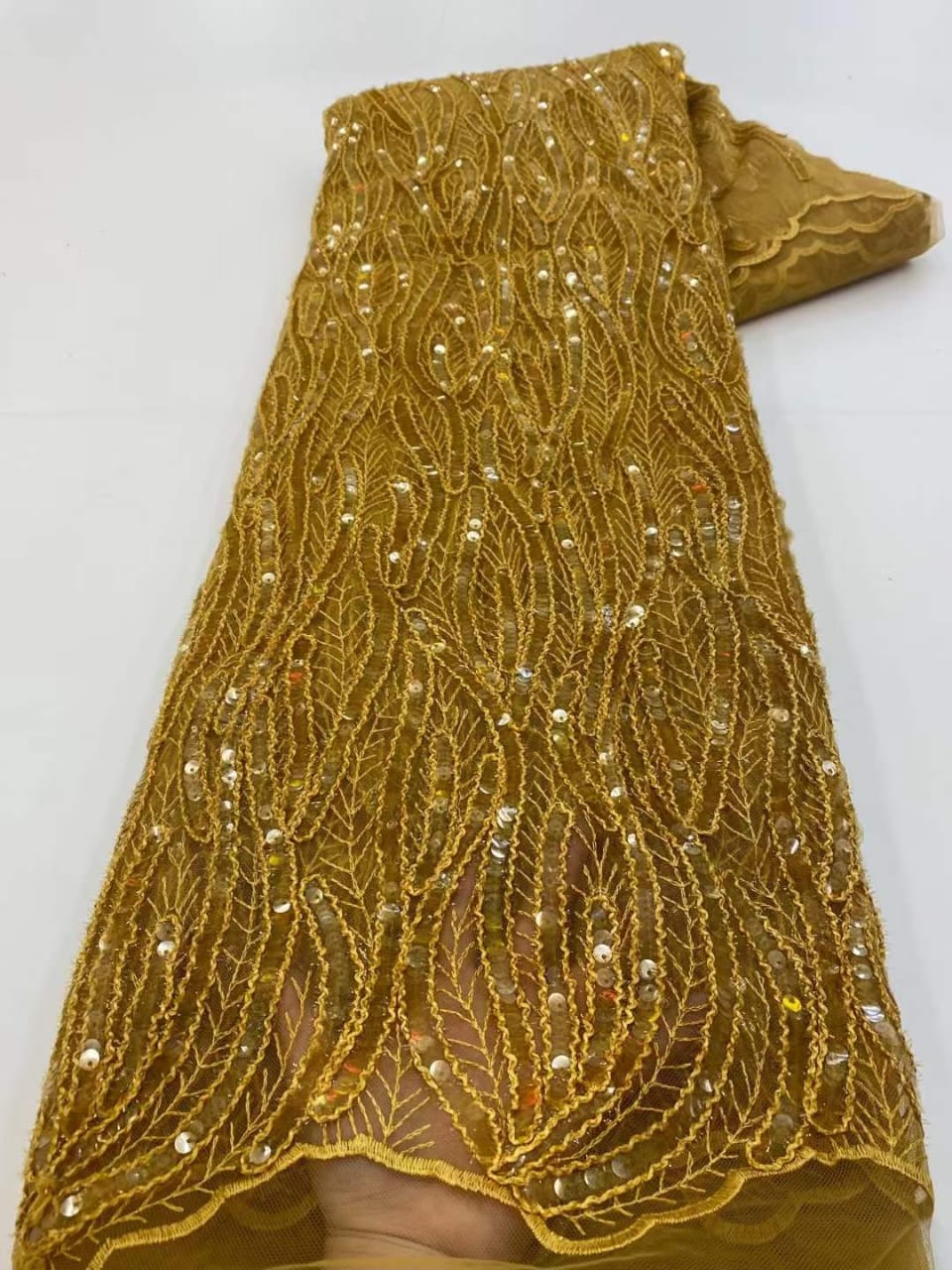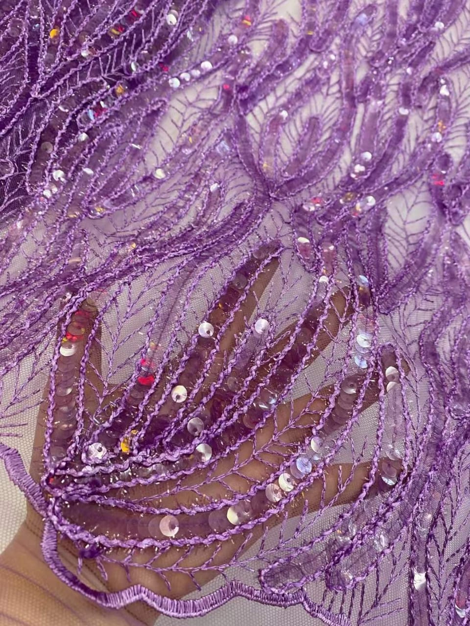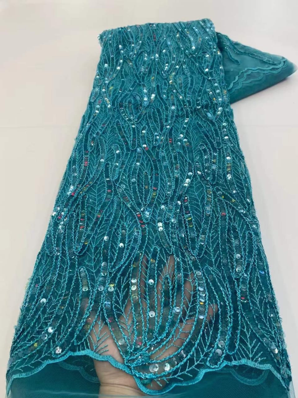 Esta tela de alta calidad se mide en 5 yardas con cuentas bordadas y lentejuelas. Es suave, muy delicado y bonito.
