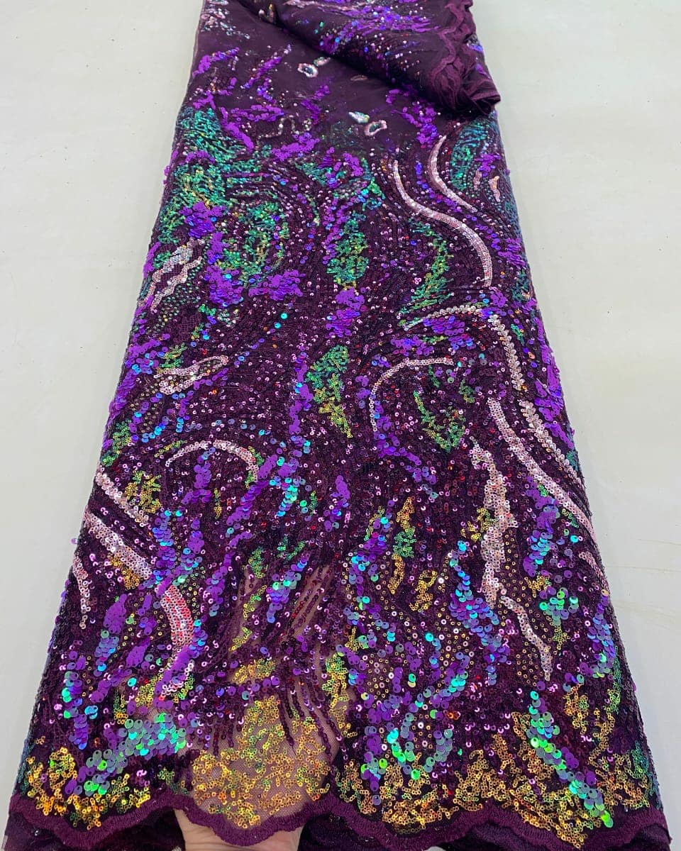 Esta tela de alta calidad se mide en 5 yardas con cuentas bordadas y lentejuelas. Es suave, muy delicado y bonito.