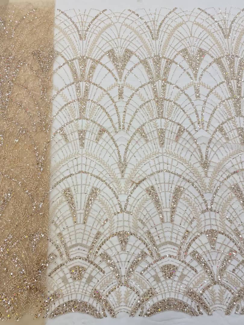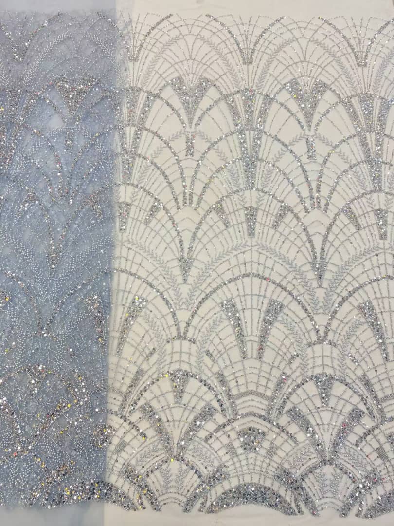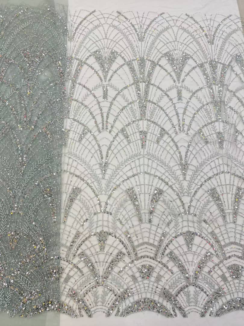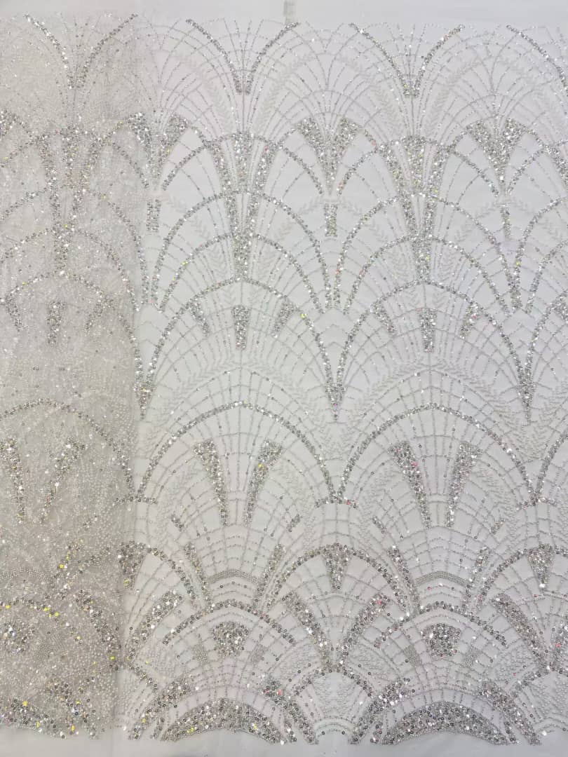 Esta tela de alta calidad está hecha con pedrería bordada a la moda y se puede usar para hacer vestidos de novia, faldas, chales, bufandas y otras prendas de moda que desee.