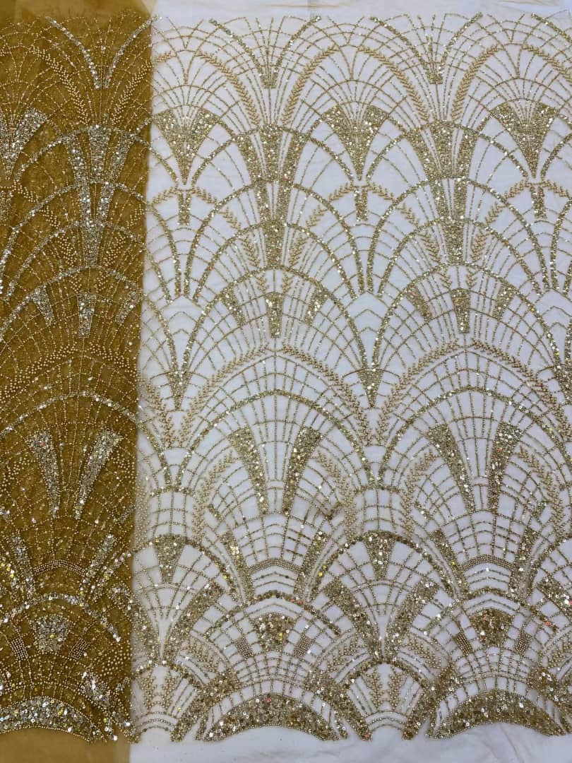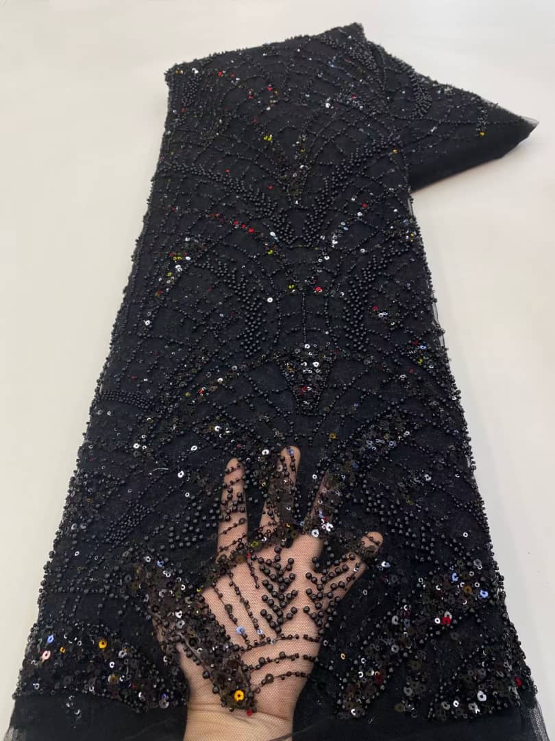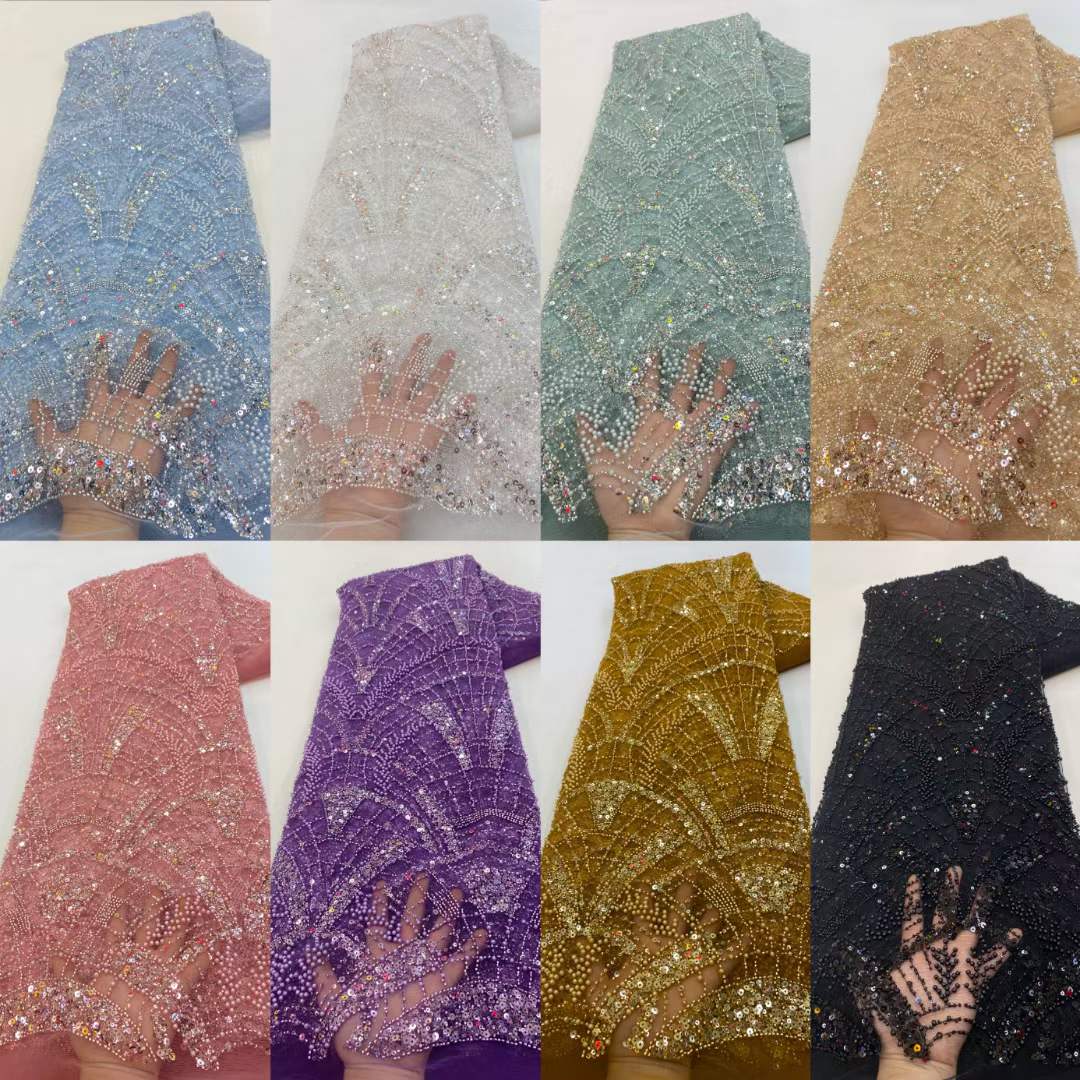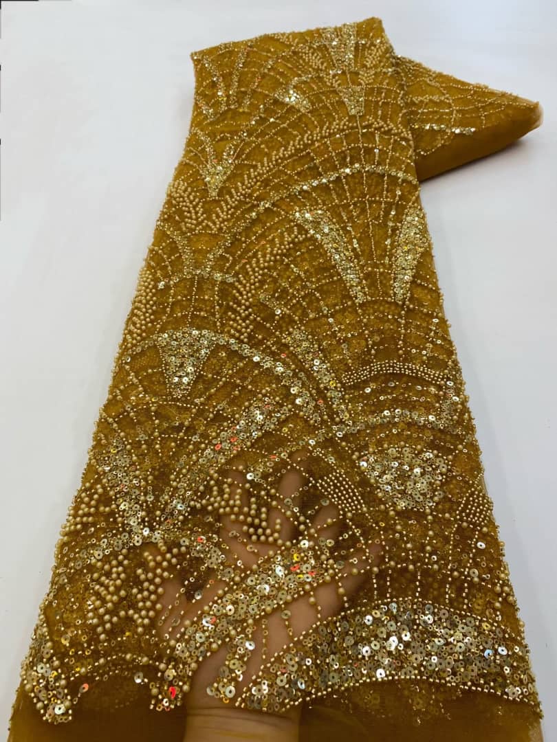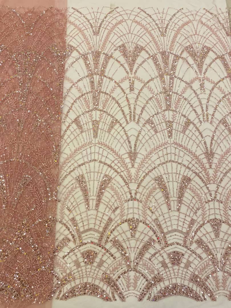 Esta tela de alta calidad se mide en 5 yardas con cuentas bordadas y lentejuelas. Es suave, muy delicado y bonito.