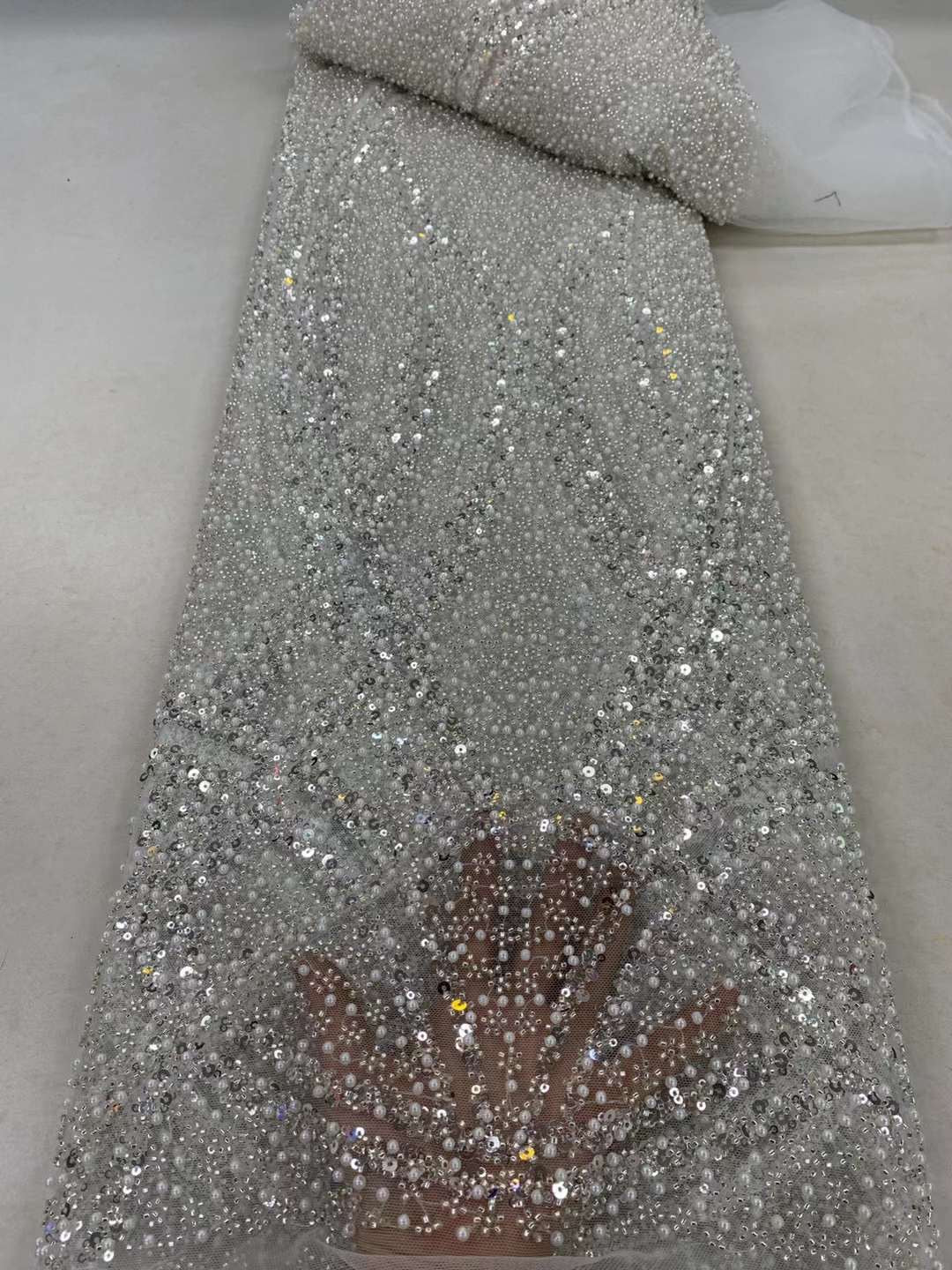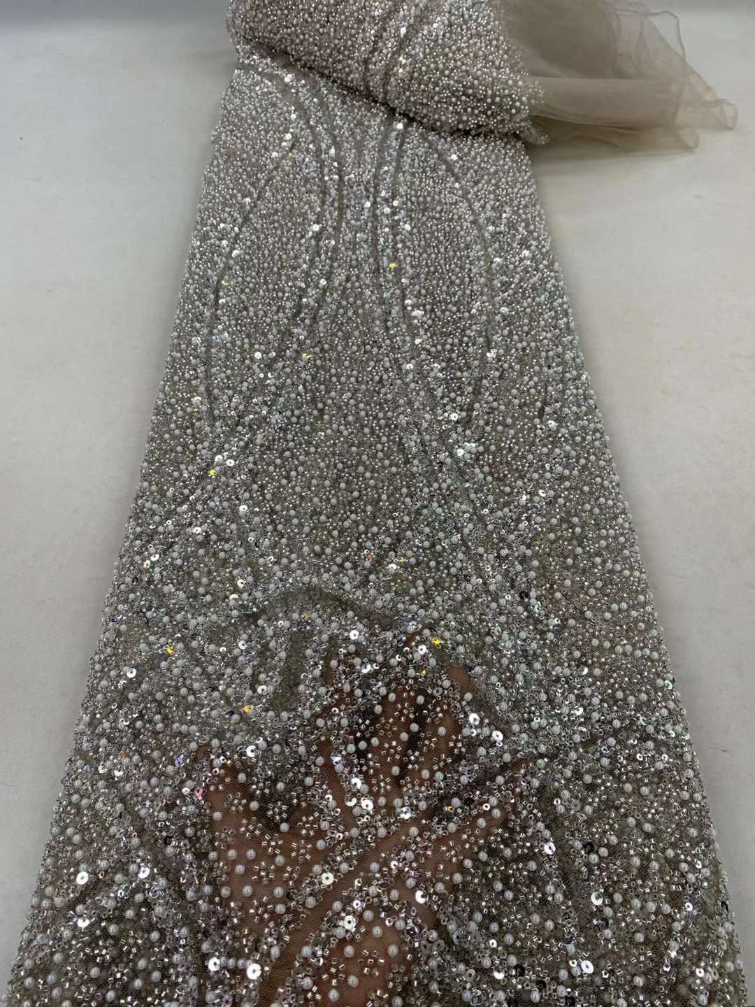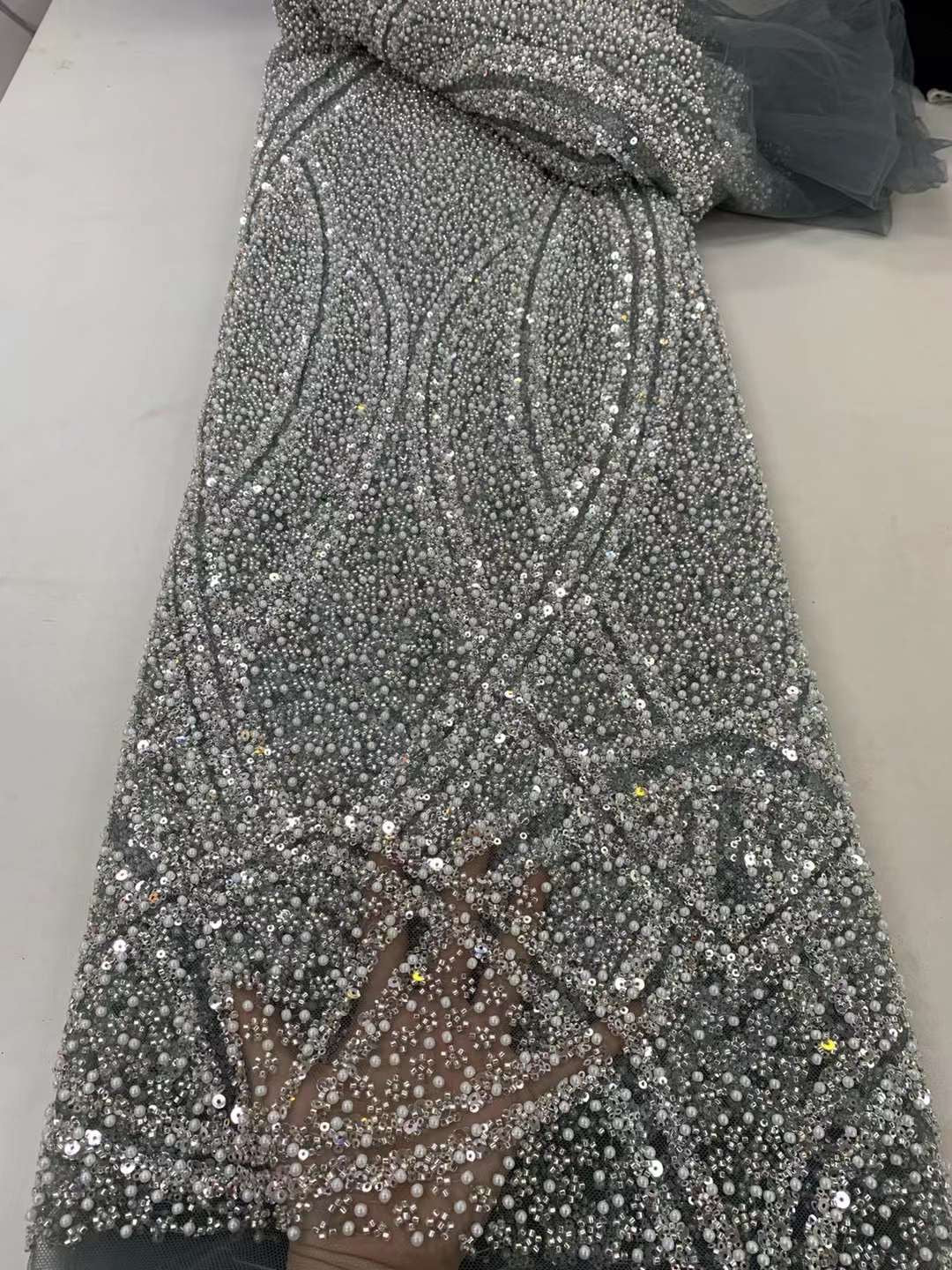 This high Quality Fabric is made with Fashion embroidered rhinestones can be used in making party wedding dresses, skirts, shawls, scarves and other other fashion apparels as you would like.
