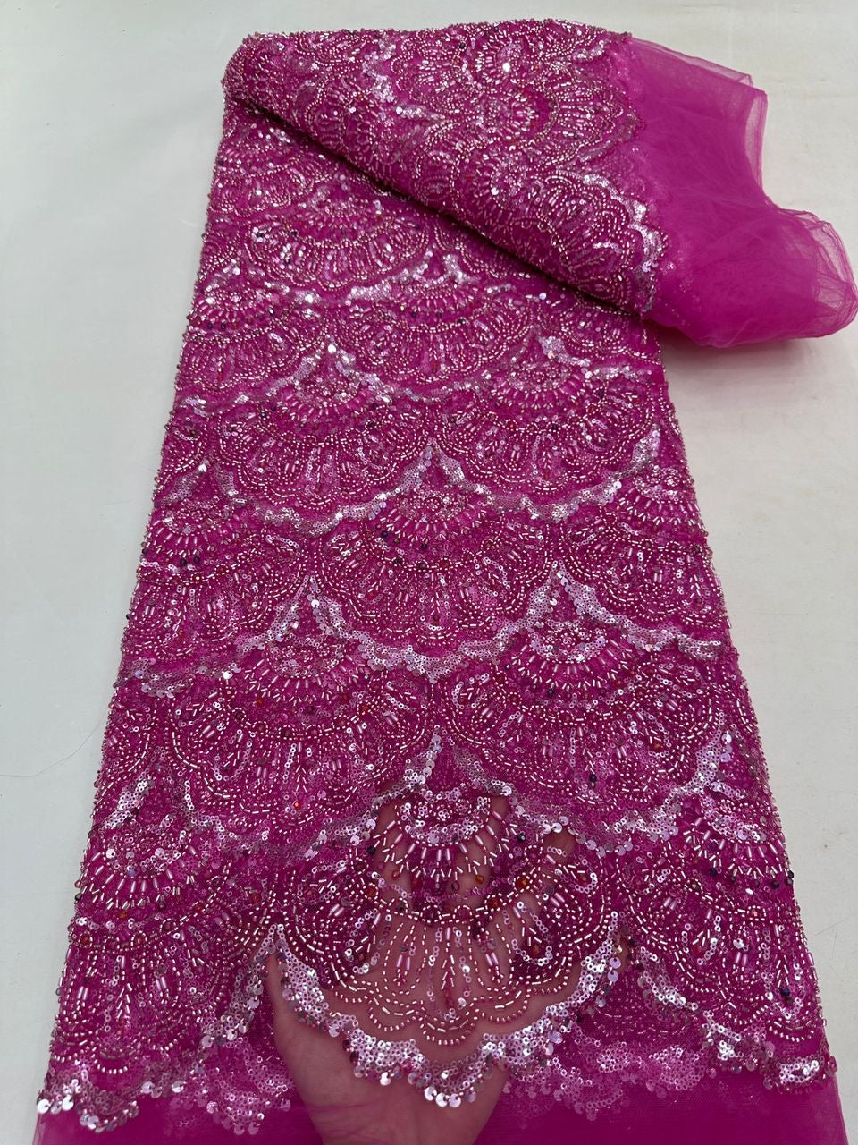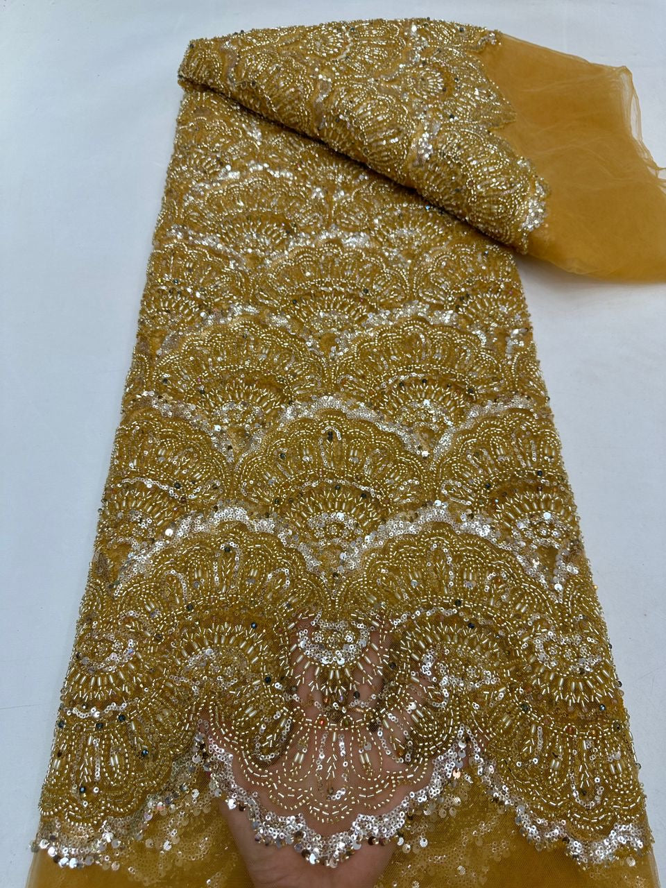 This high quality Fabric is measured in 5 Yards With Embroidered Beading and Sequin. It is soft, very delicate and beautiful.