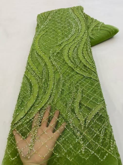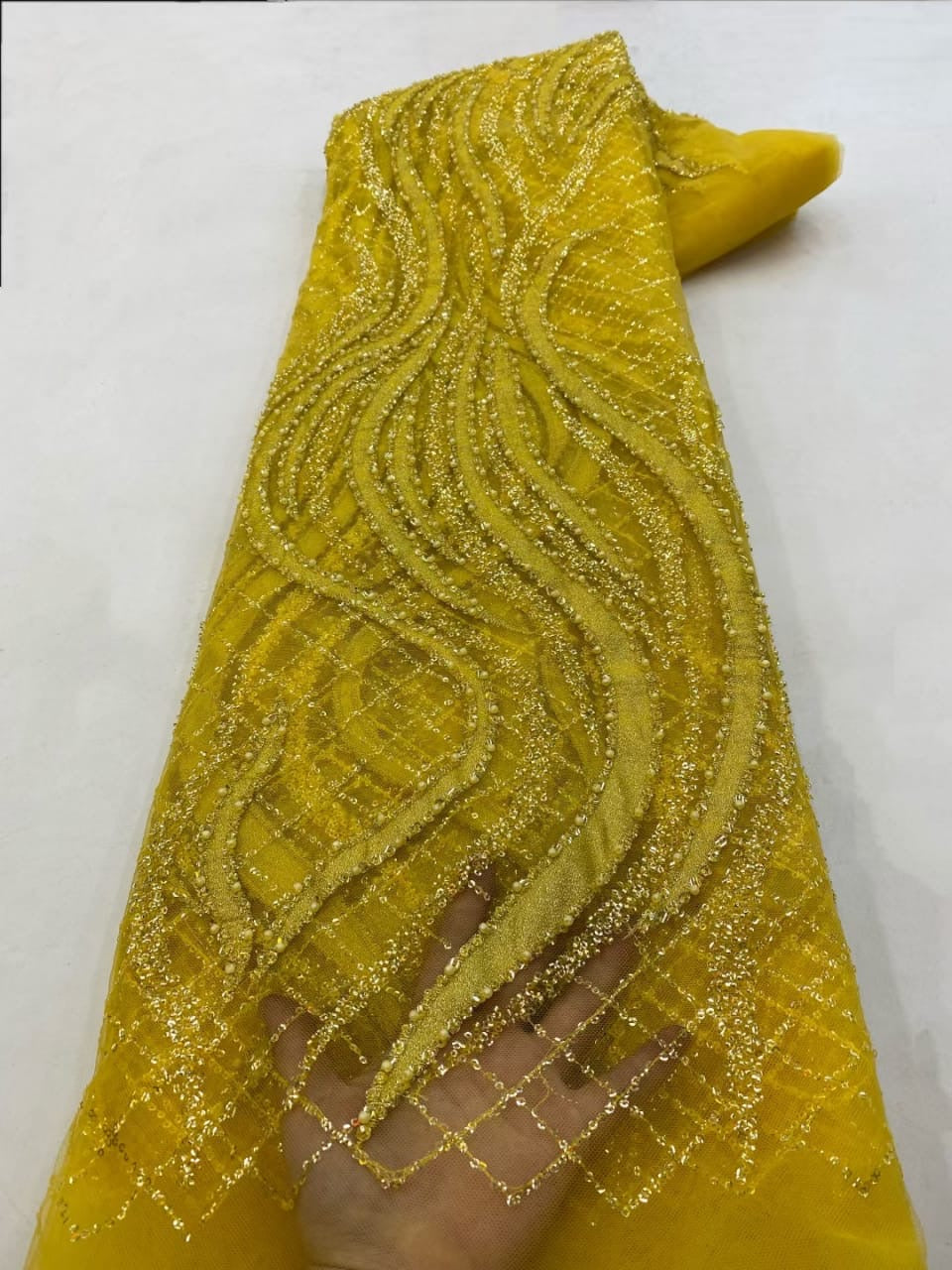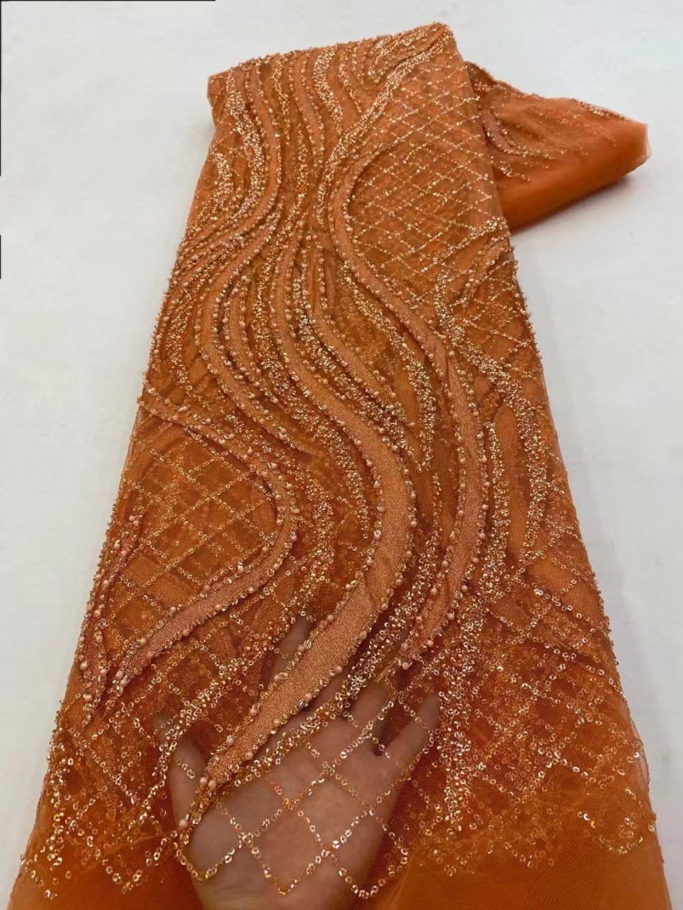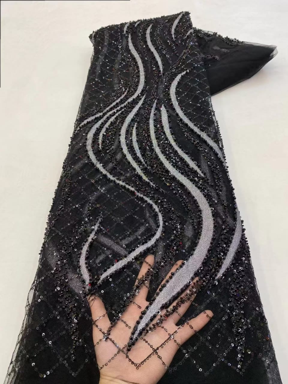 Esta tela de alta calidad se mide en 5 yardas con cuentas bordadas y lentejuelas. Es suave, muy delicado y bonito.