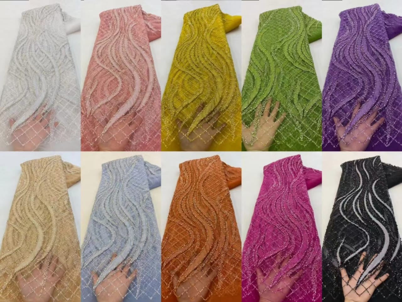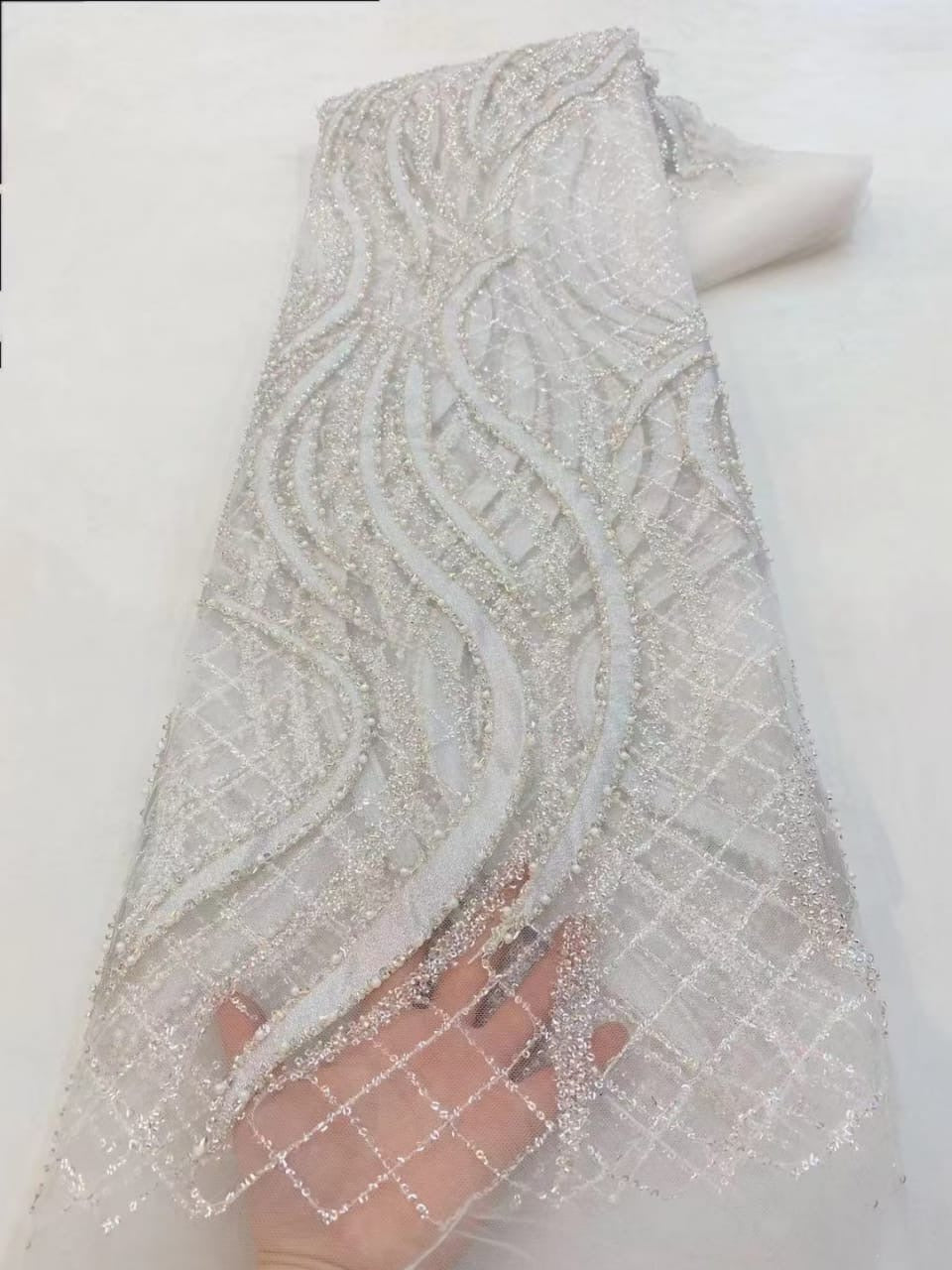 Esta tela de alta calidad está hecha con pedrería bordada a la moda y se puede usar para hacer vestidos de novia, faldas, chales, bufandas y otras prendas de moda que desee.