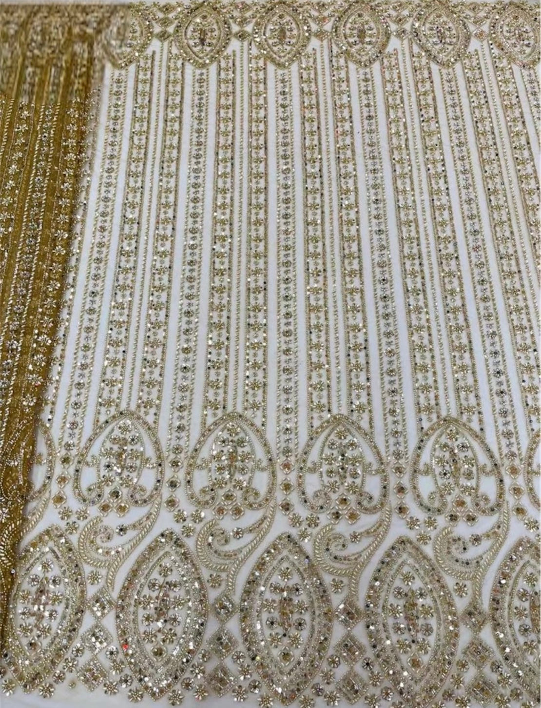 This high Quality Fabric is made with Fashion embroidered rhinestones can be used in making party wedding dresses, skirts, shawls, scarves and other other fashion apparels as you would like.