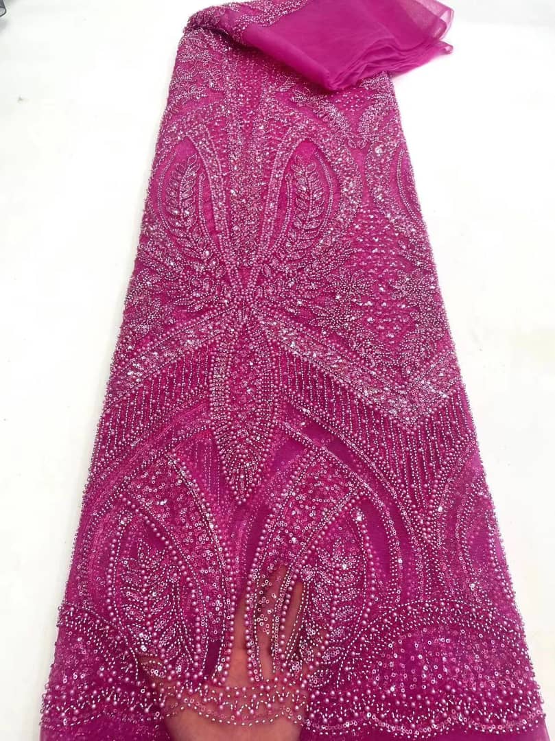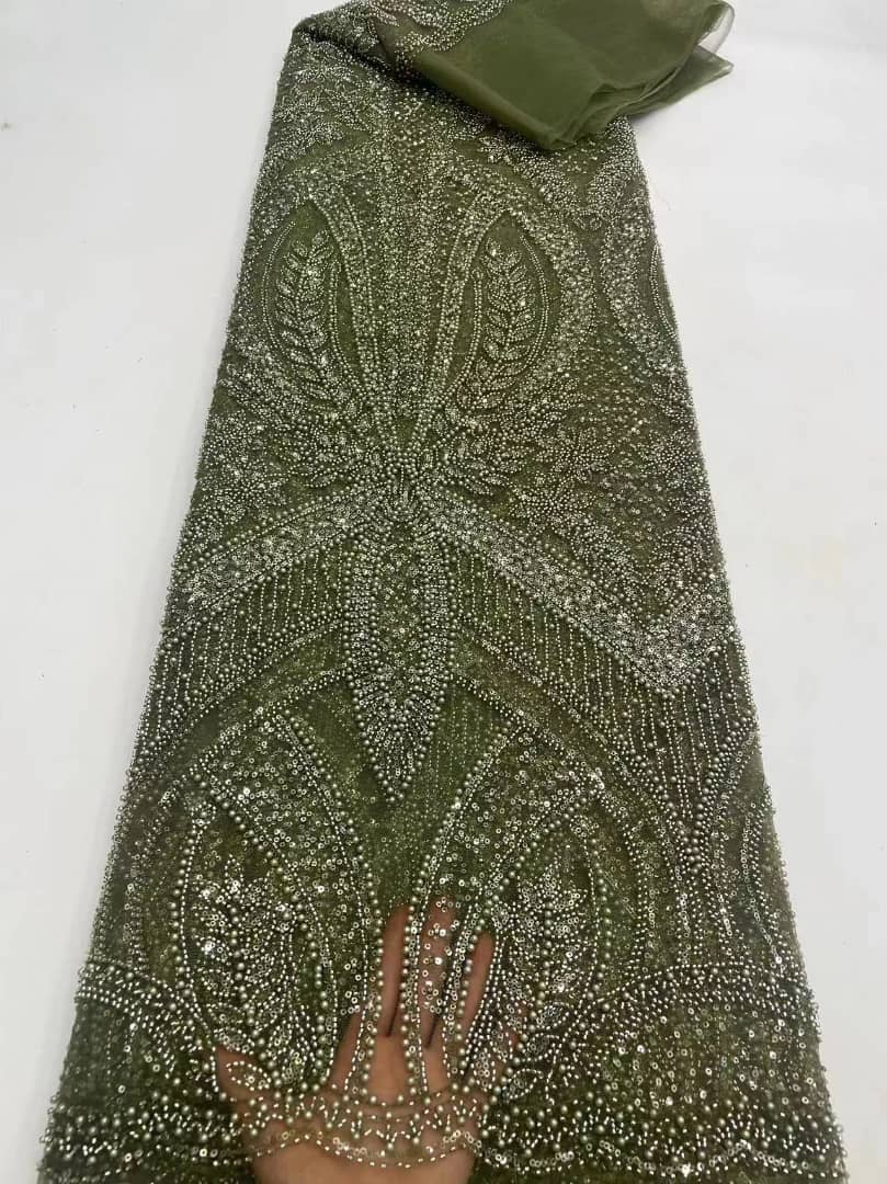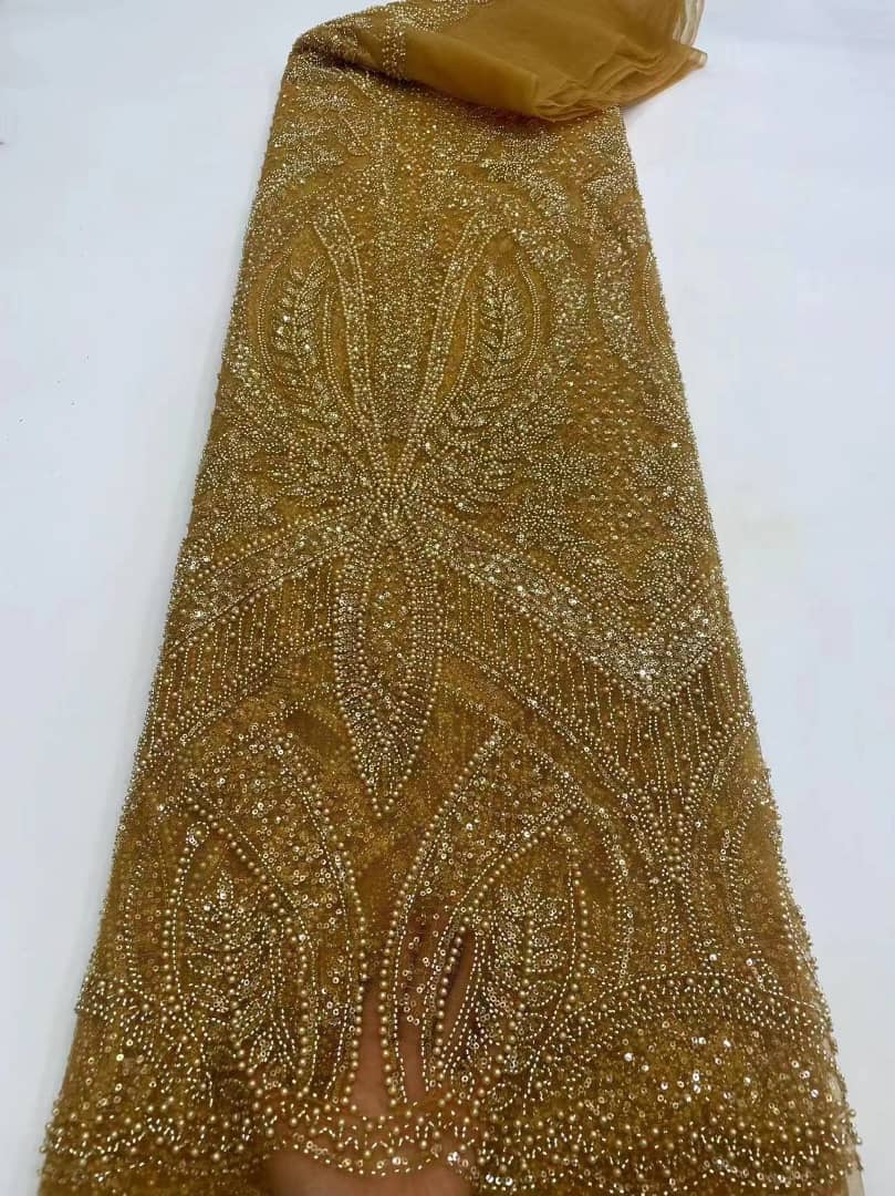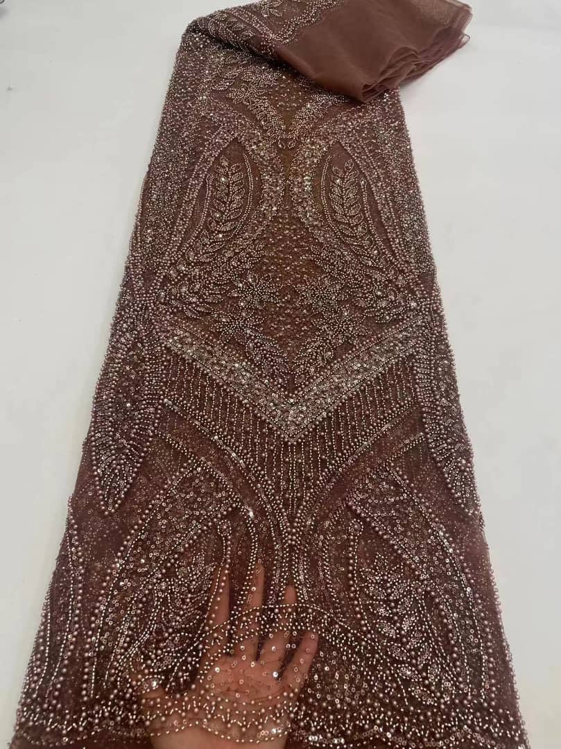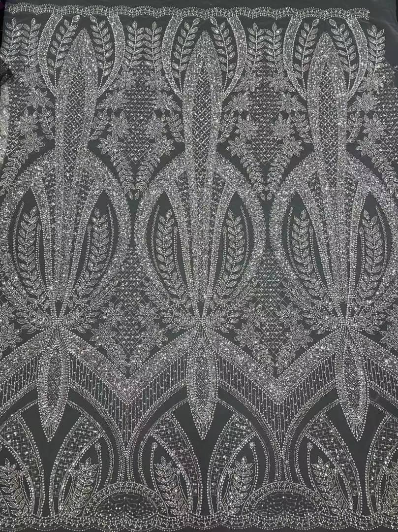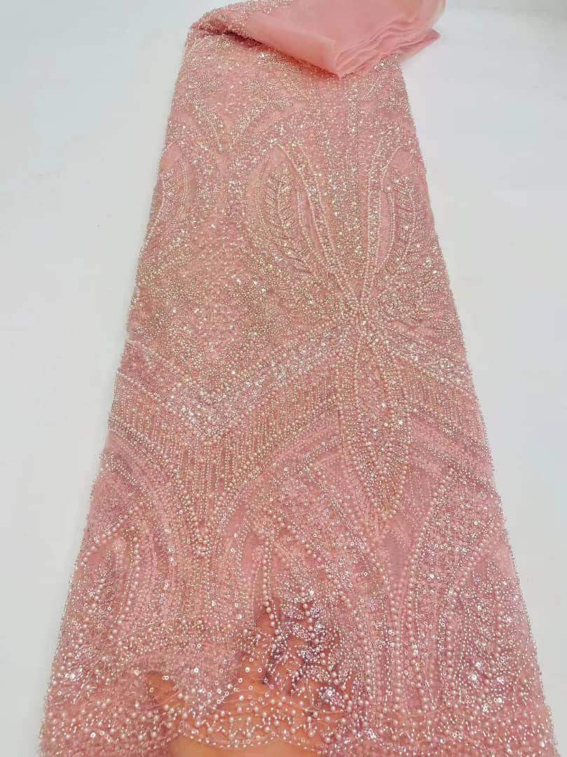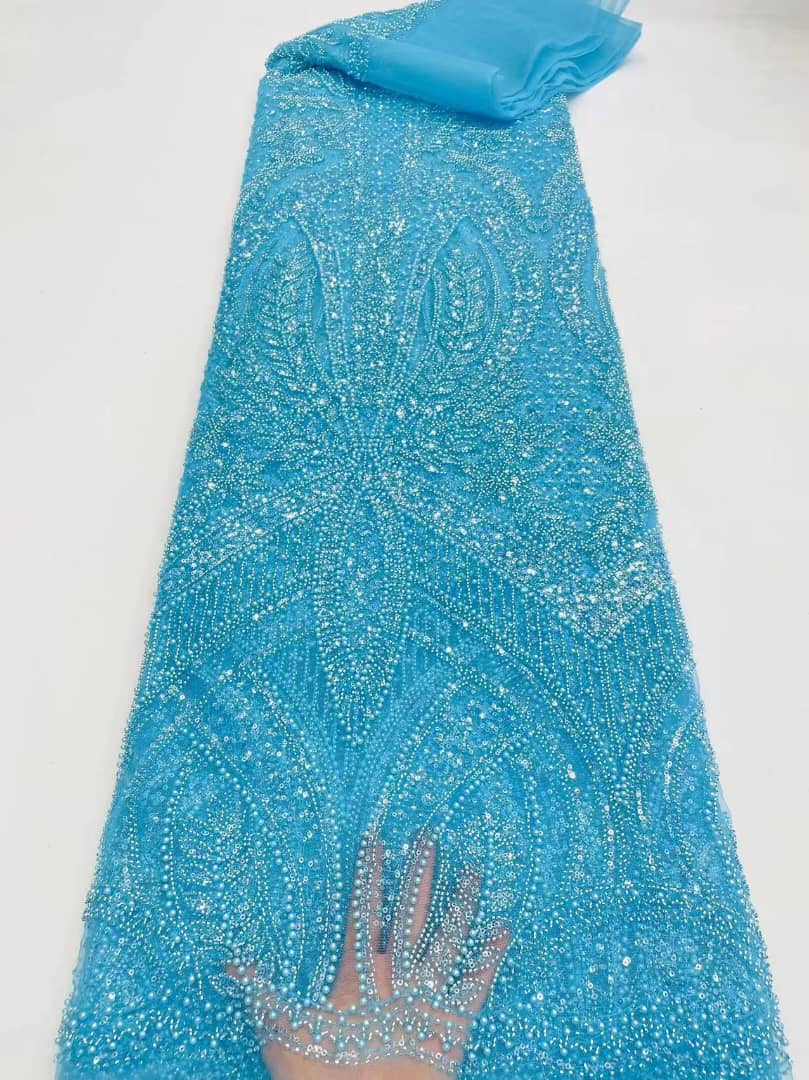Esta tela de alta calidad se mide en 5 yardas con cuentas bordadas y lentejuelas. Es suave, muy delicado y bonito.
