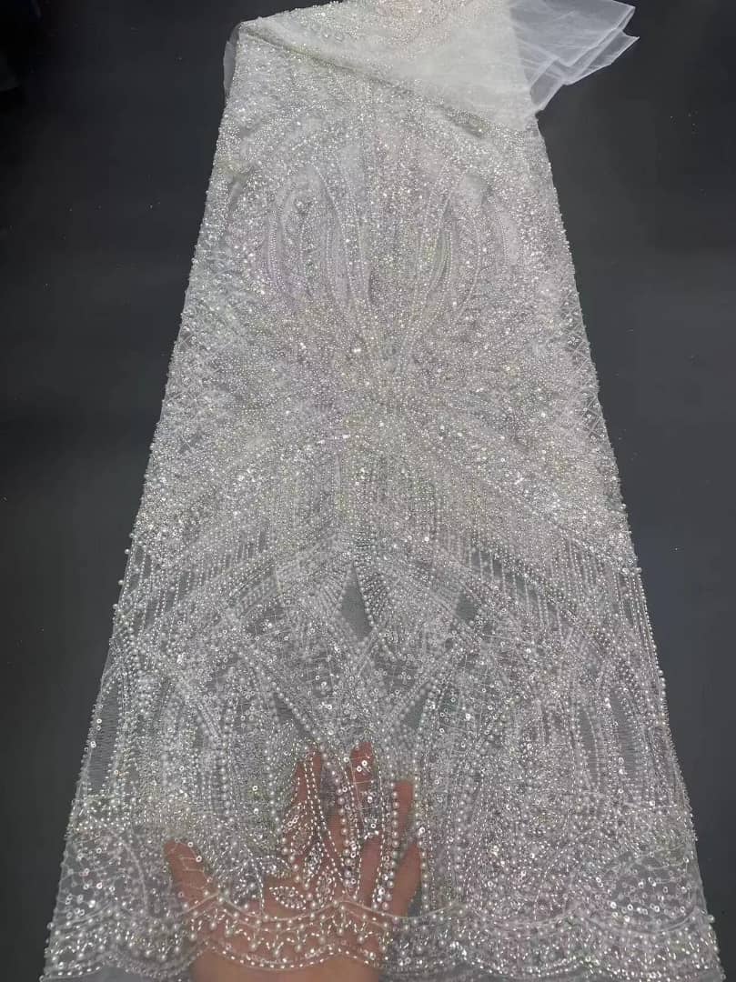 Esta tela de alta calidad está hecha con pedrería bordada a la moda y se puede usar para hacer vestidos de novia, faldas, chales, bufandas y otras prendas de moda que desee.