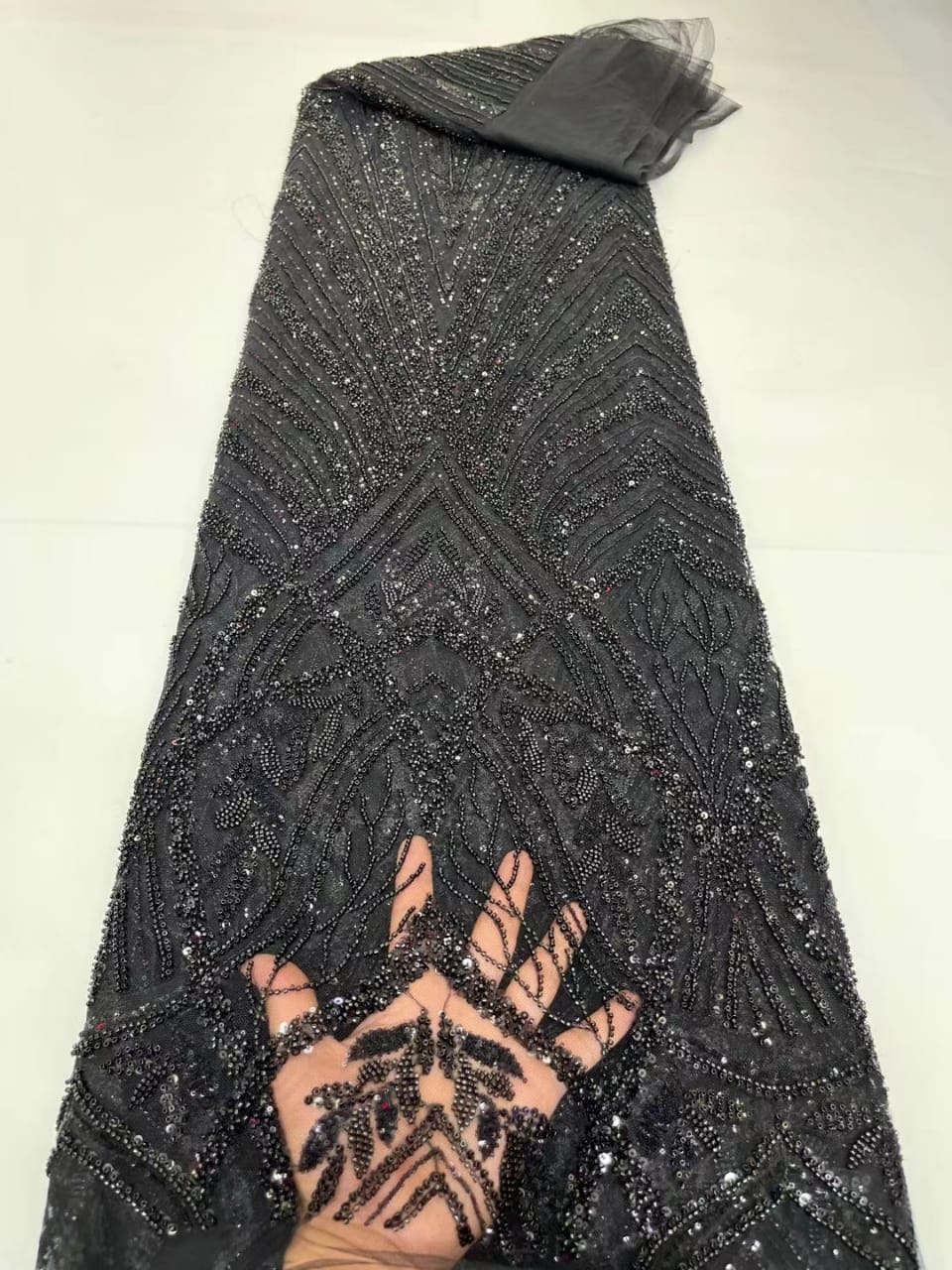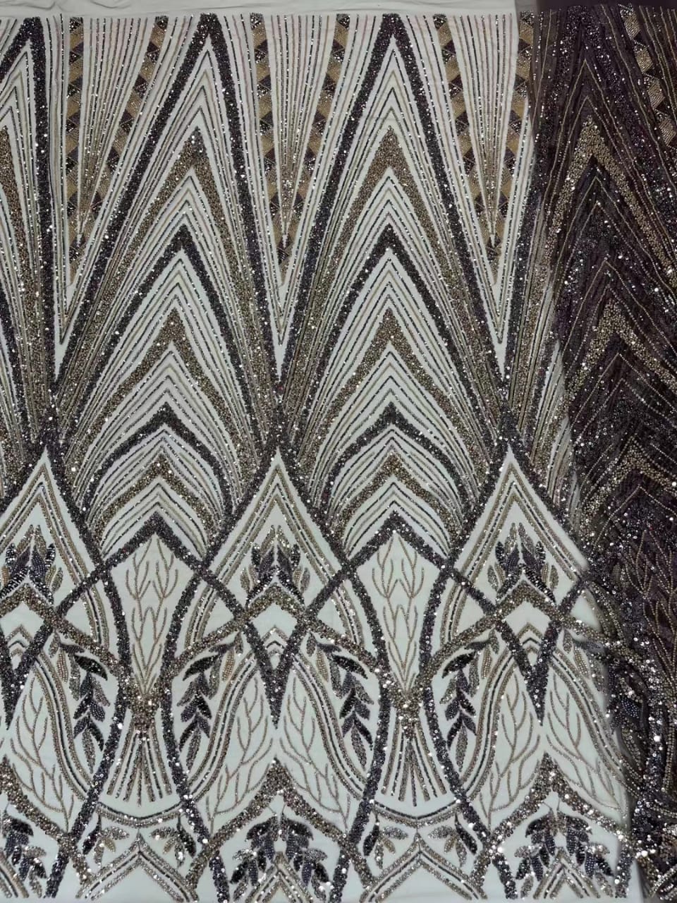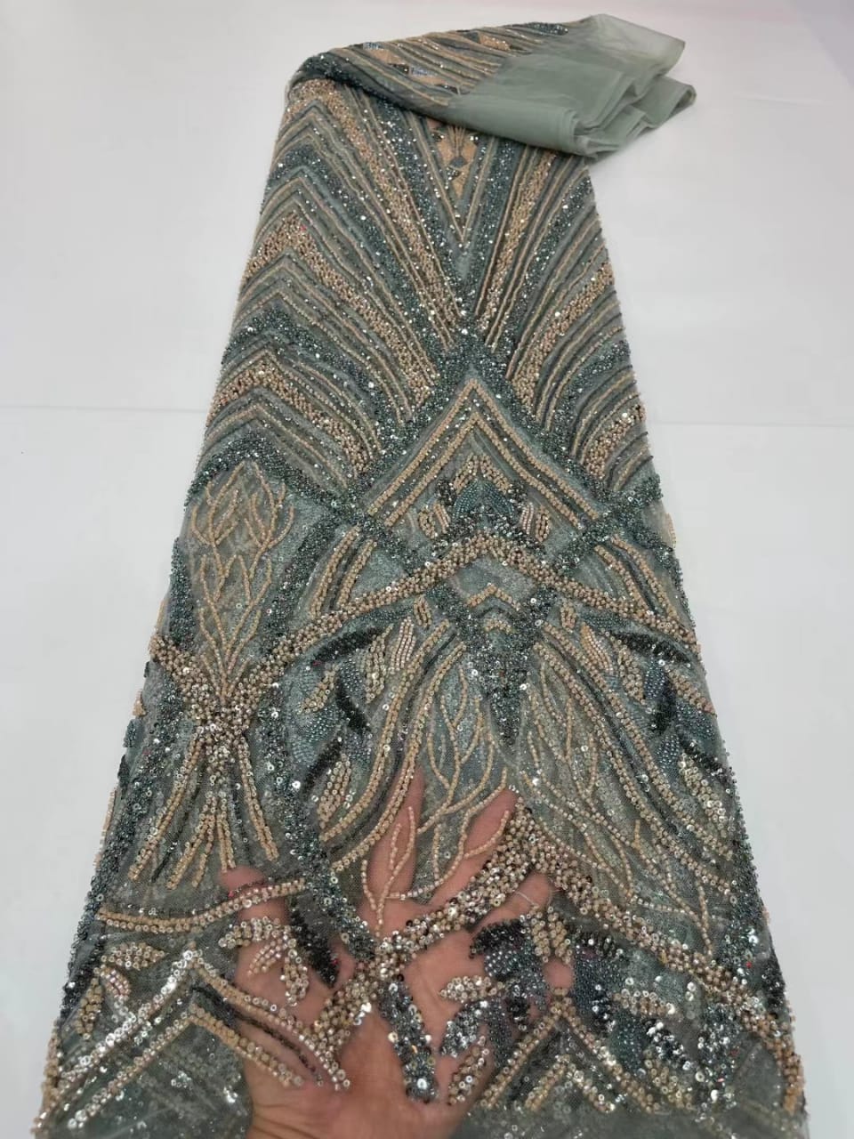 Esta tela de alta calidad se mide en 5 yardas con cuentas bordadas y lentejuelas. Es suave, muy delicado y bonito.