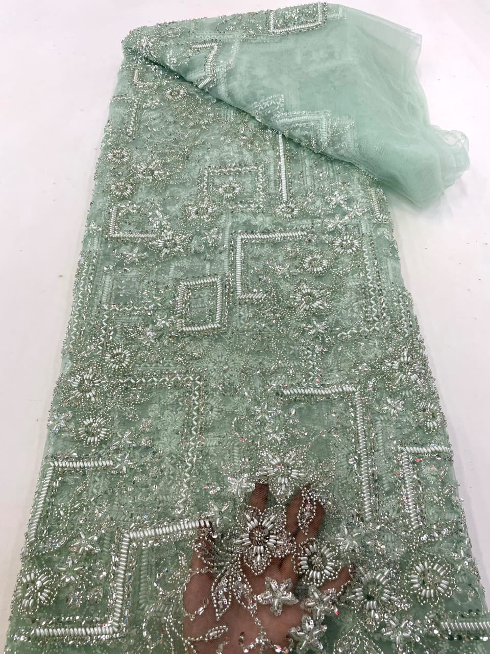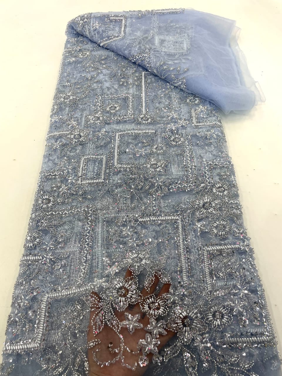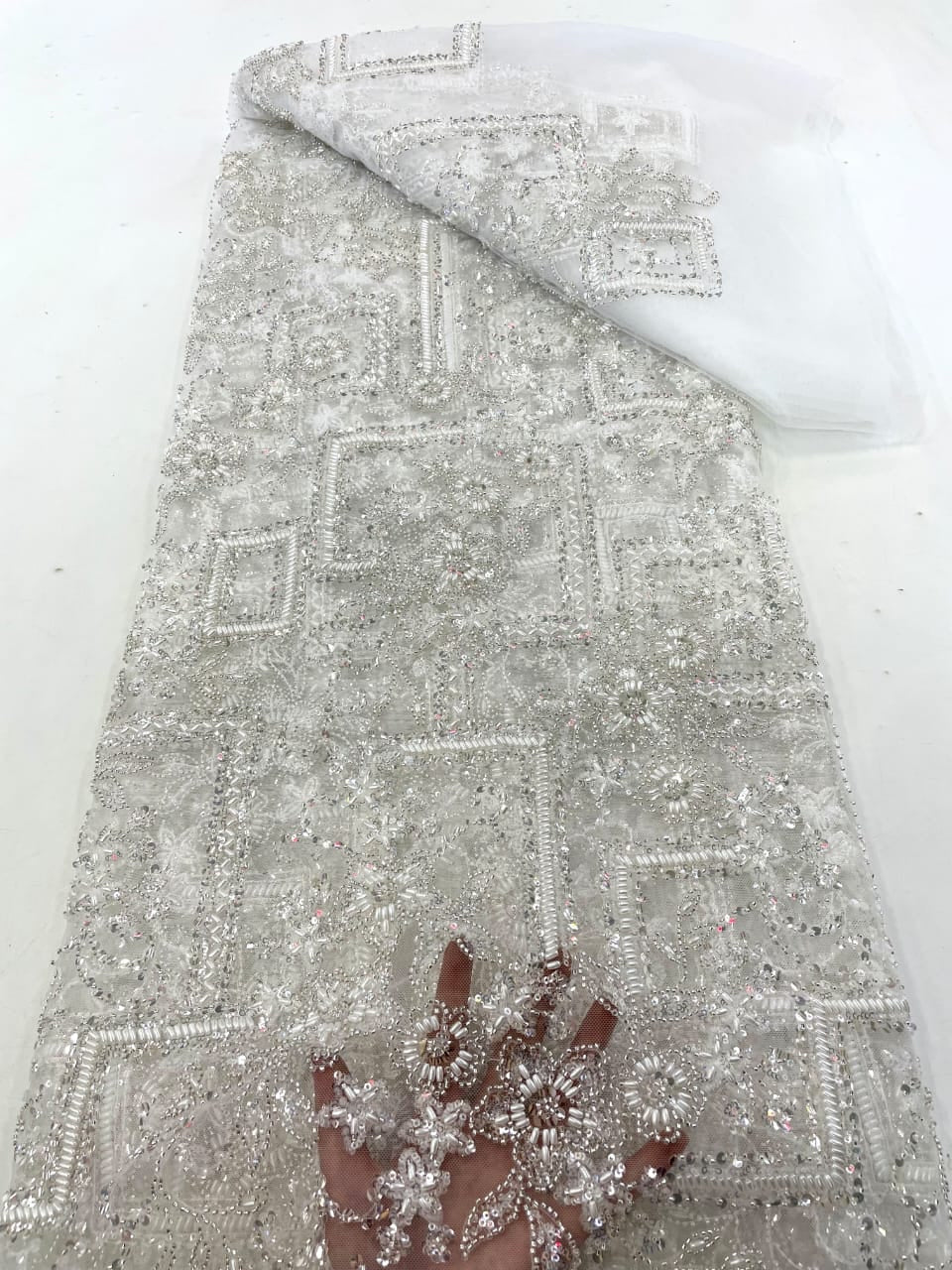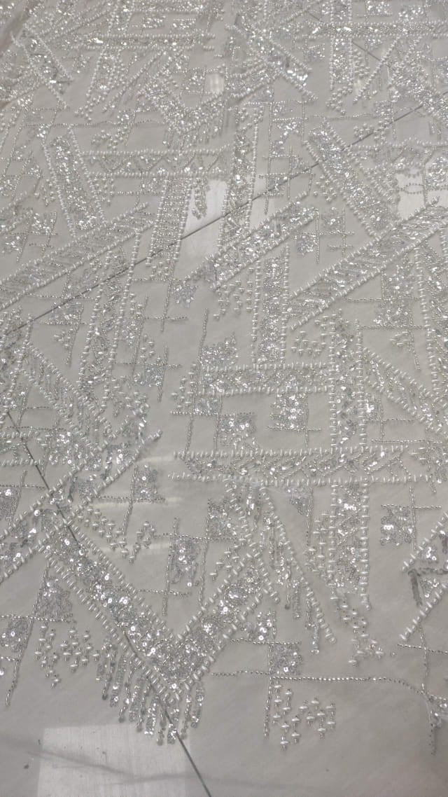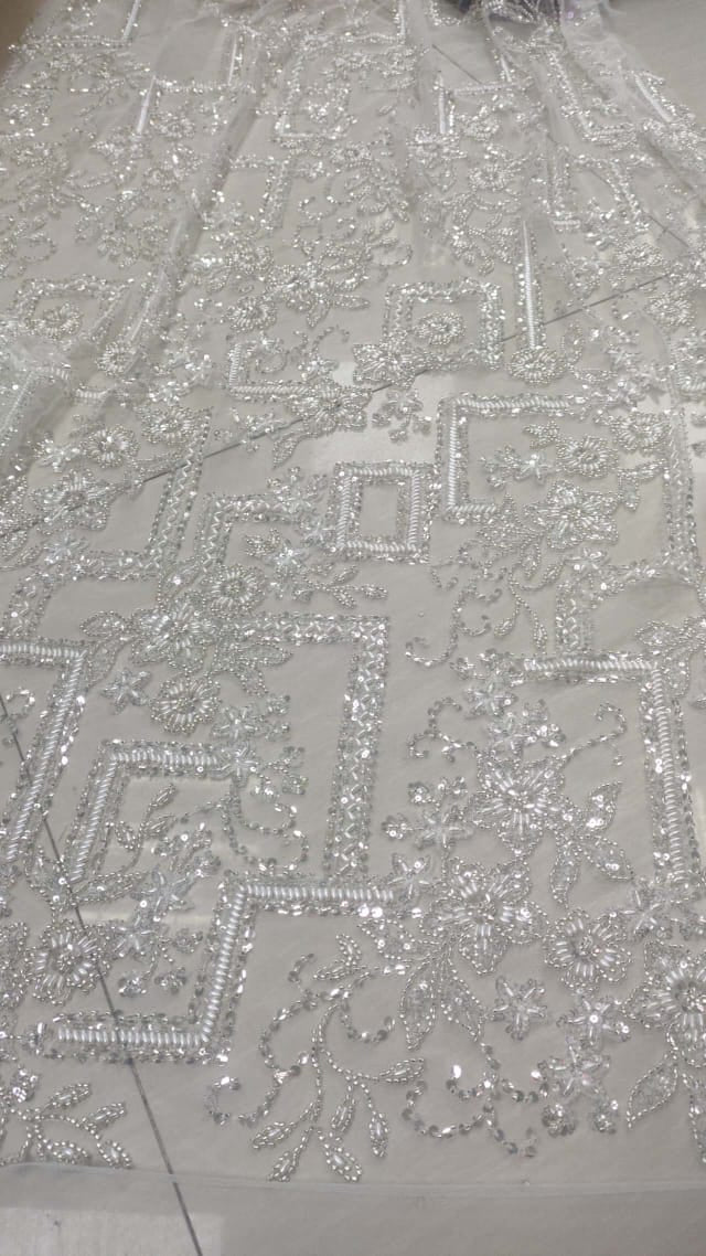 Esta tela de alta calidad se mide en 5 yardas con cuentas bordadas y lentejuelas. Es suave, muy delicado y bonito.