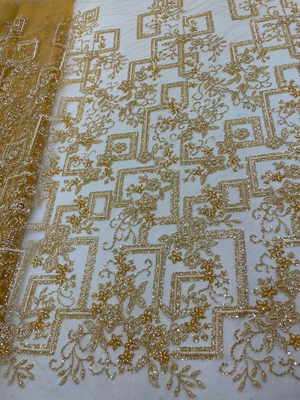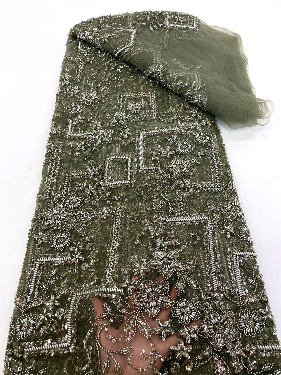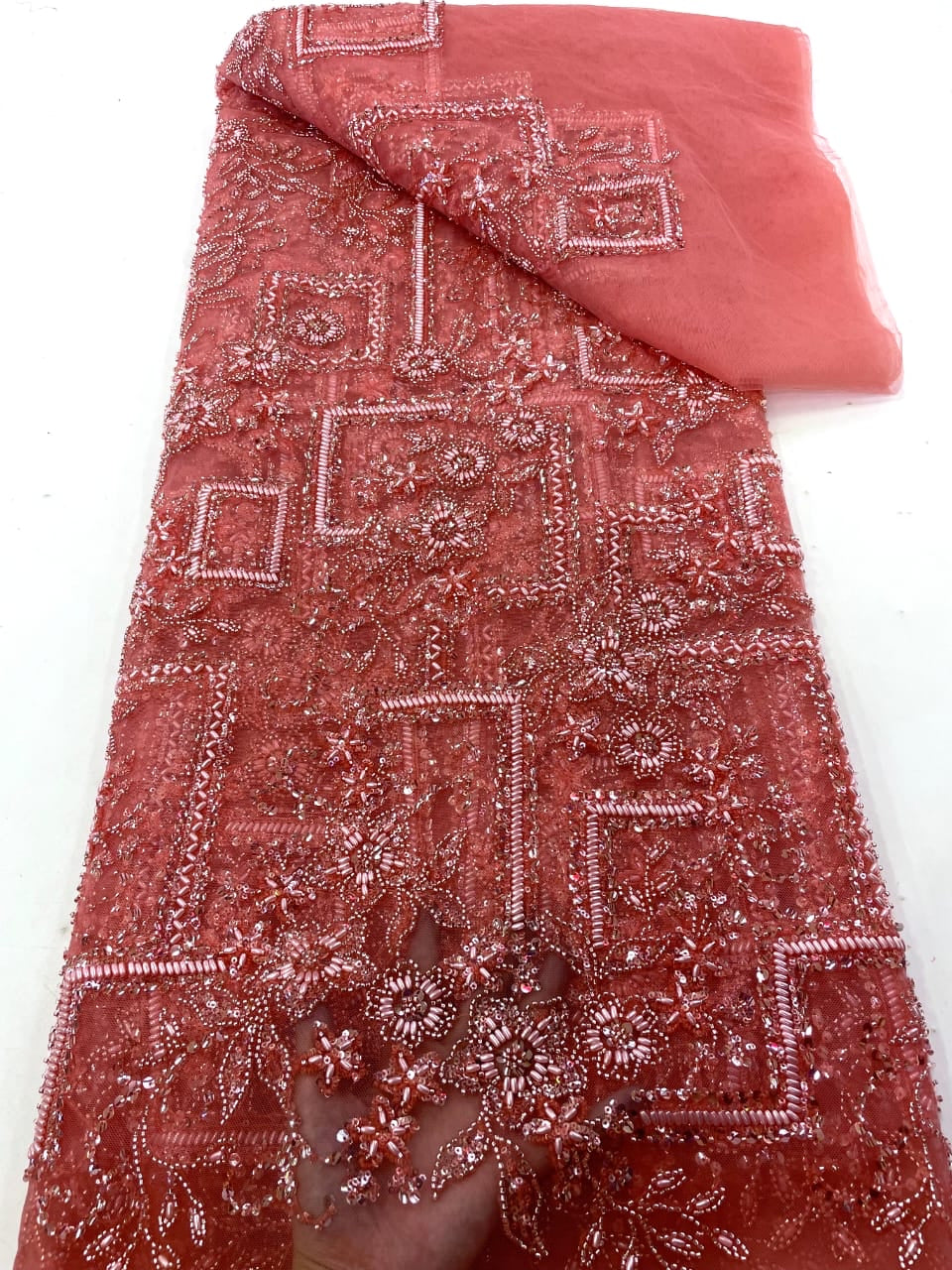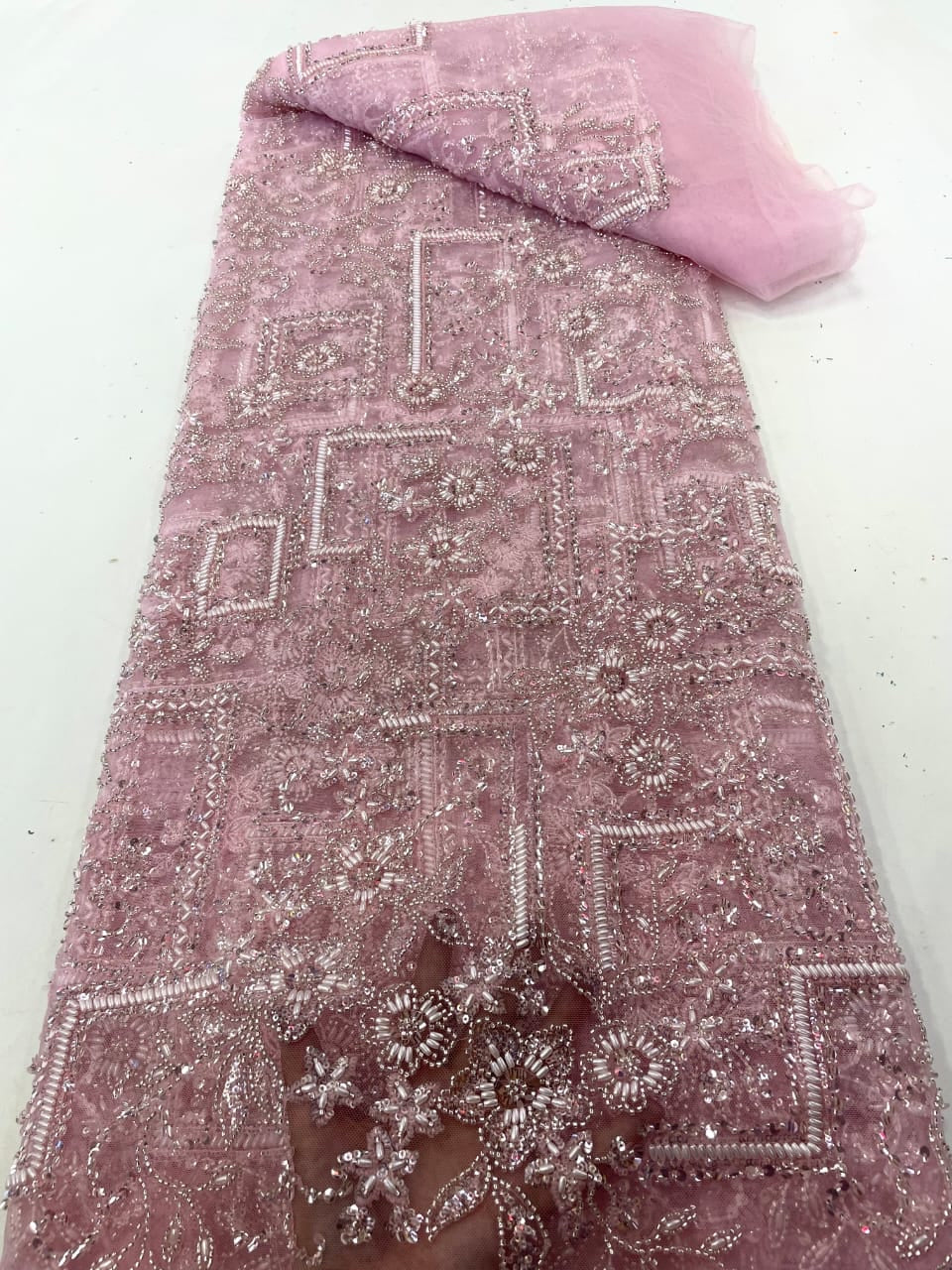 Esta tela de alta calidad se mide en 5 yardas con cuentas bordadas y lentejuelas. Es suave, muy delicado y bonito.