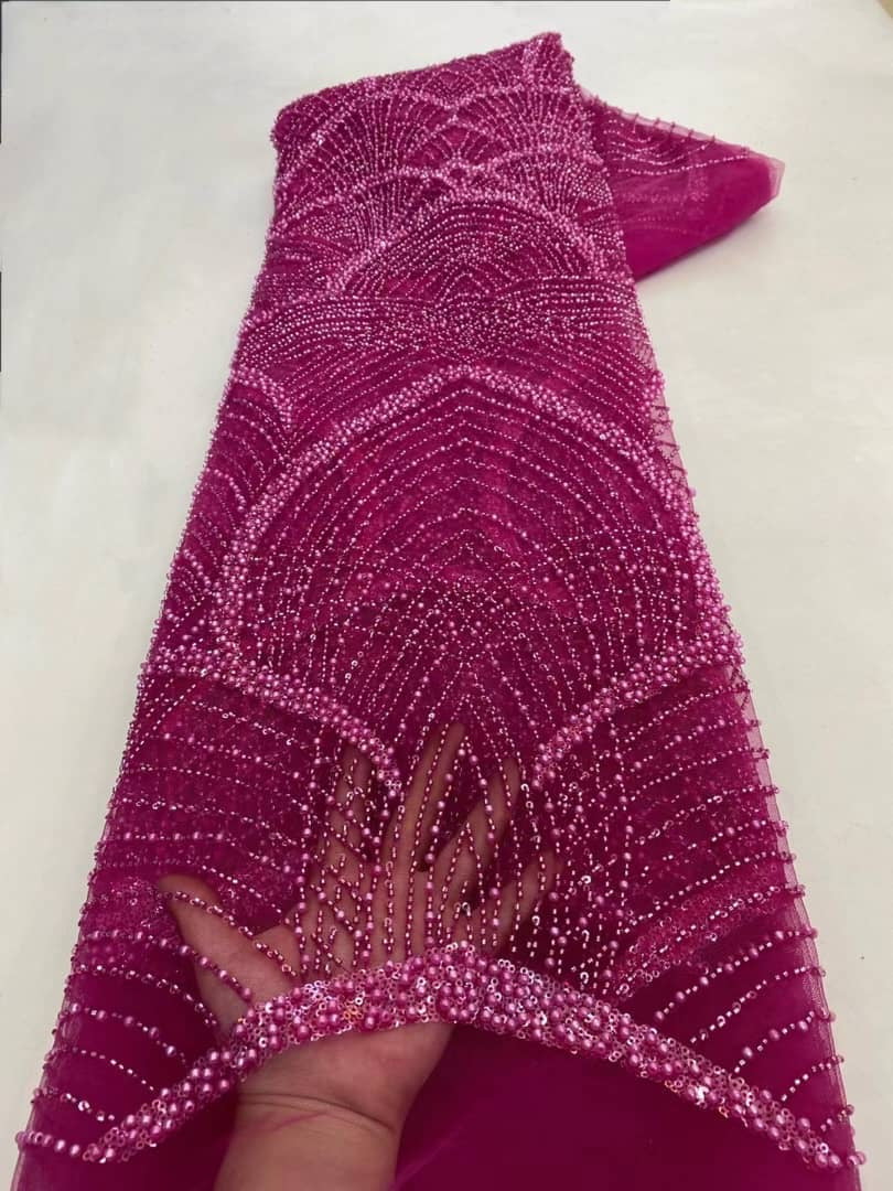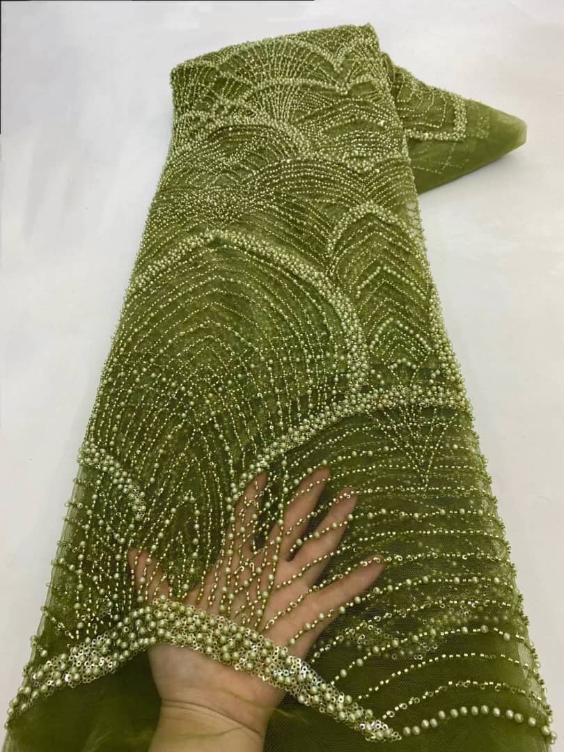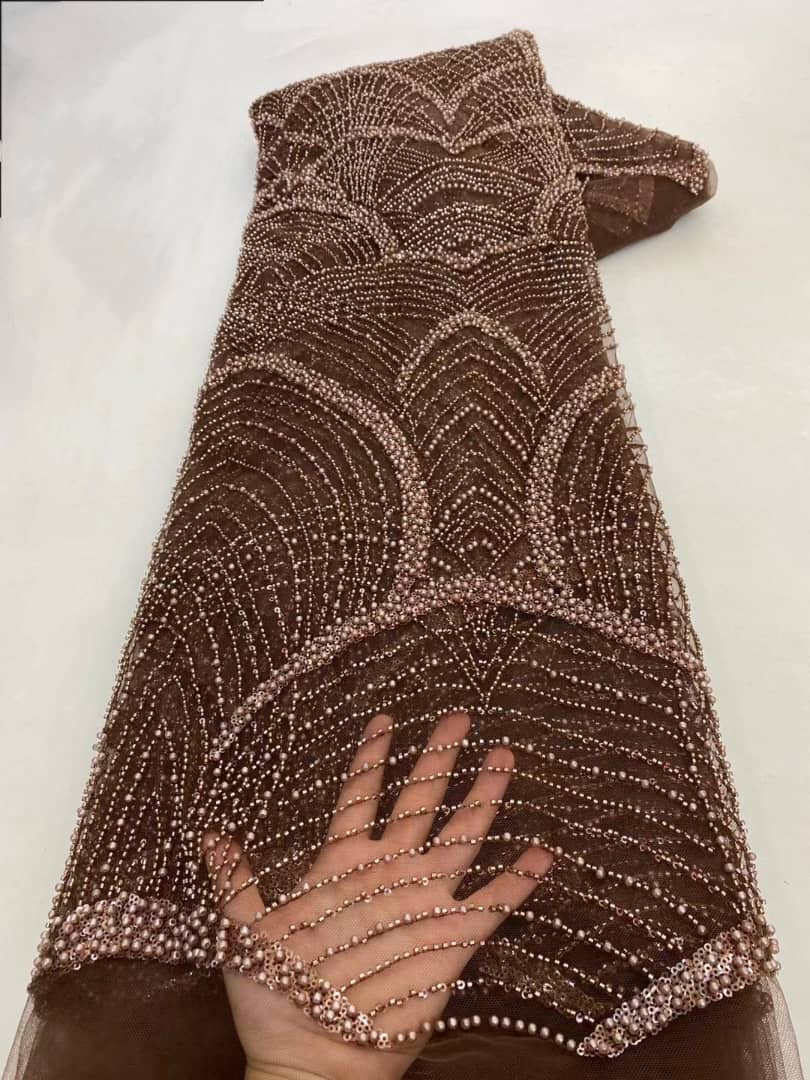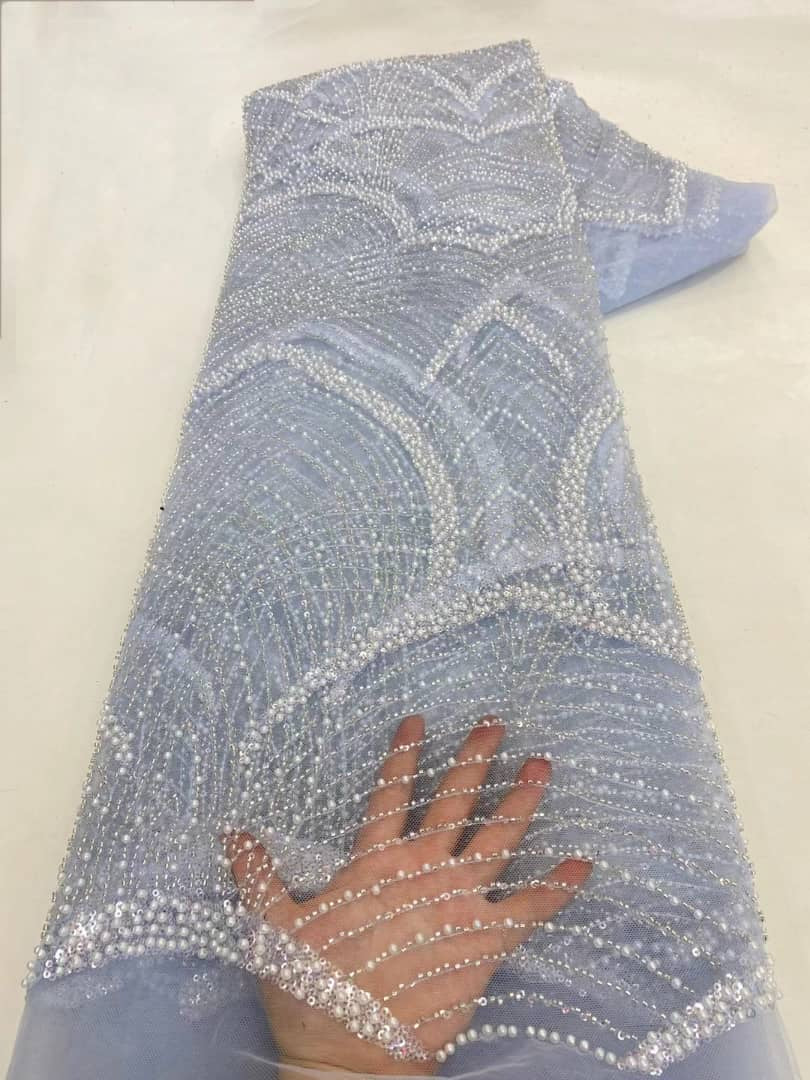 Esta tela de alta calidad se mide en 5 yardas con cuentas bordadas y lentejuelas. Es suave, muy delicado y bonito.