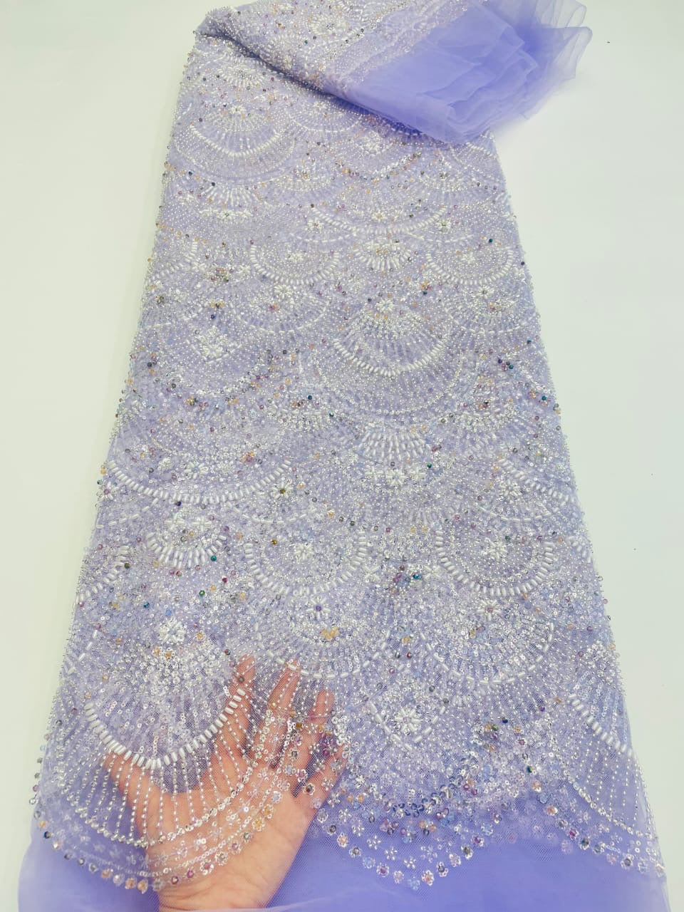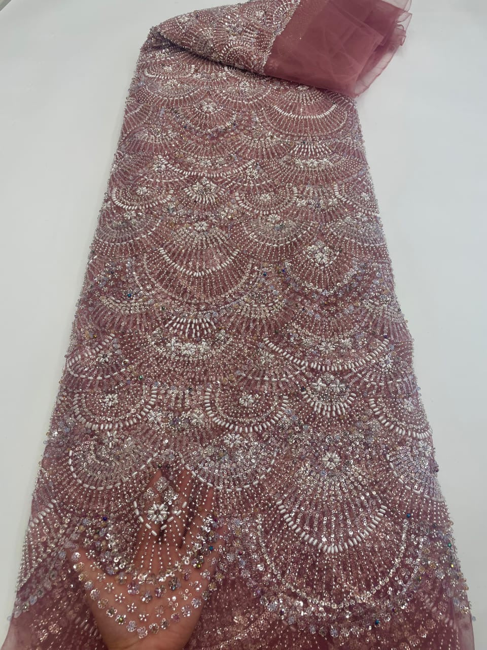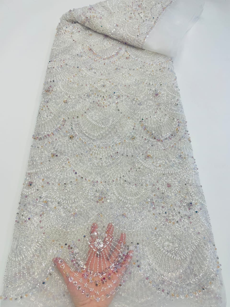 Esta tela de alta calidad se mide en 5 yardas con cuentas bordadas y lentejuelas. Es suave, muy delicado y bonito.