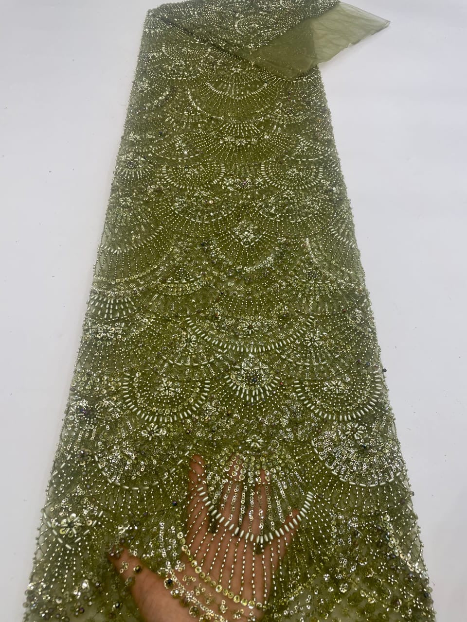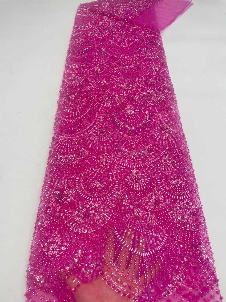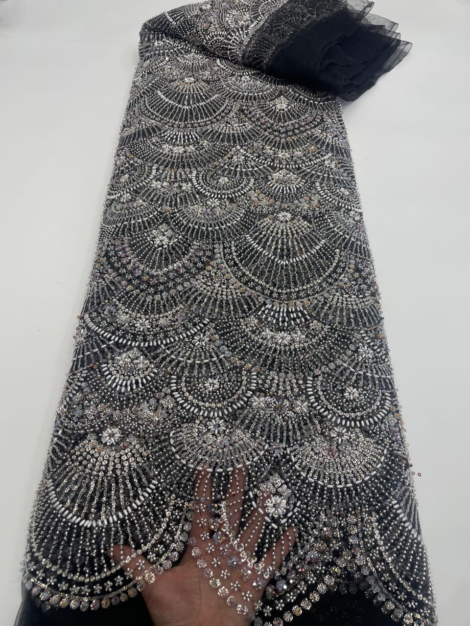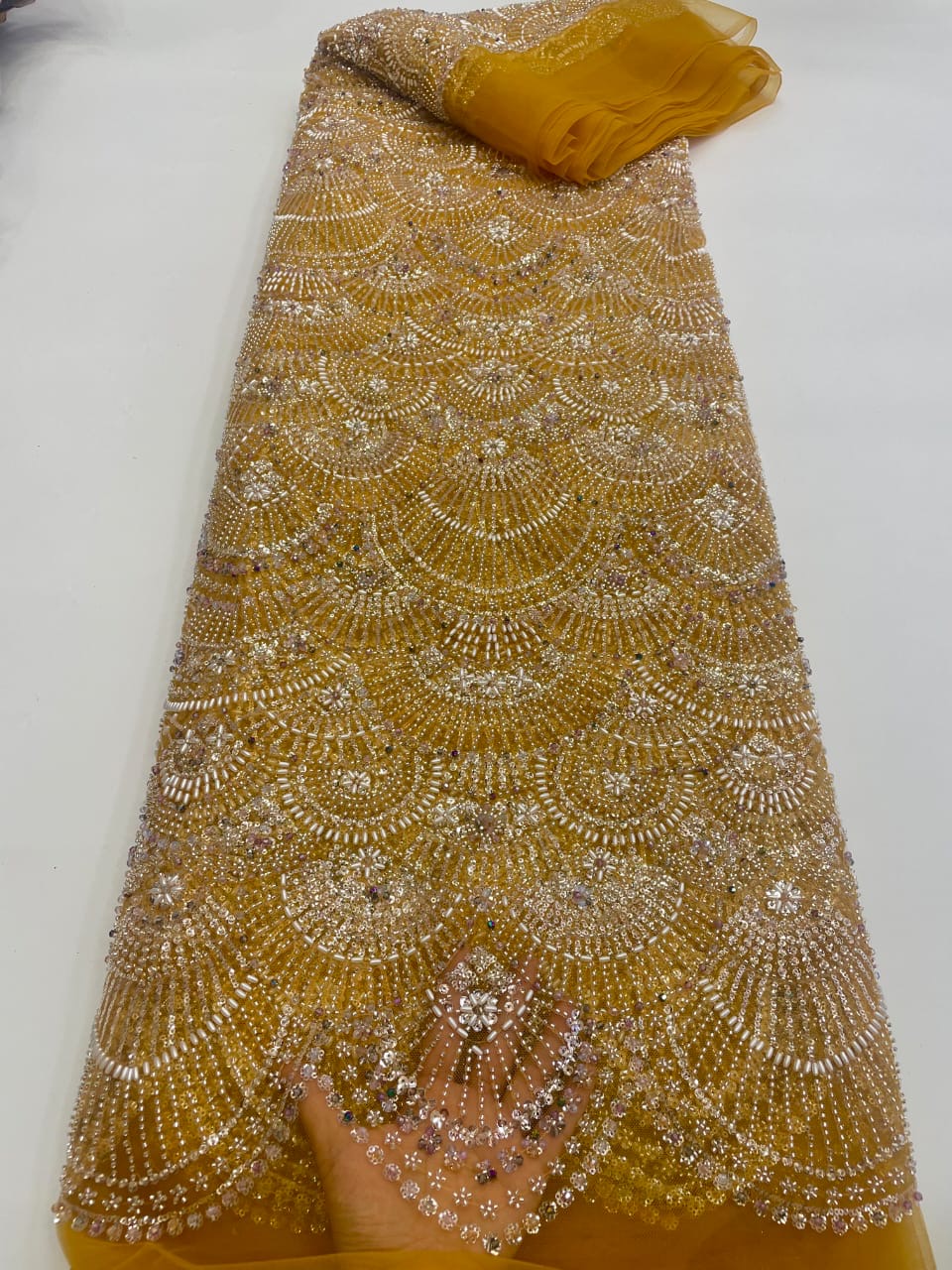 Esta tela de alta calidad se mide en 5 yardas con cuentas bordadas y lentejuelas. Es suave, muy delicado y bonito.