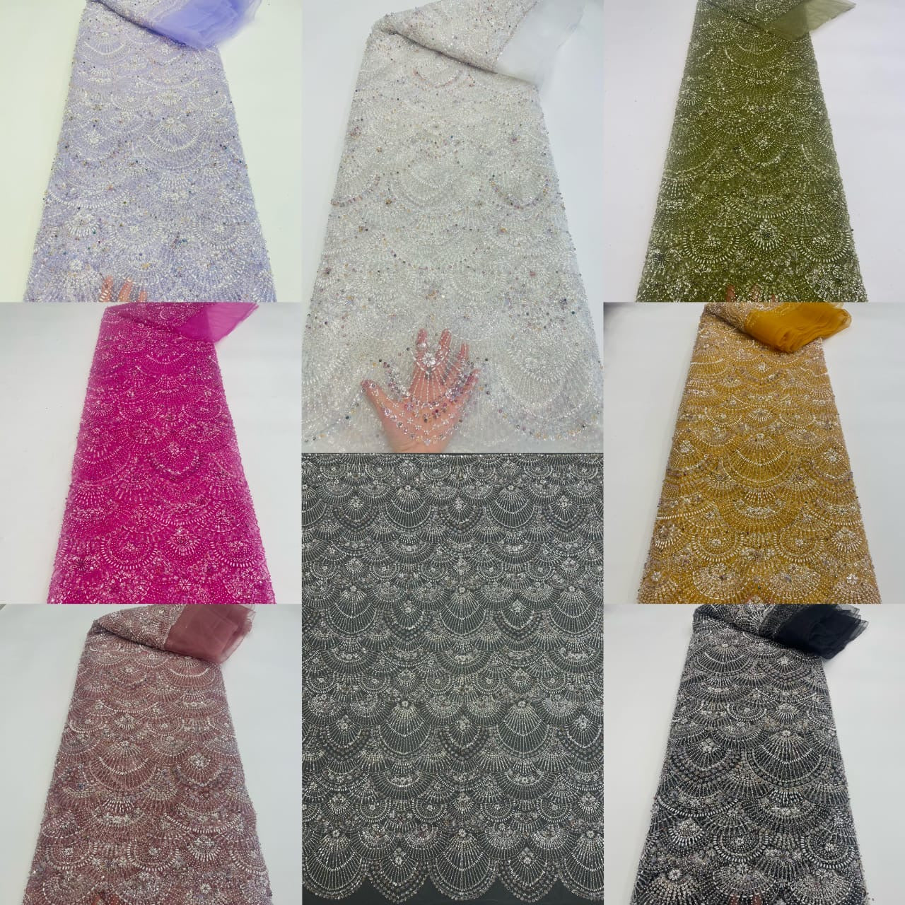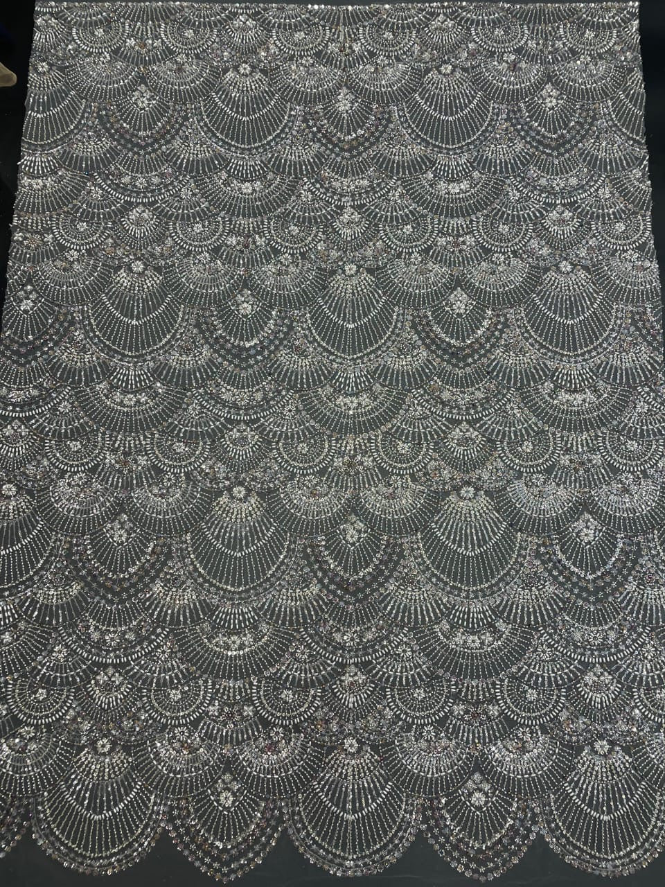 Esta tela de alta calidad está hecha con pedrería bordada a la moda y se puede usar para hacer vestidos de novia, faldas, chales, bufandas y otras prendas de moda que desee.