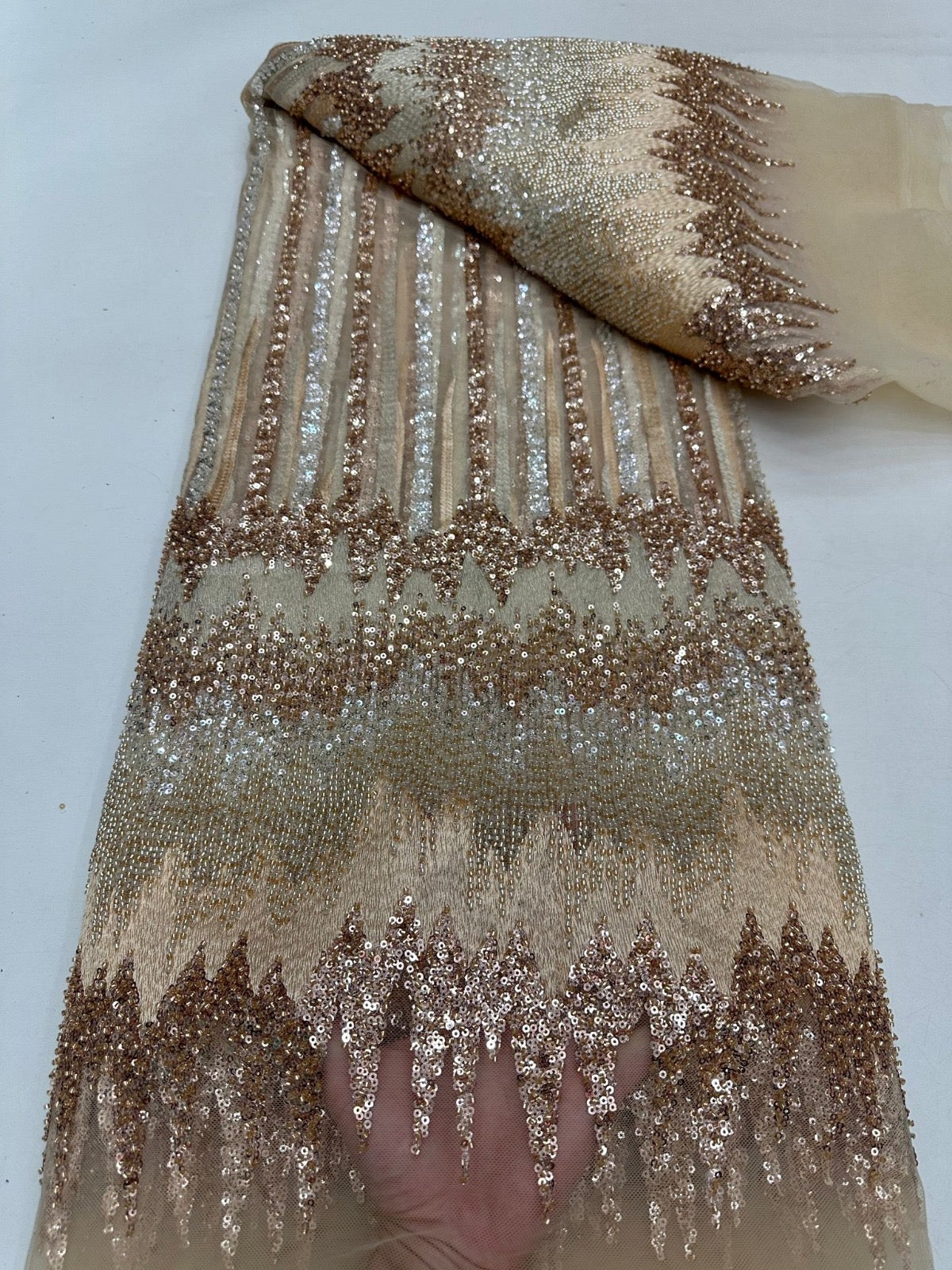 This high Quality Fabric is made with Fashion embroidered rhinestones can be used in making party wedding dresses, skirts, shawls, scarves and other other fashion apparels as you would like.