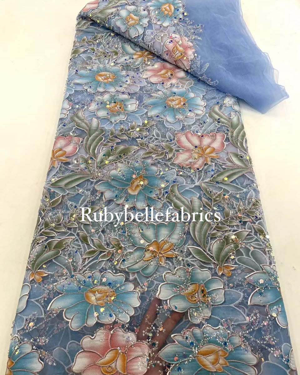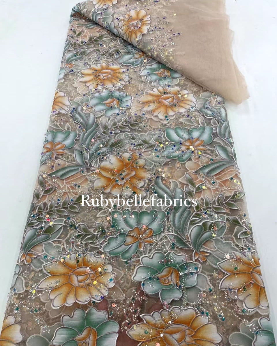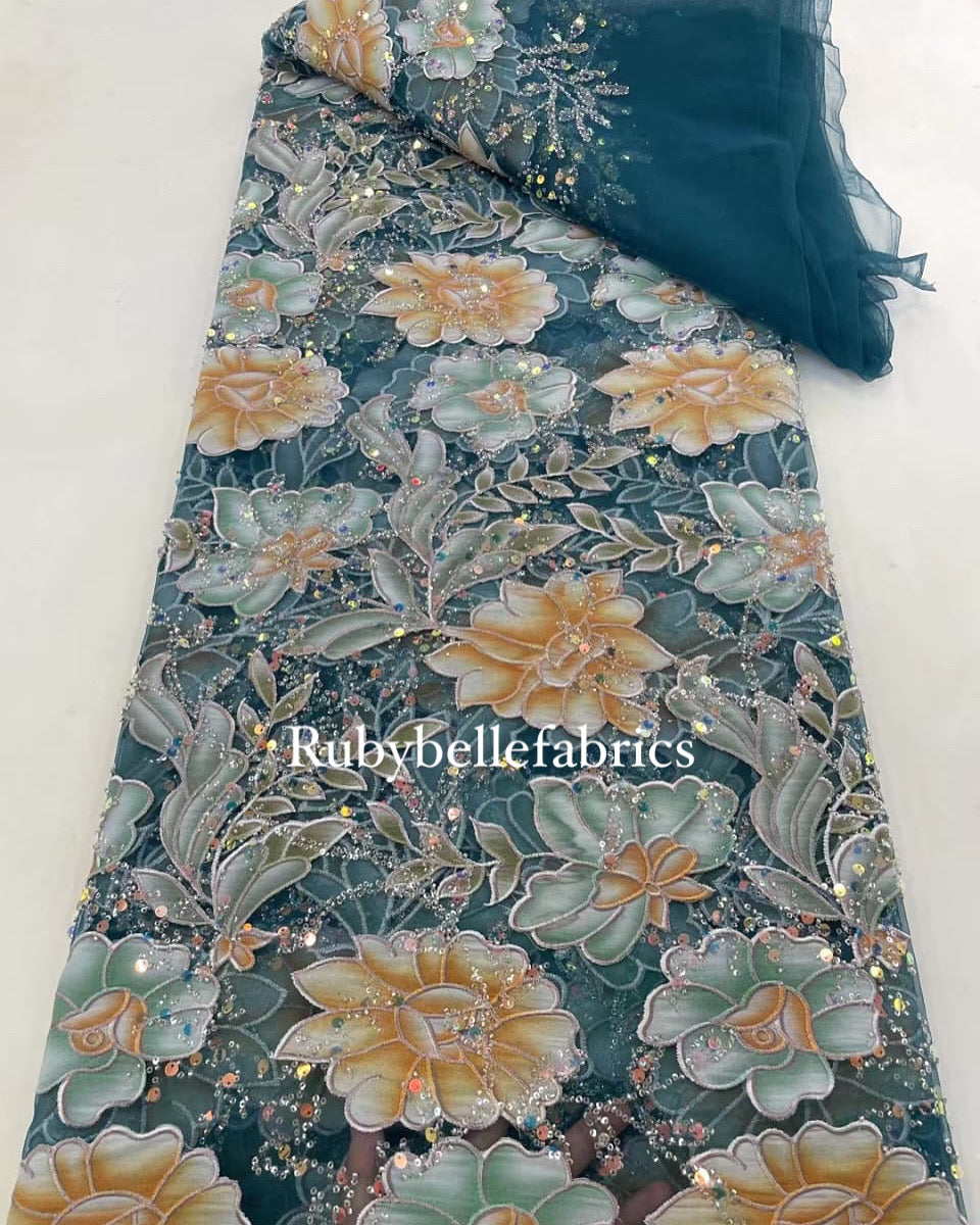 This high quality Fabric is measured in 5 Yards With Embroidered Beading and Sequin. It is soft, very delicate and beautiful.